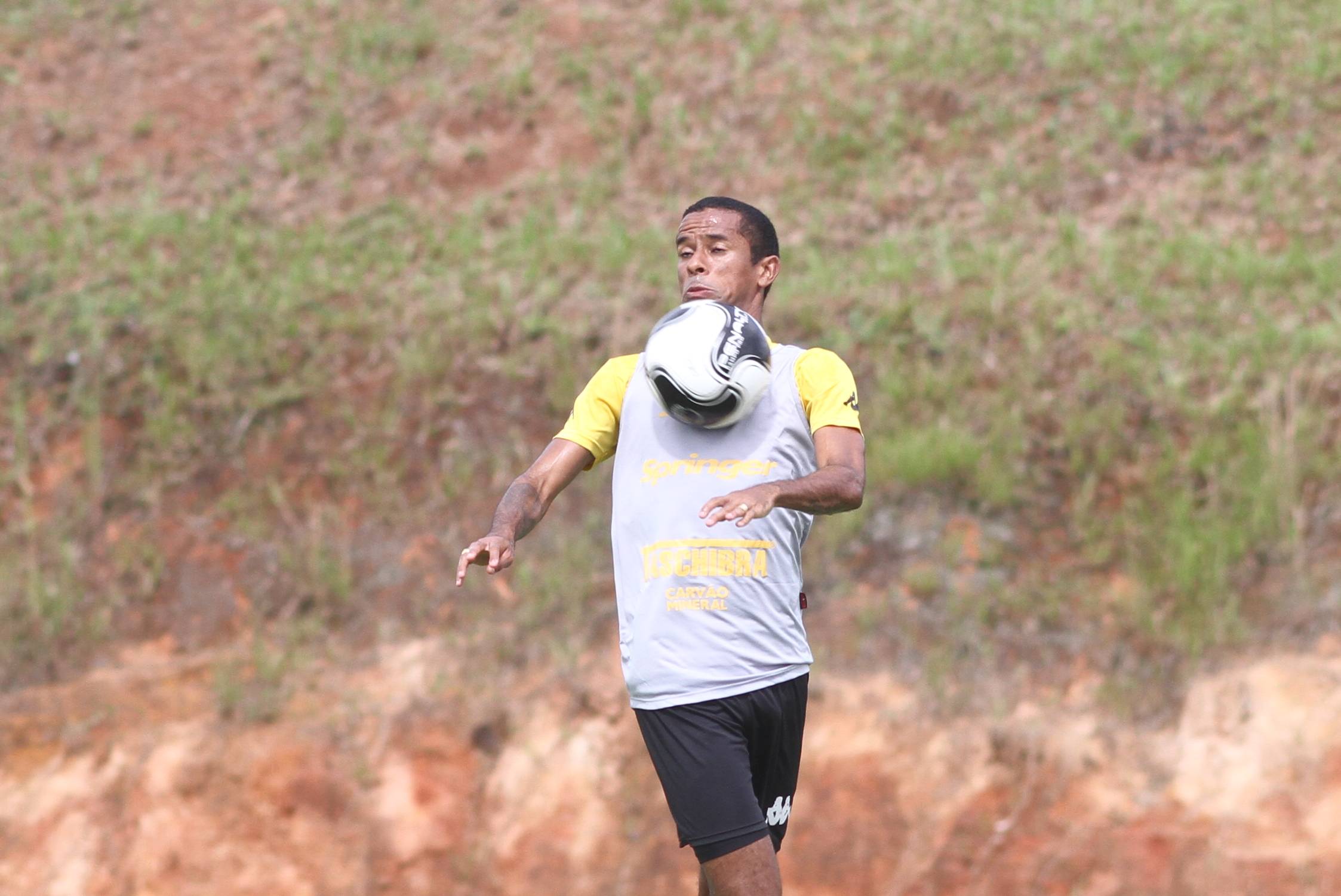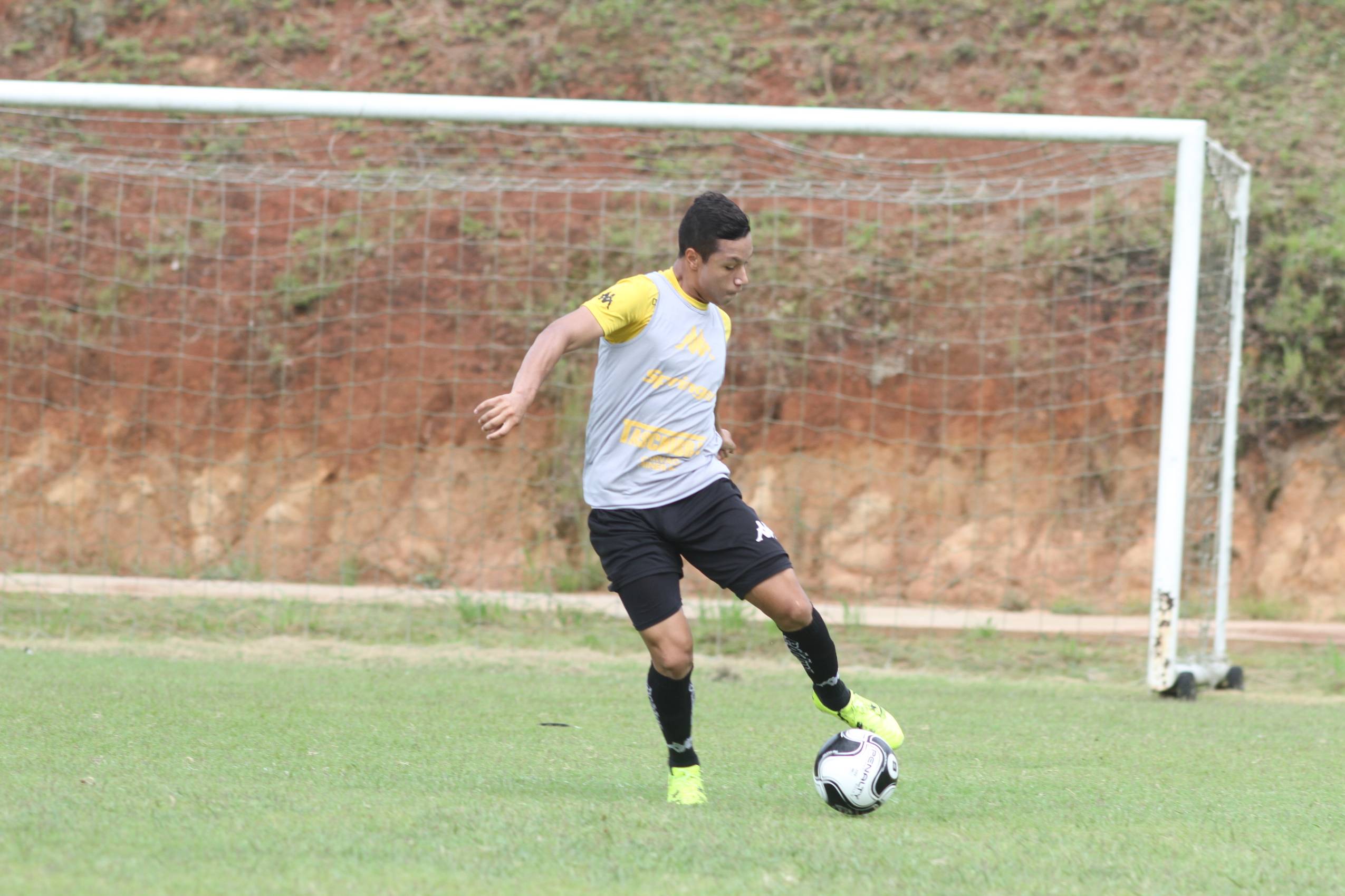 Legenda: Élvis durante treino do Criciúma na manhã desta terça-feira (09/02), no Centro de Treinamento, no bairro Cristo Redentor