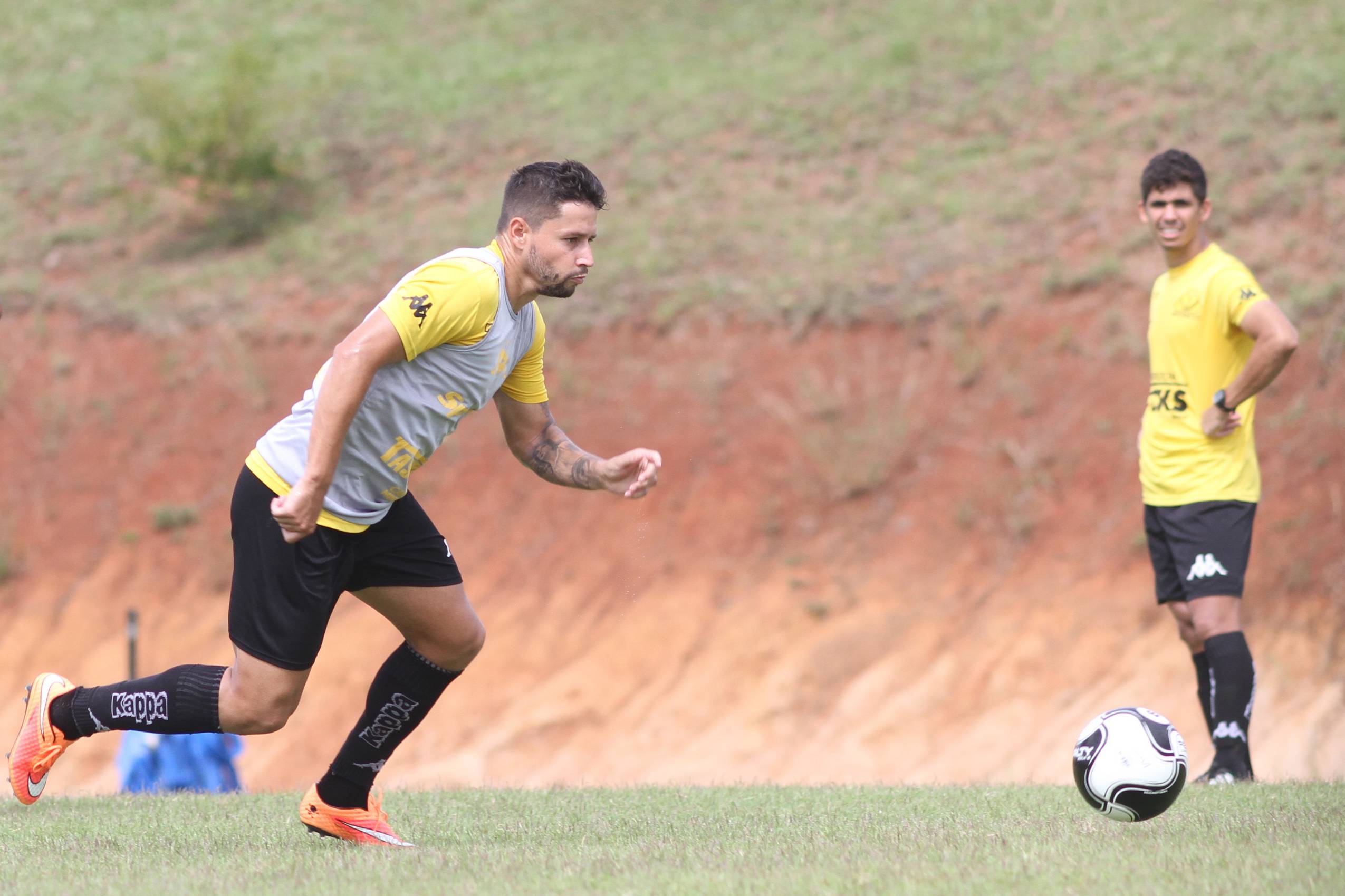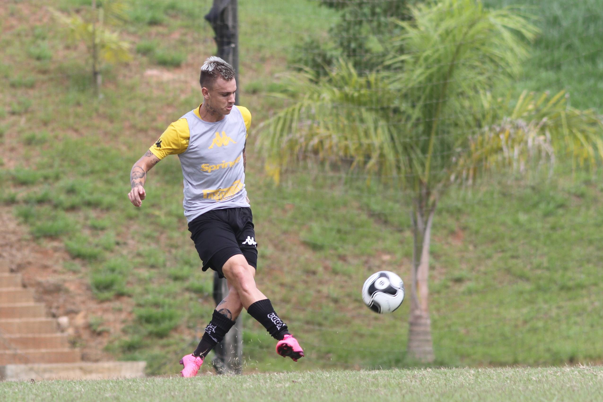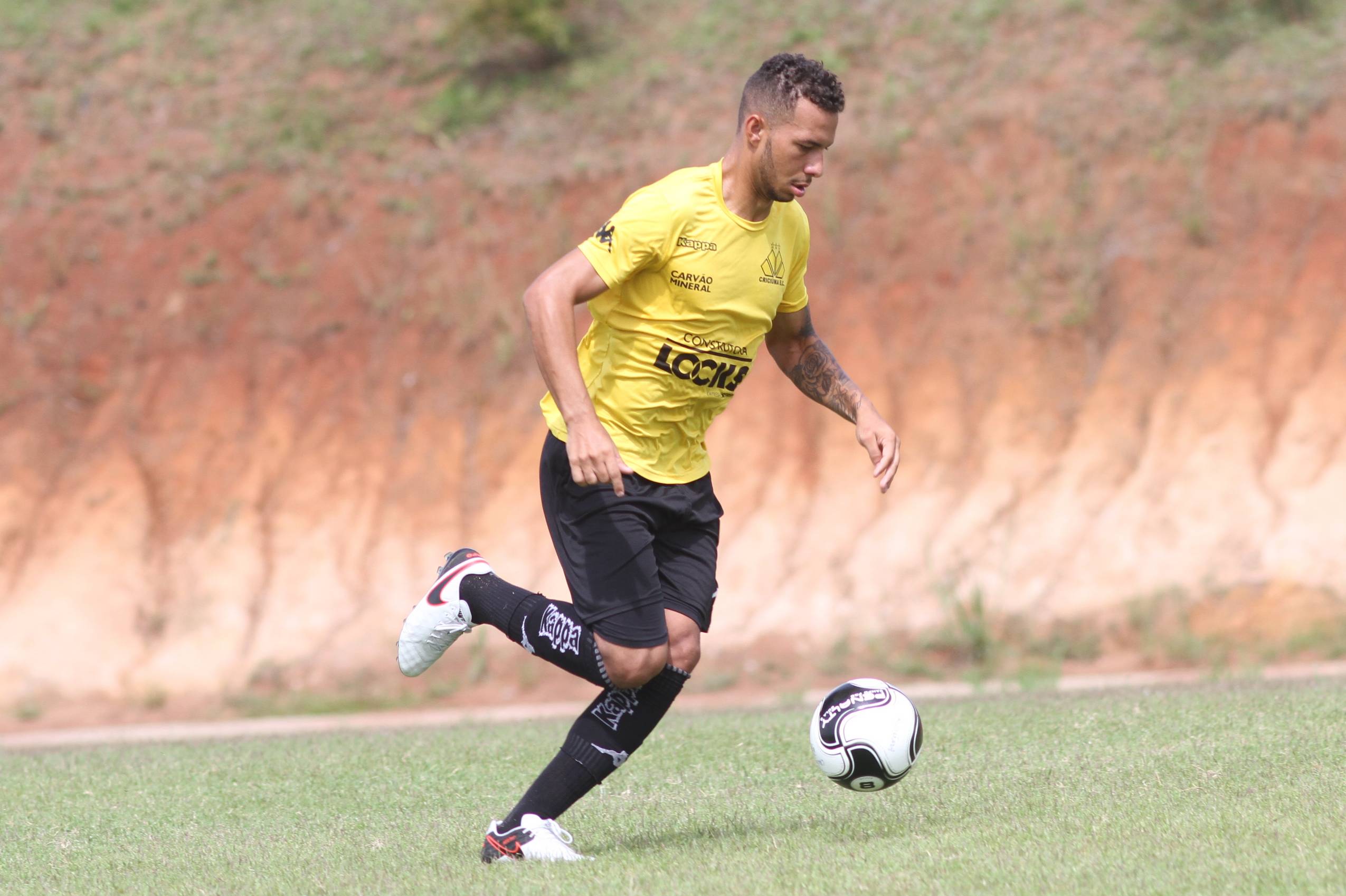 Legenda: Róger Guedes durante treino do Criciúma na manhã desta terça-feira (09/02), no Centro de Treinamento, no bairro Cristo Redentor