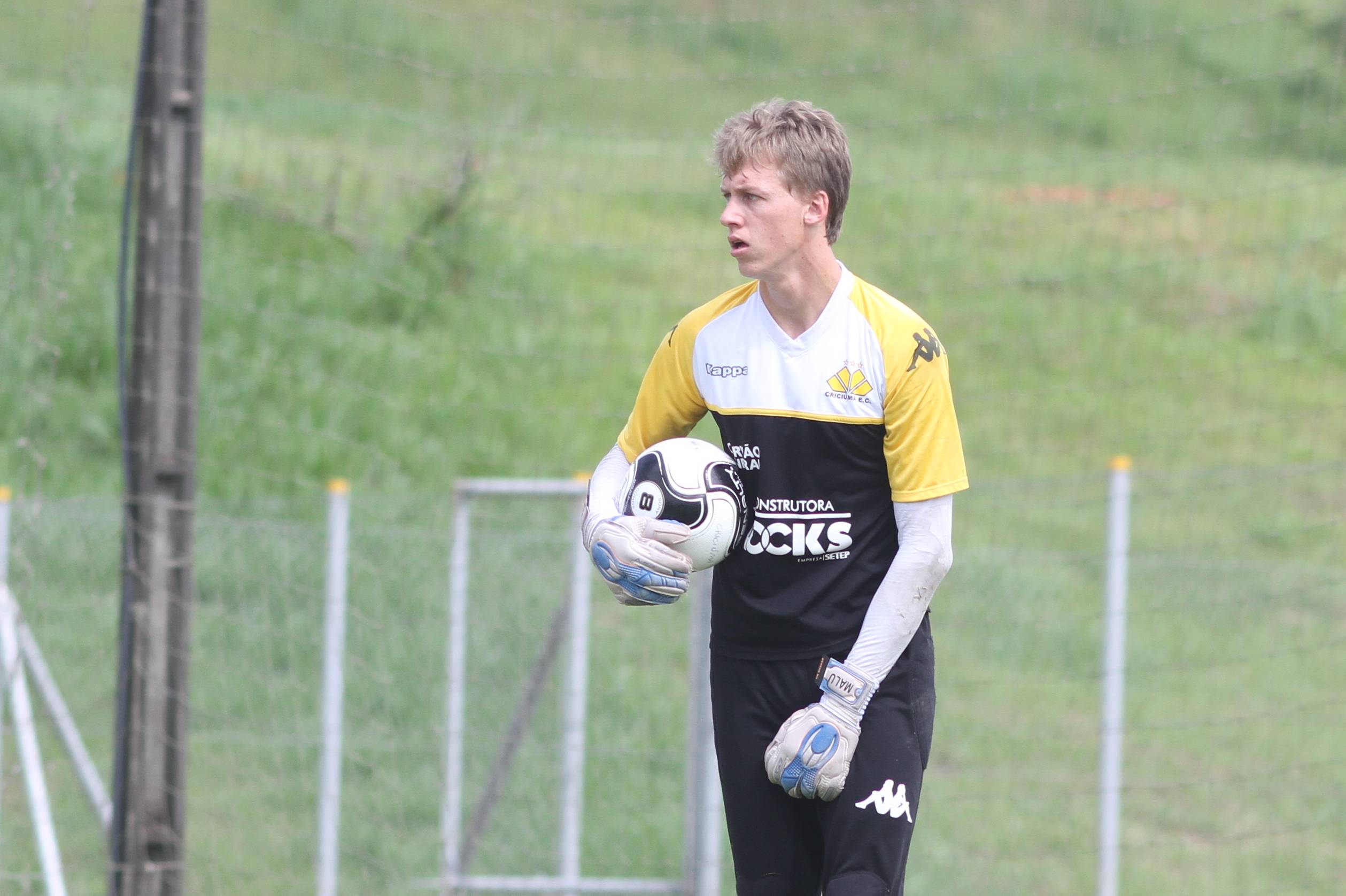 Legenda: David durante treino do Criciúma na manhã desta terça-feira (09/02), no Centro de Treinamento, no bairro Cristo Redentor