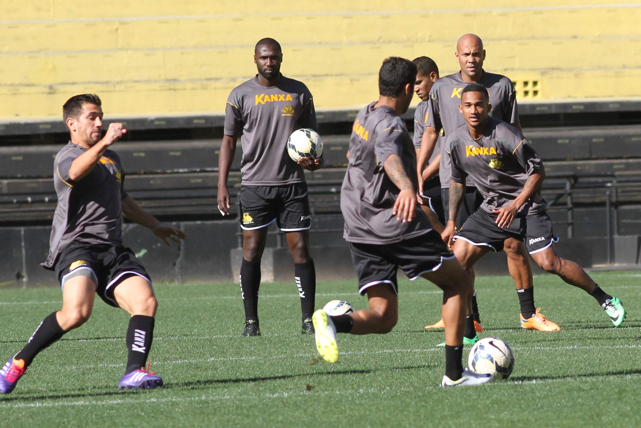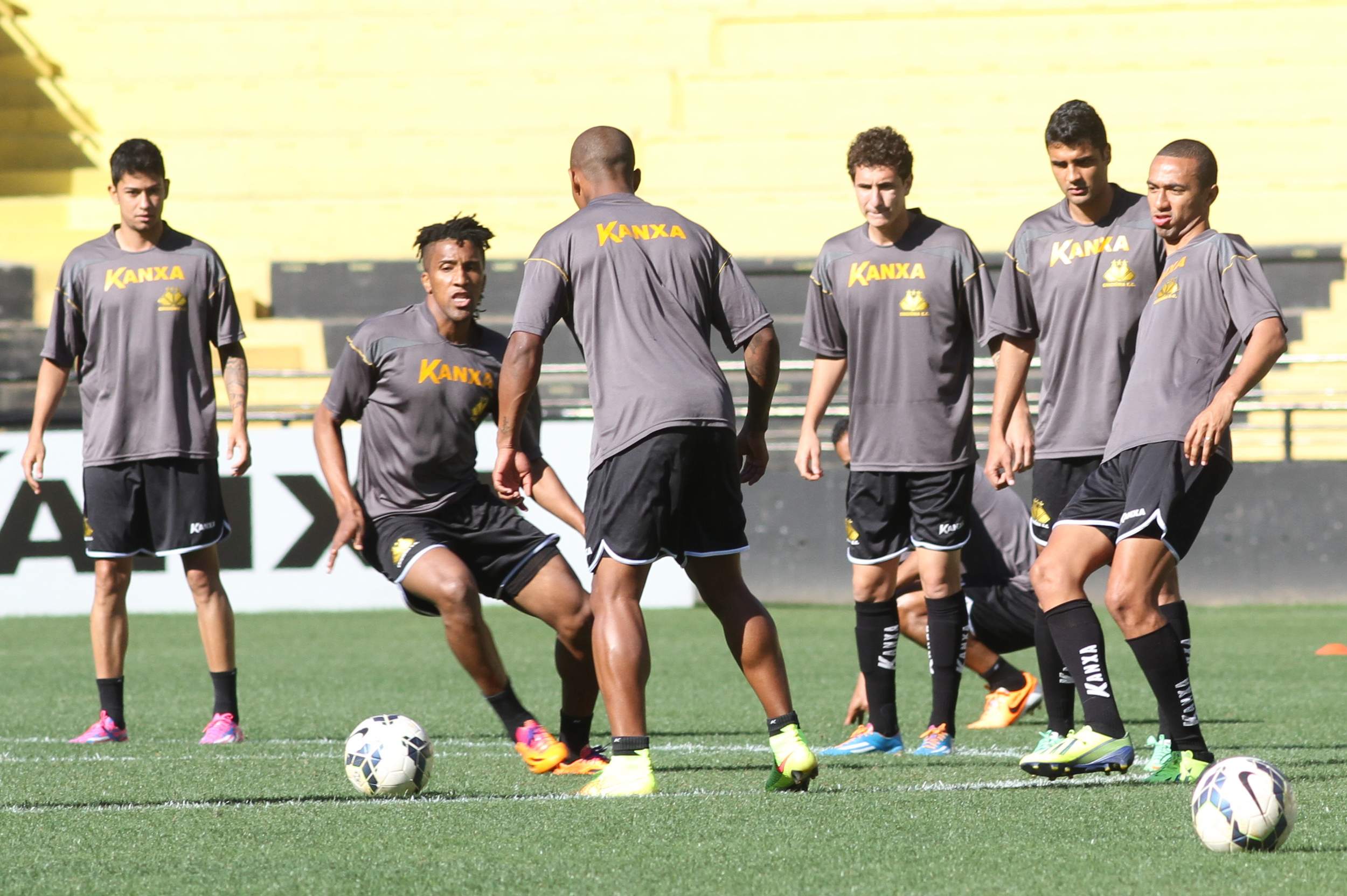 Legenda: Atletas do Tigre durante treino no estádio Heriberto Hülse na tarde desta terça-feira (16/09)