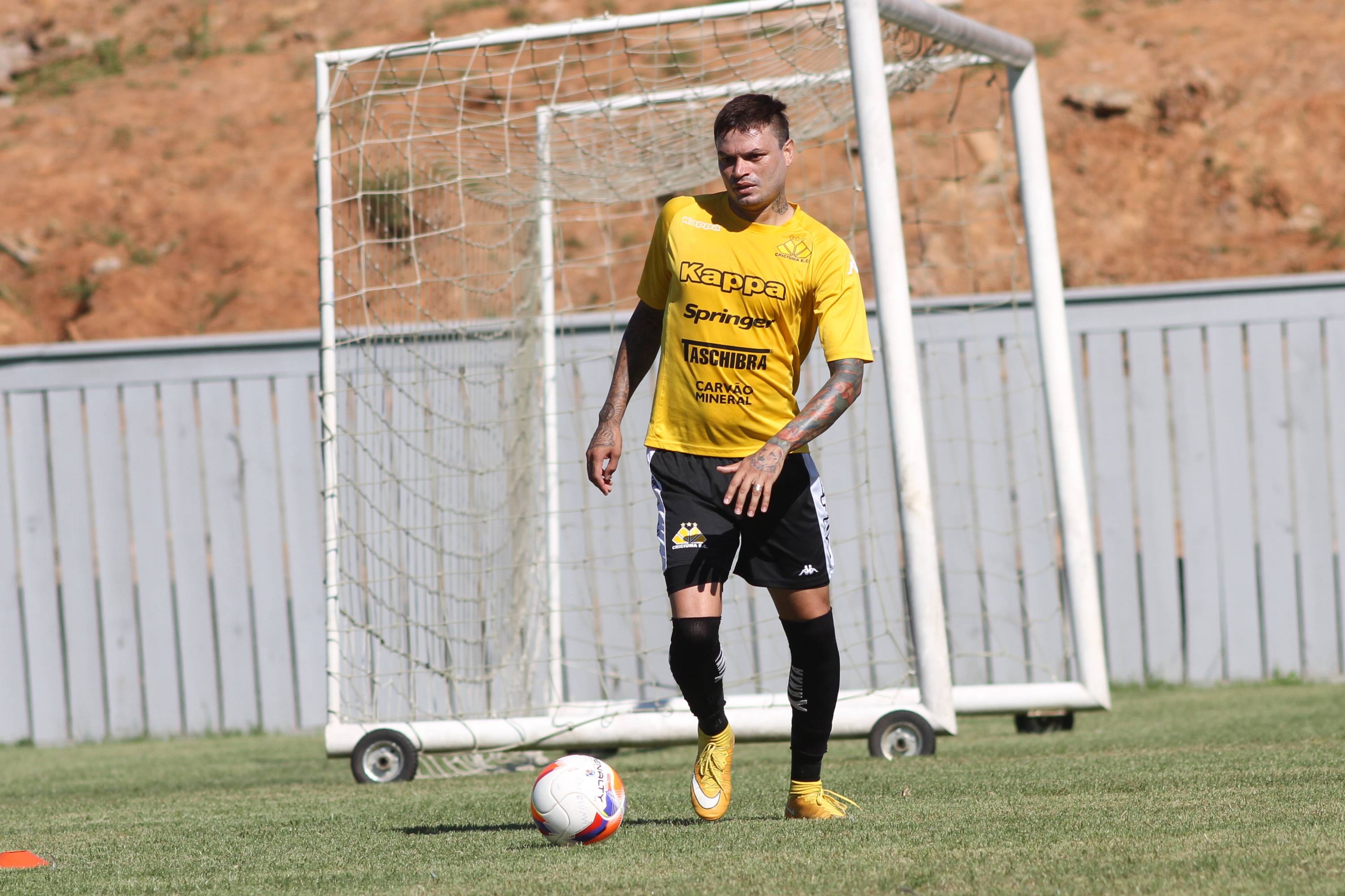 Legenda: Fábio Ferreira durante treino do Criciúma na manhã deste sábado (04/04) no Centro de Treinamento, no bairro Cristo Redentor