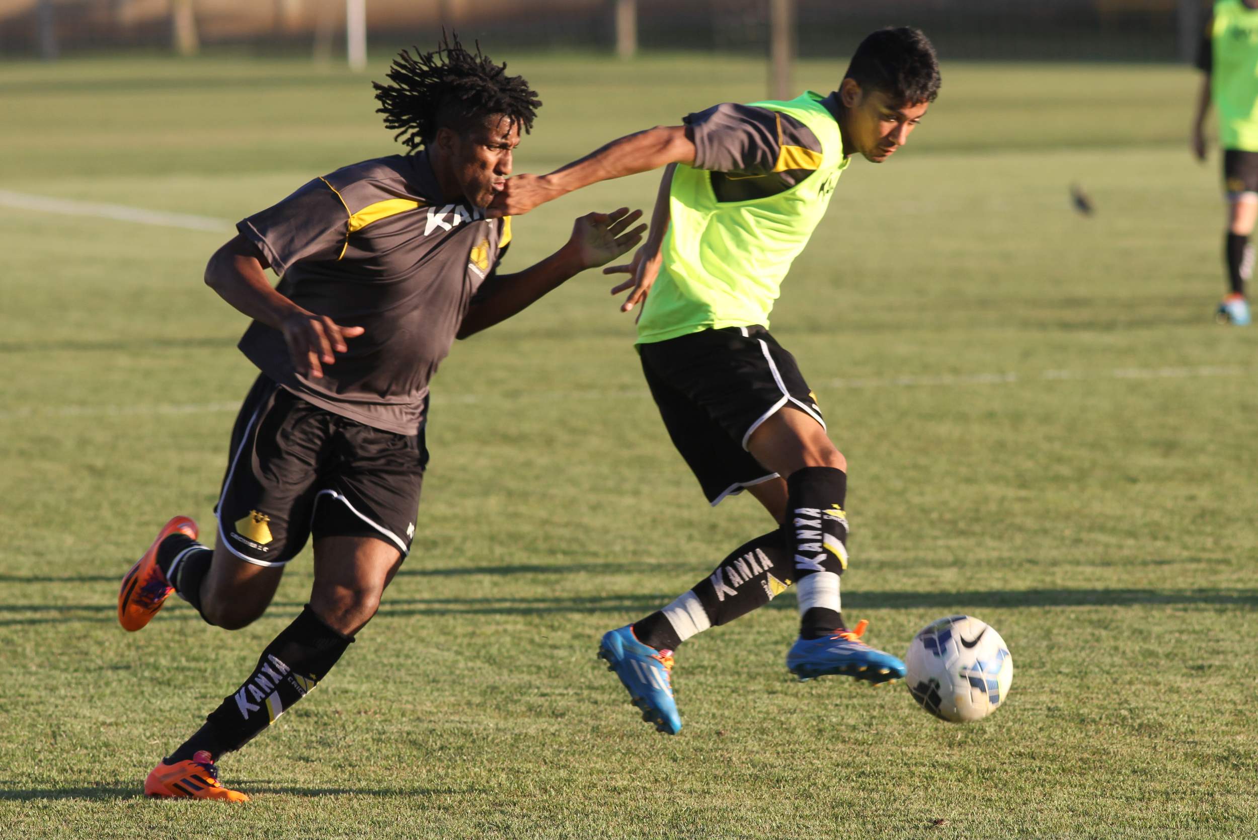 Legenda: Volante Luizinho Mello e atacante Bruno Lopes durante treino no CT na tarde desta quinta-feira (01/05)