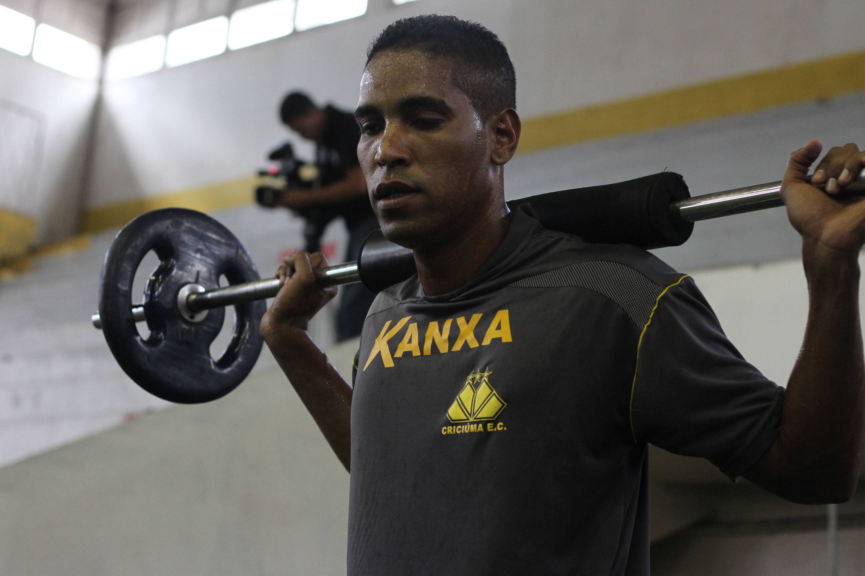 Legenda: Meia Cleber Santana durante treino de força no ginásio do estádio Heriberto Hülse na tarde desta sexta-feira (09/01)
