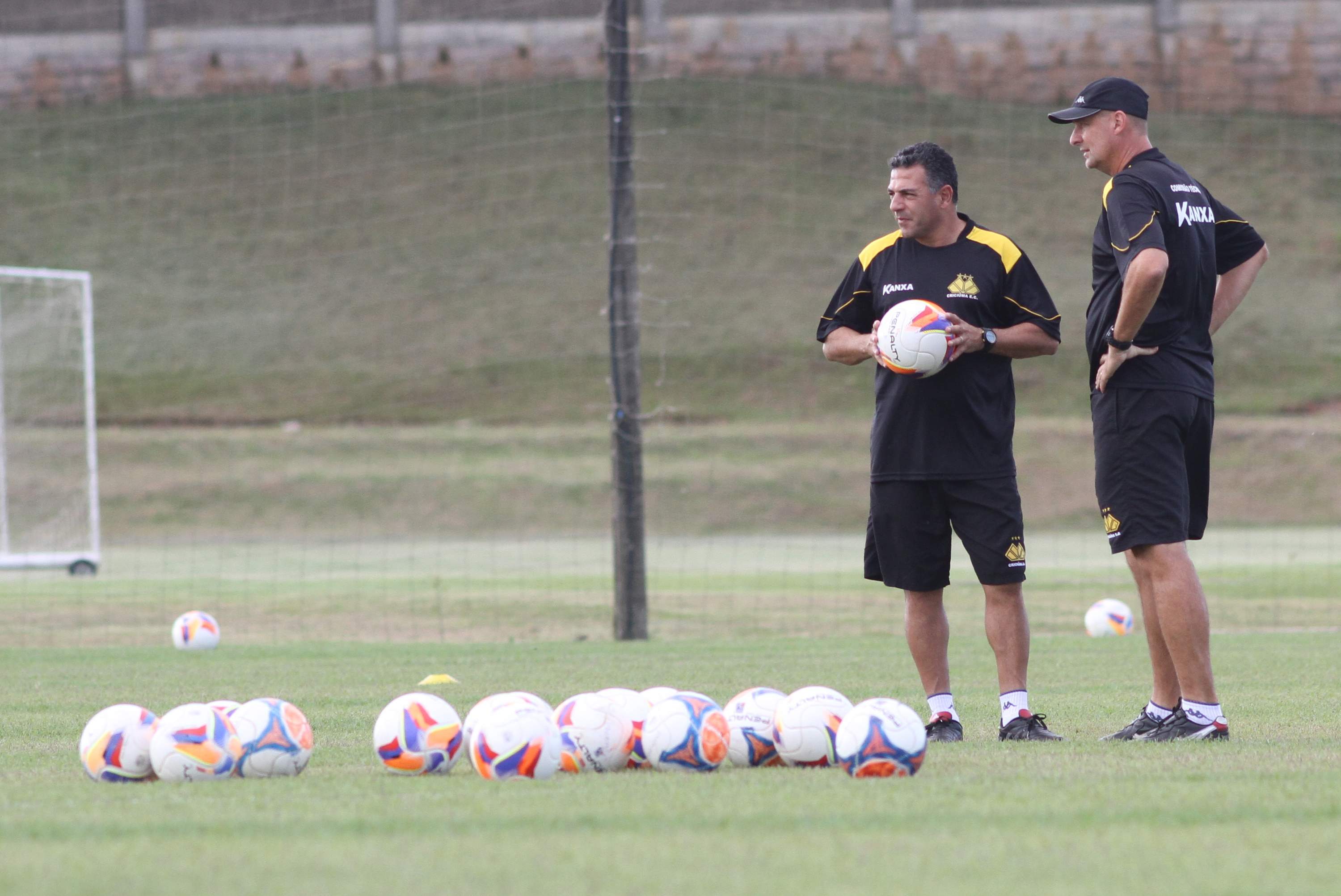 Legenda: Luizinho Vieira e Wilsão durante treino do Criciúma na tarde desta quarta-feira (01/04) no Centro de Treinamento, no bairro Cristo Redentor