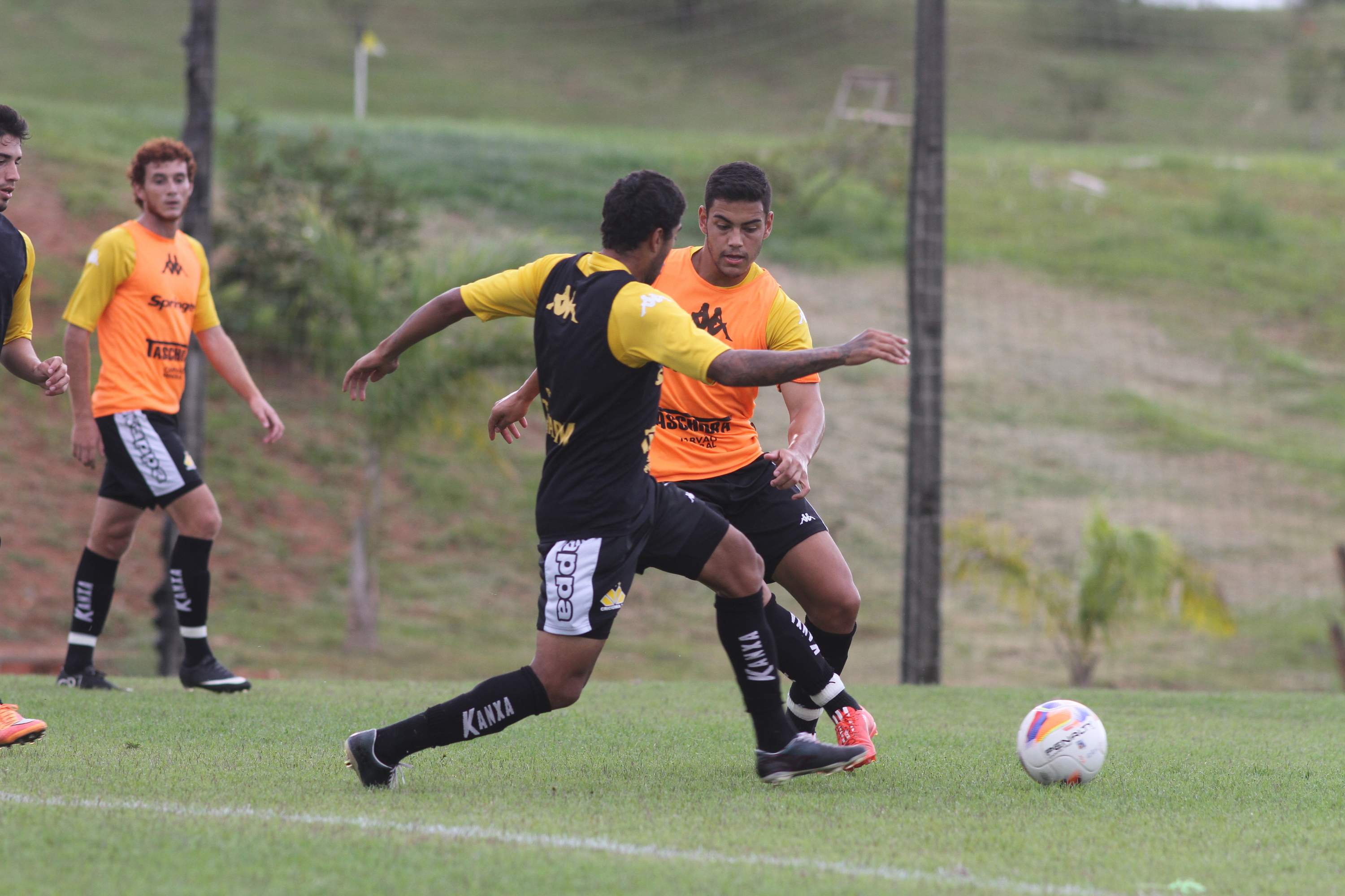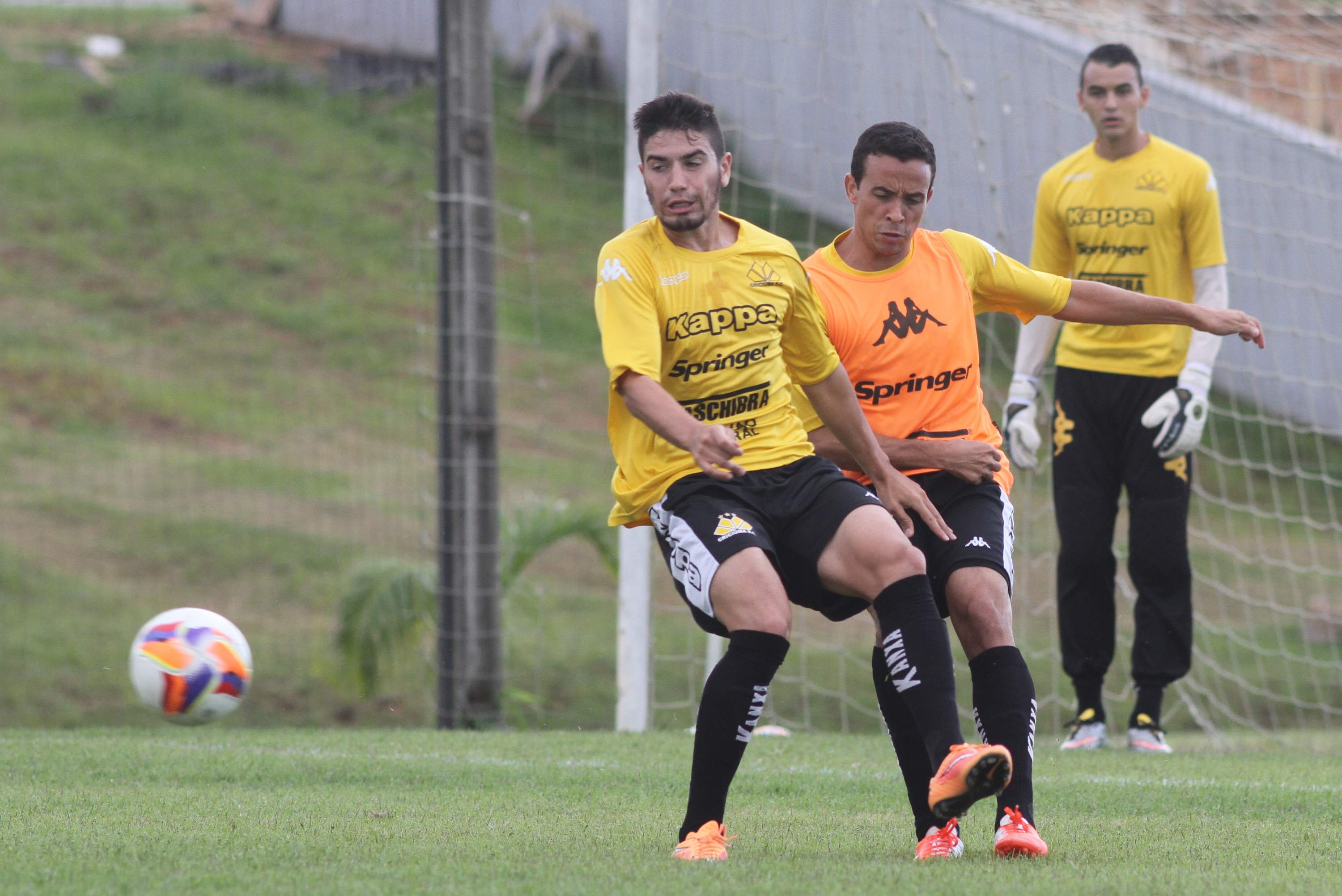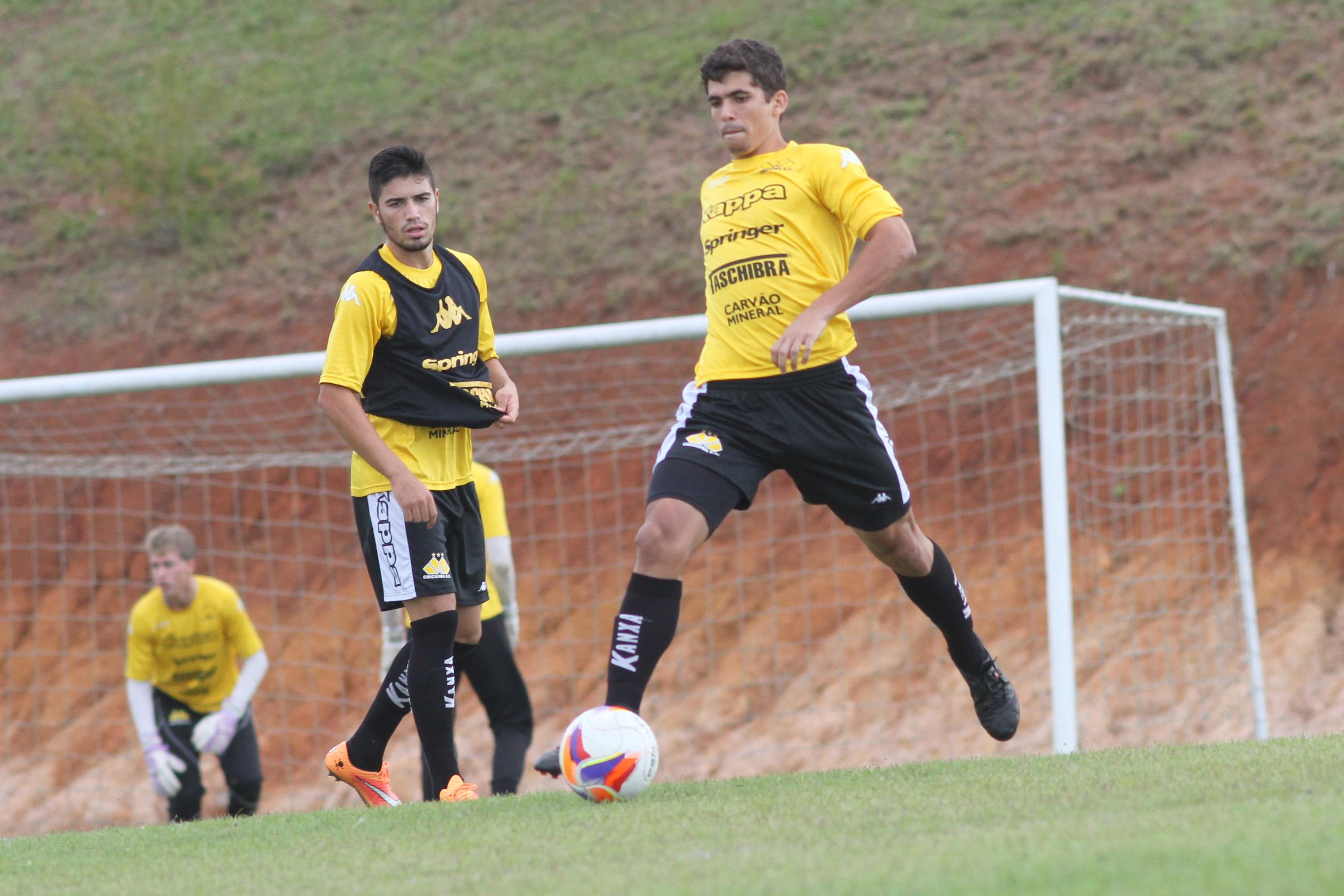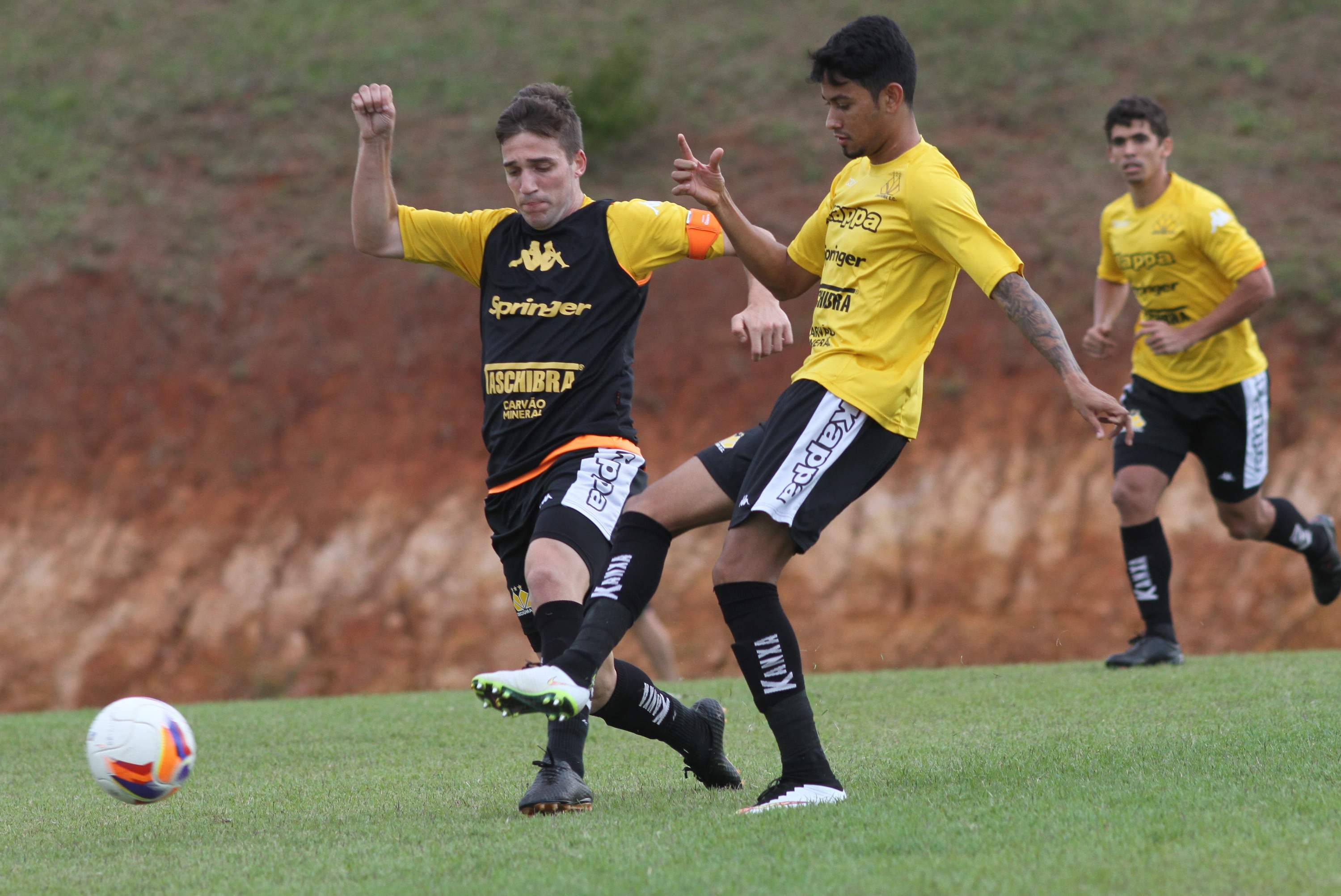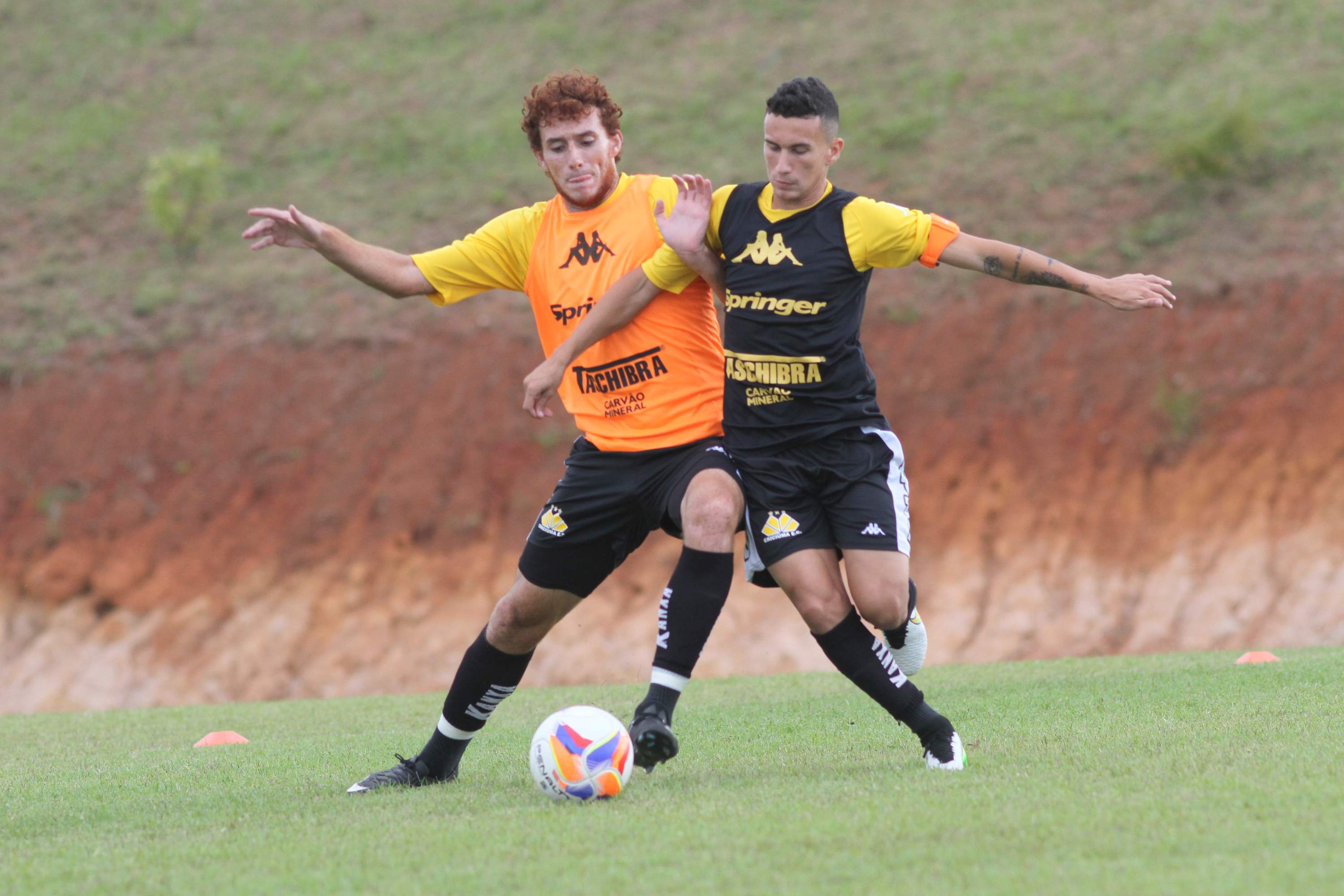 Legenda: Ianson e Douglas Moreira durante treino do Criciúma na tarde desta quarta-feira (01/04) no Centro de Treinamento, no bairro Cristo Redentor