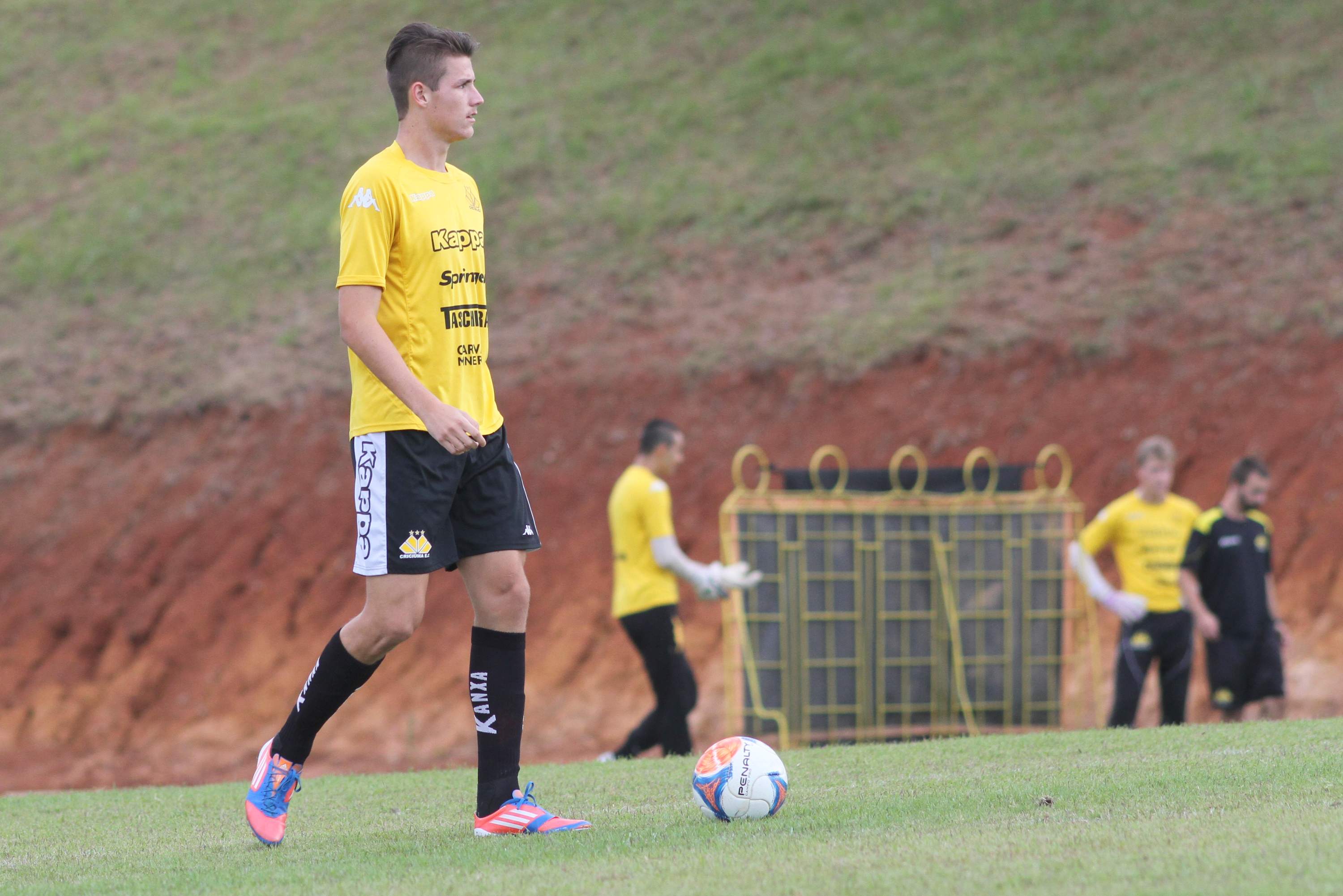 Legenda: Volante Ruan durante treino do Criciúma na tarde desta quarta-feira (01/04) no Centro de Treinamento, no bairro Cristo Redentor