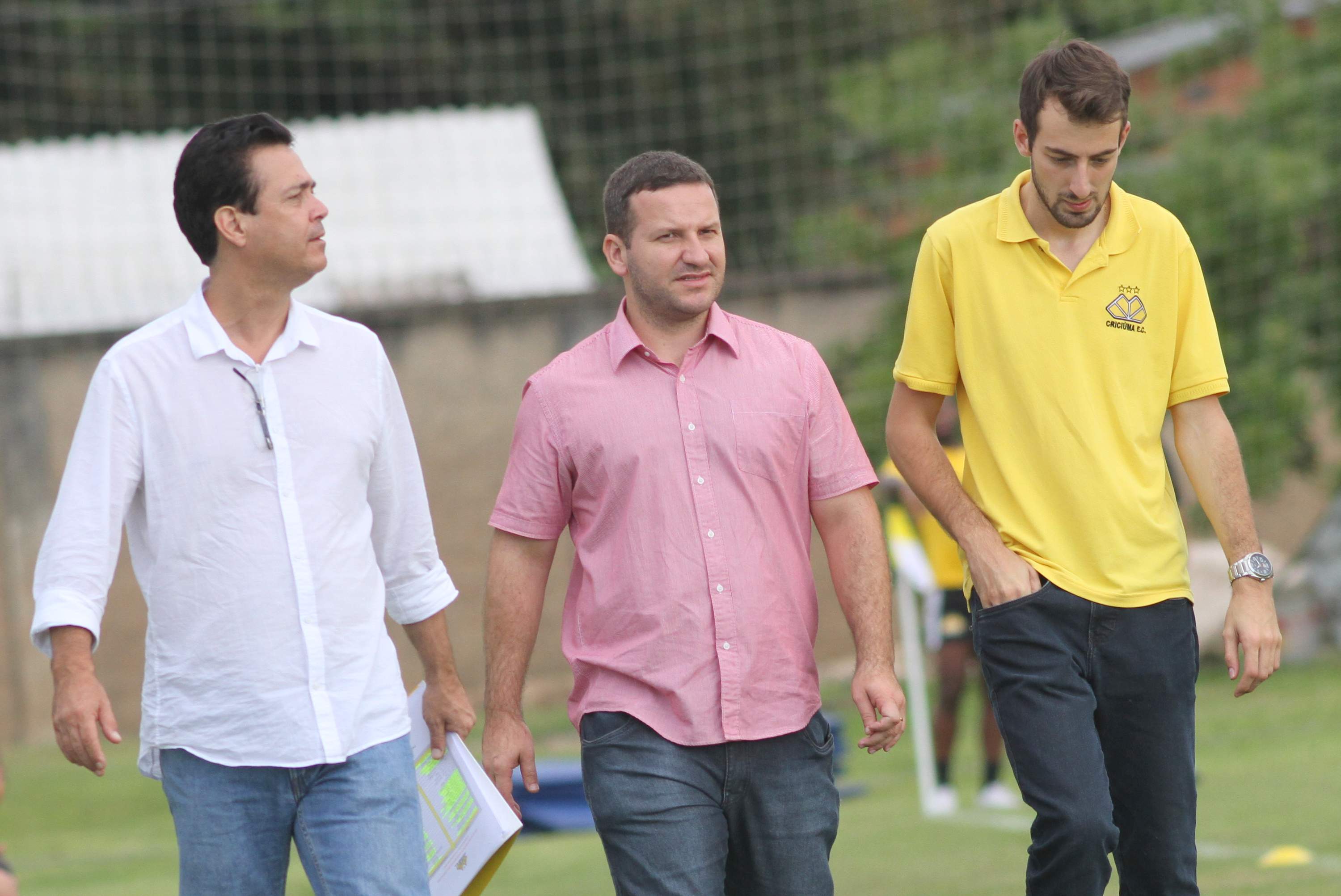Legenda: Marcos Moura Teixeira, Giuliano Bitencourt e Tiago Neoti durante treino do Criciúma na tarde desta quarta-feira (01/04) no Centro de Treinamento, no bairro Cristo Redentor