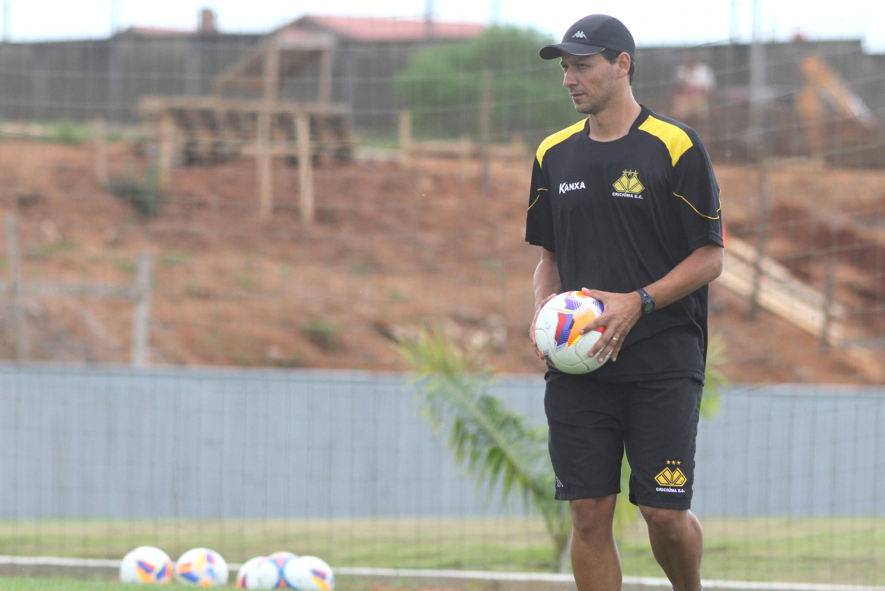 Legenda: Técnico Luizinho Vieira durante treino do Criciúma na tarde desta quarta-feira (01/04) no Centro de Treinamento, no bairro Cristo Redentor