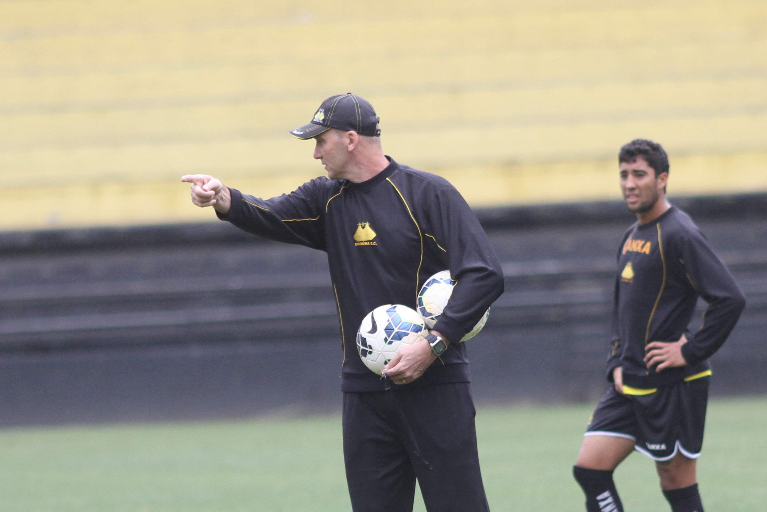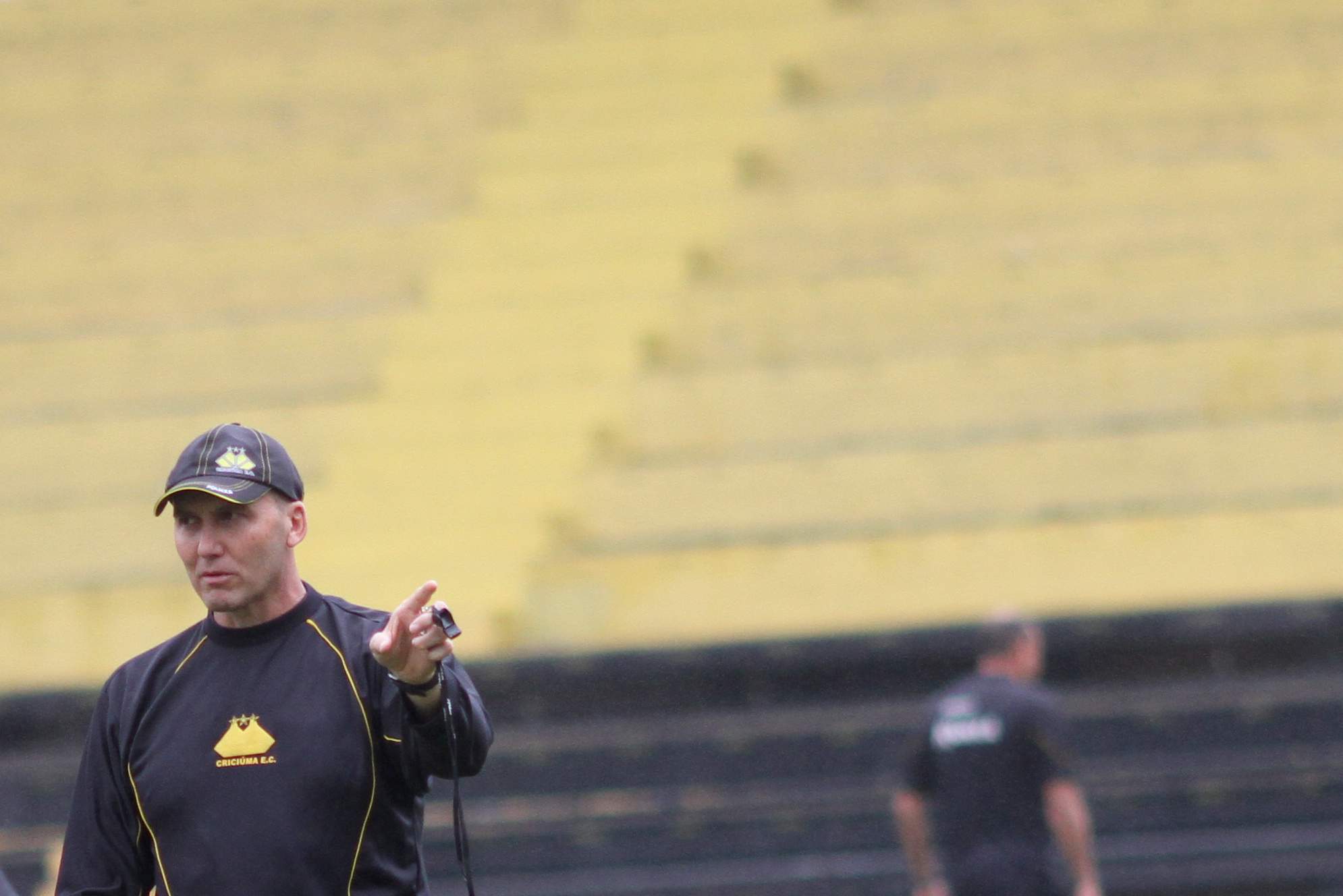 Legenda: Técnico Gilmar Dal Pozzo durante treino no estádio Heriberto Hülse na manhã deste sábado (11/10)