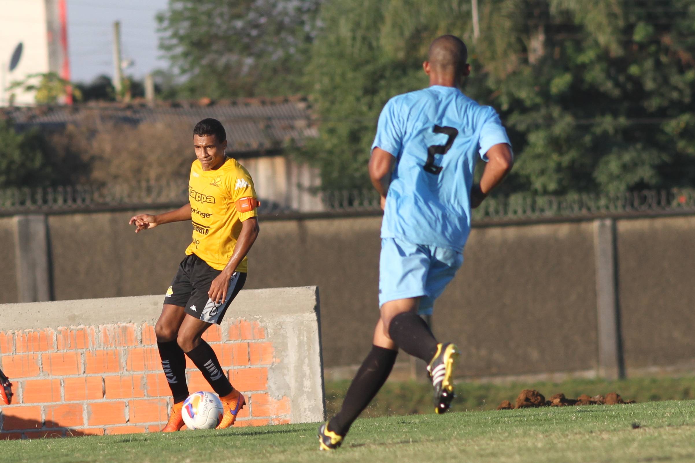 Legenda: Volante Ruan durante jogo treino entre Criciúma e Atlético Tubarão na tarde desta terça-feira (09/06), no Centro de Treinamento, no bairro Cristo Redentor