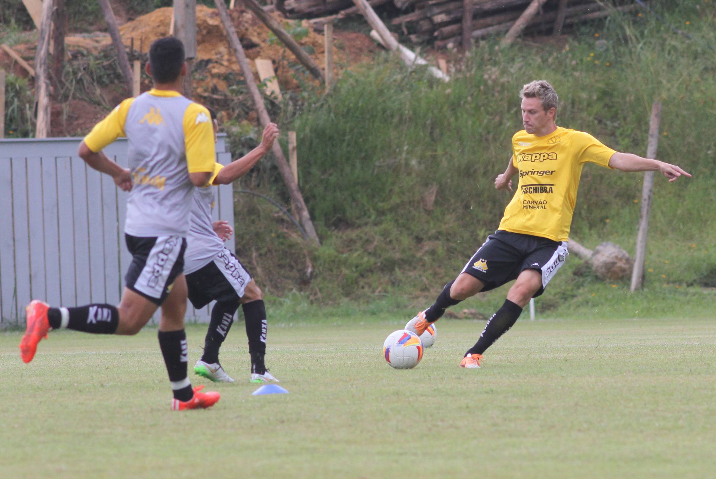 Legenda: Meia Cleber Santana durante treino do Criciúma na manhã deste sábado (21/03) no Centro de Treinamento, no bairro Cristo Redentor