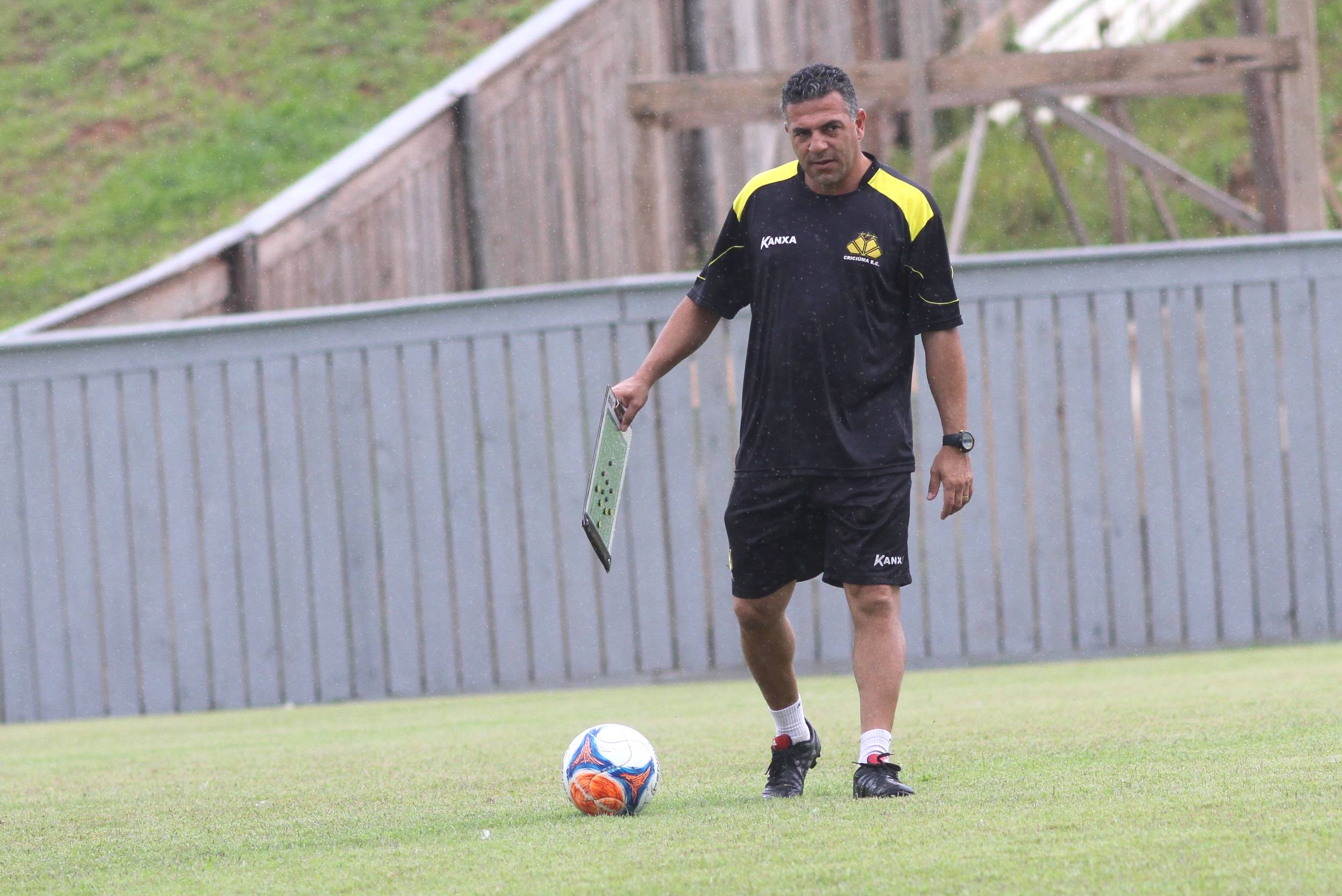 Legenda: Técnico Luizinho Vieira durante treino do Criciúma na manhã deste sábado (21/03) no Centro de Treinamento, no bairro Cristo Redentor