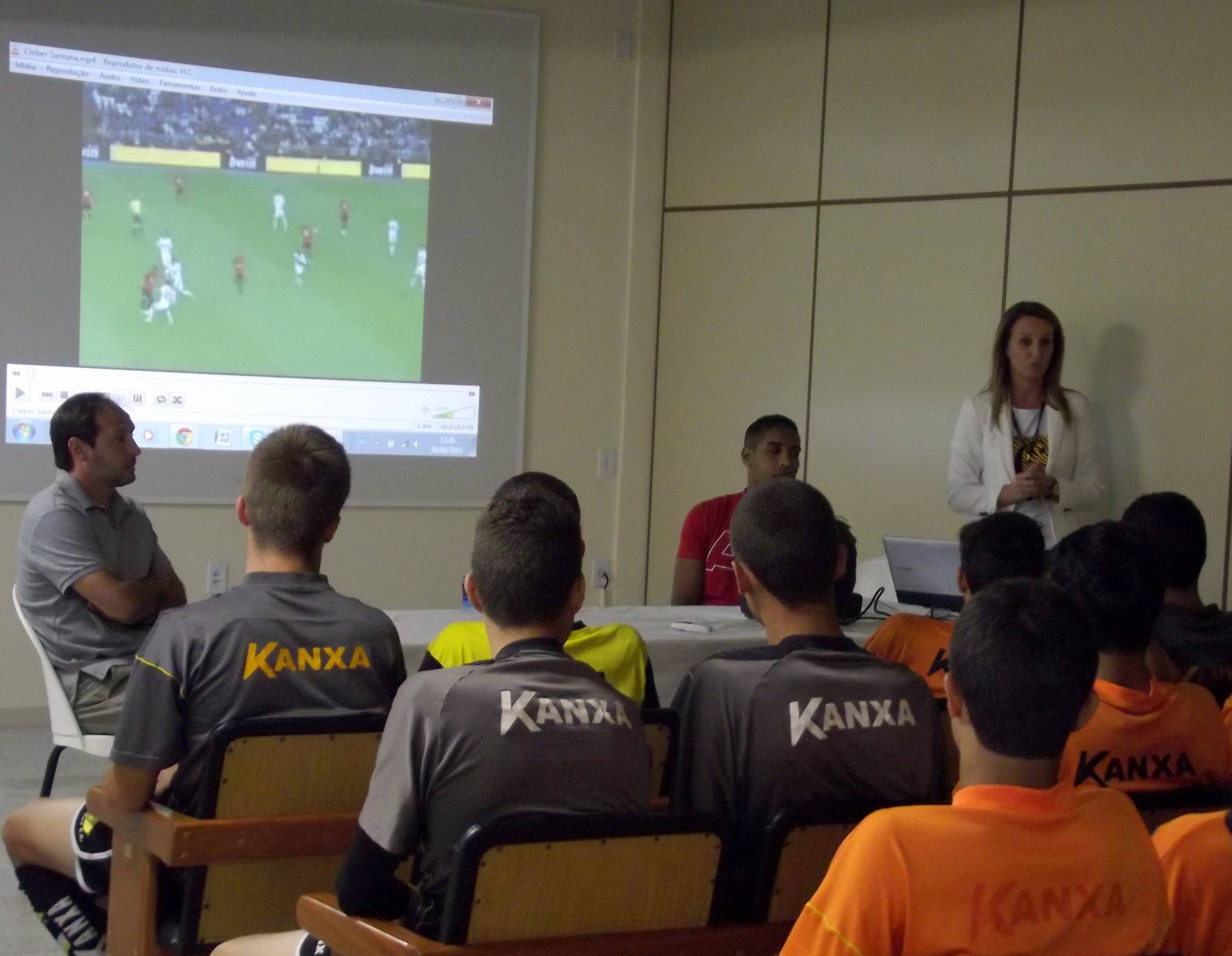 Legenda: Jogadores no encontro com o meia Cleber Santana, em que conheceram mais da carreira do jogador.