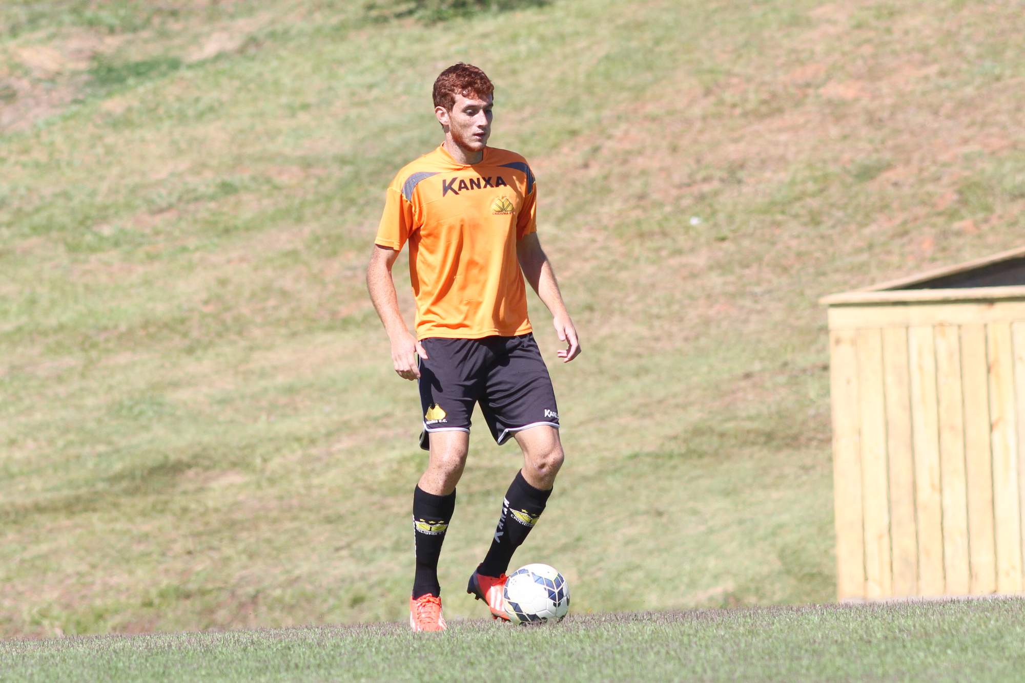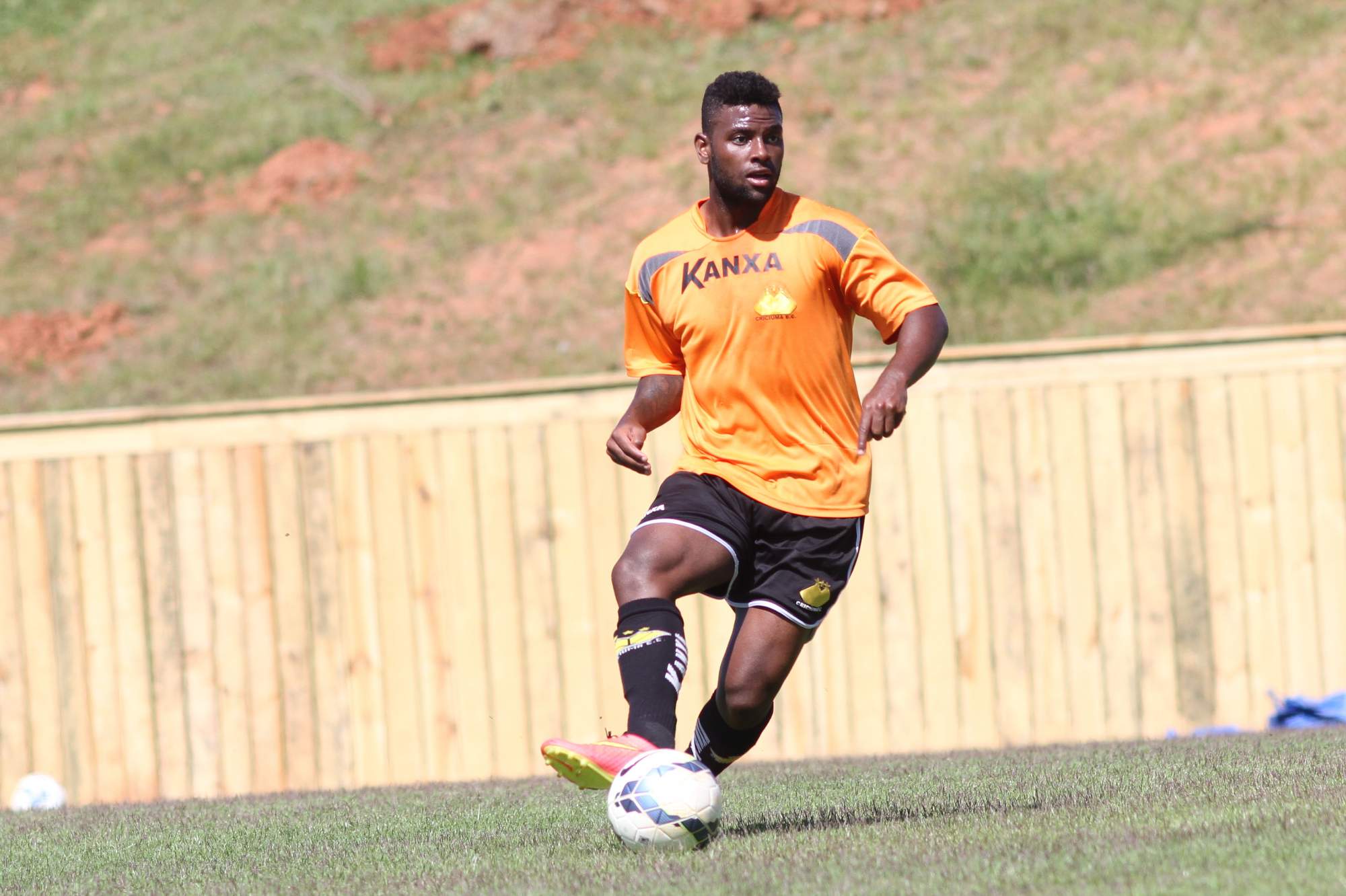 Legenda: Volante Serginho durante treino do Criciúma no CT na manhã desta segunda-feira (17/11)