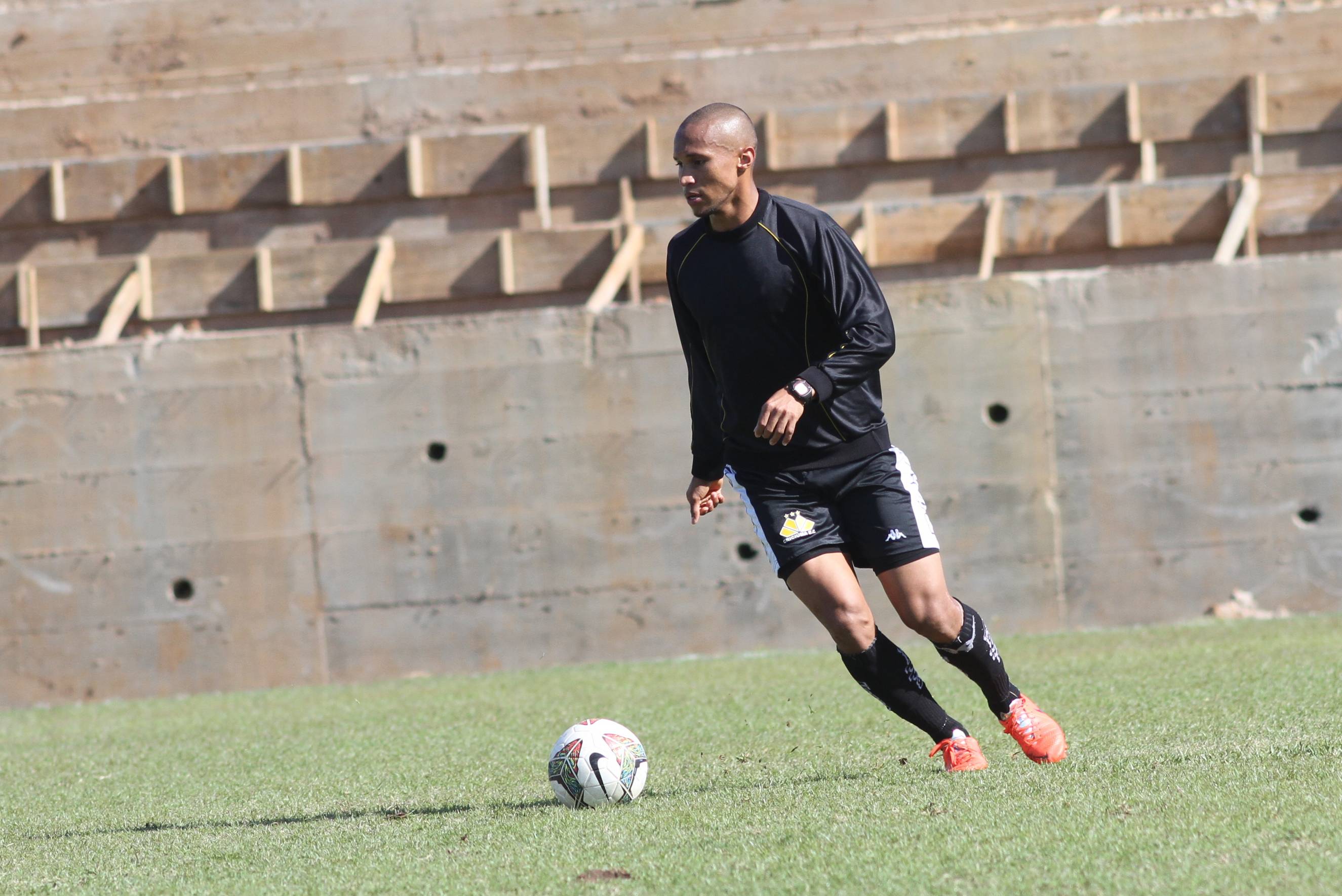 Legenda: Atacante Jefferson durante treino do Criciúma na manhã deste domingo (19/07) no Centro de Treinamento, no bairro Cristo Redentor