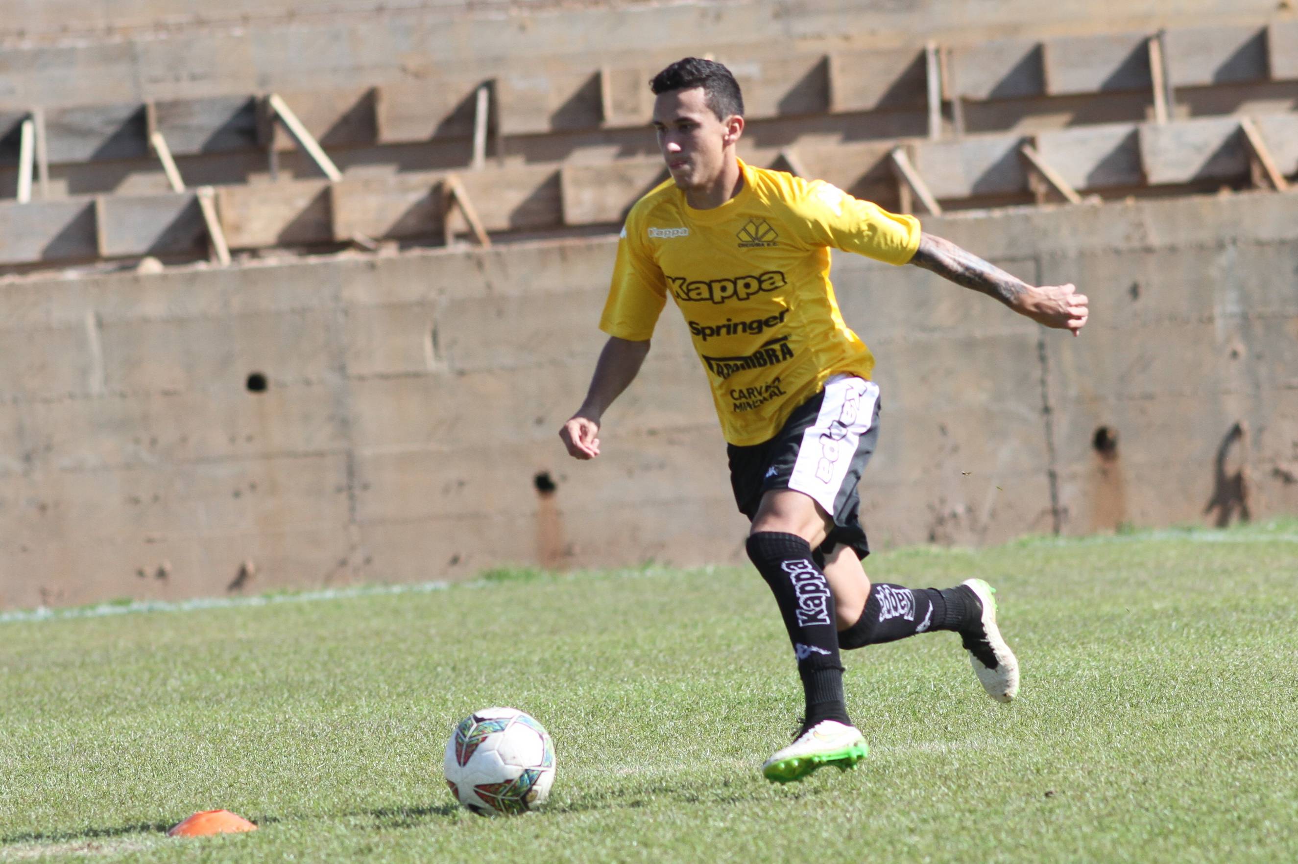 Legenda: Lateral direito Jonas durante treino do Criciúma na manhã deste domingo (19/07) no Centro de Treinamento, no bairro Cristo Redentor