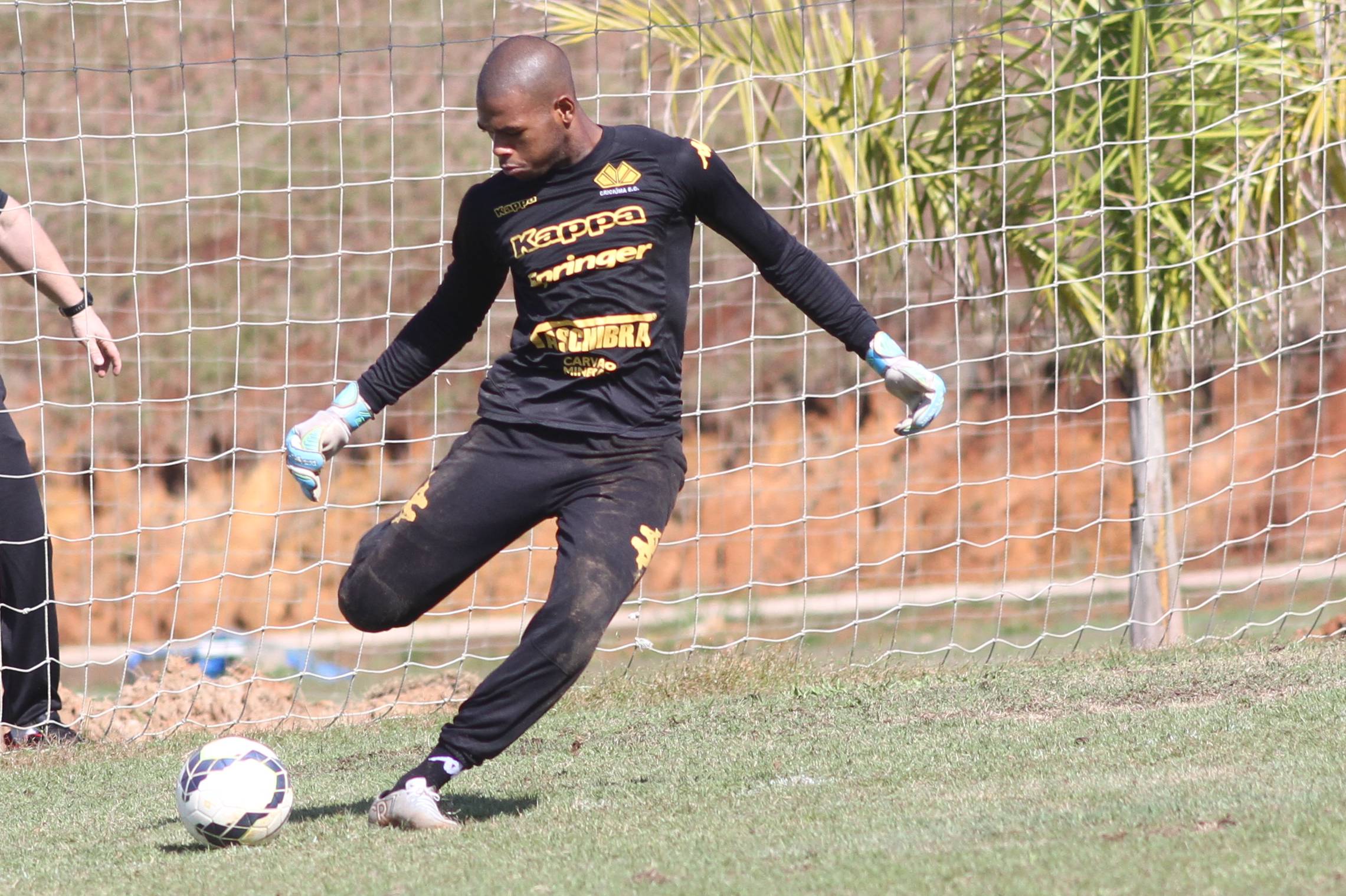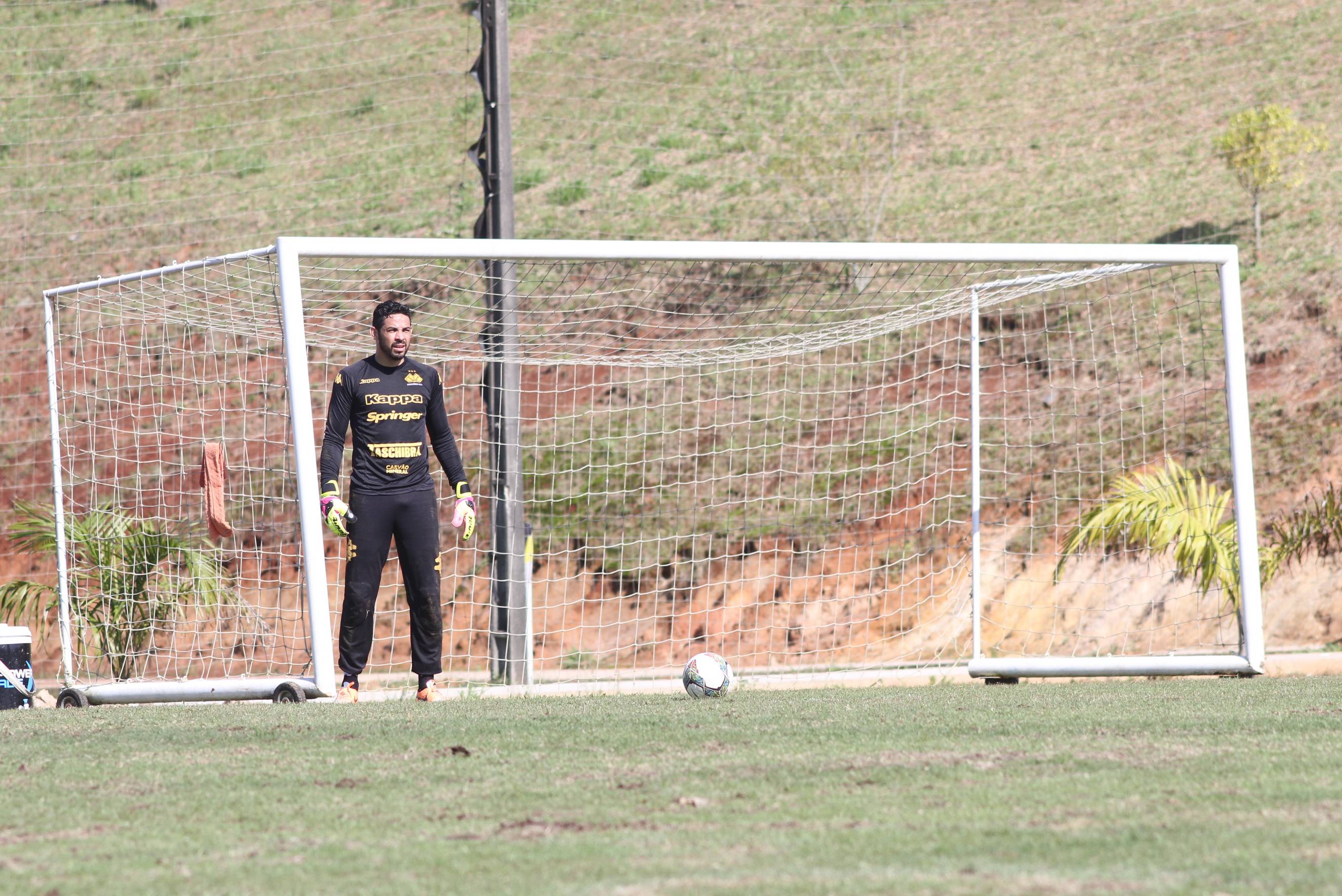 Legenda: Goleiro Bryan durante treino do Criciúma na manhã deste domingo (19/07) no Centro de Treinamento, no bairro Cristo Redentor
