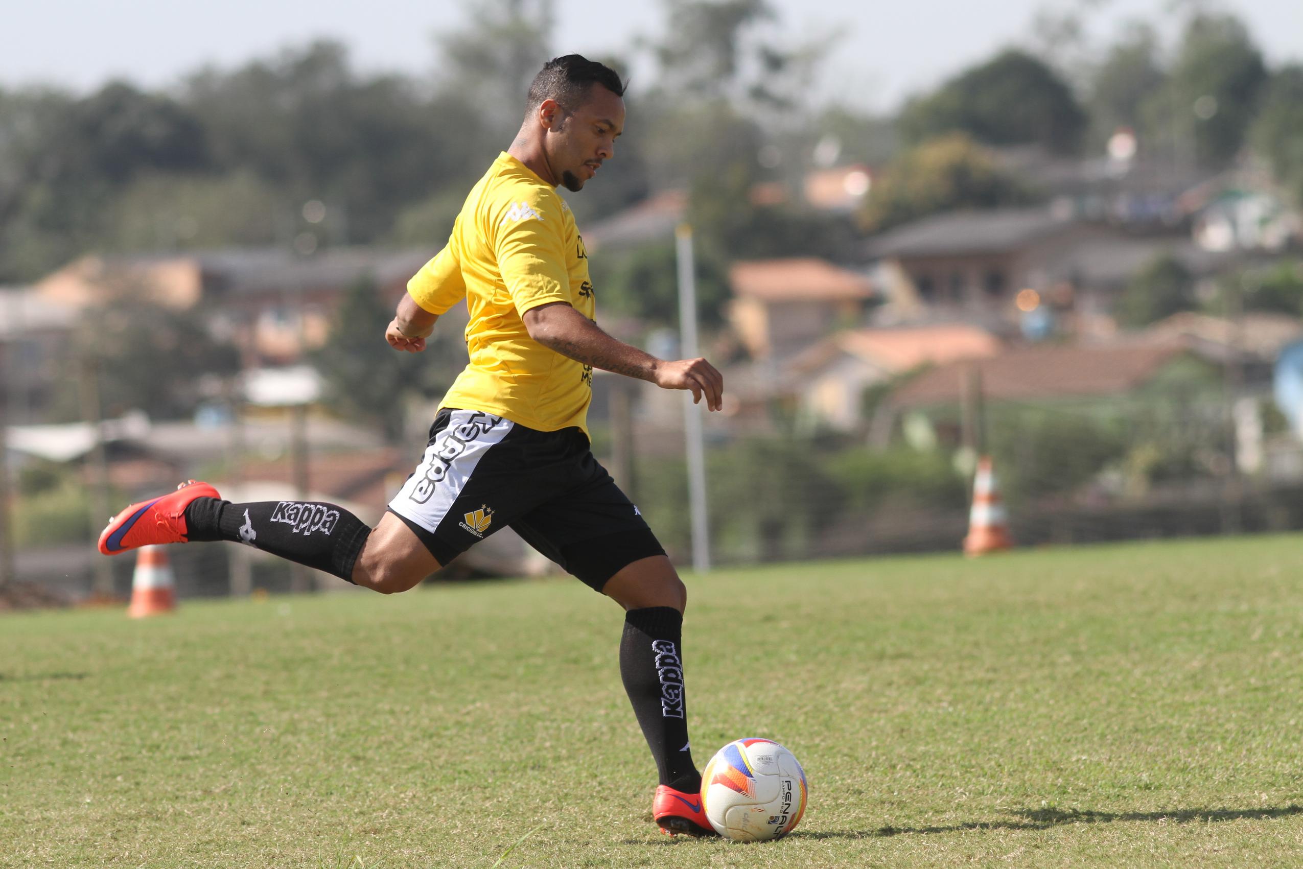 Legenda: Atacante Paulo Sérgio durante treino do Criciúma na manhã desta terça-feira (18/08), no Centro de Treinamento, no bairro Cristo Redentor