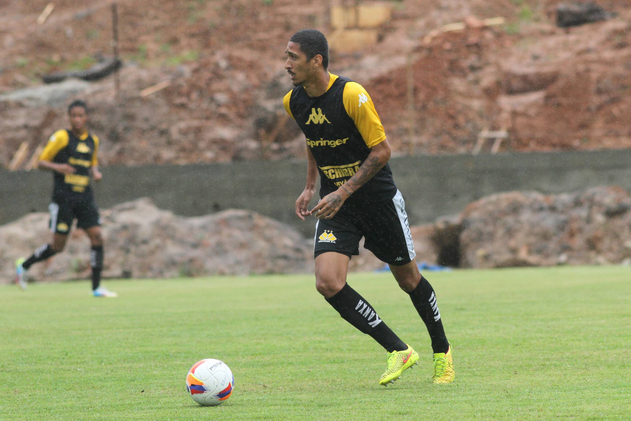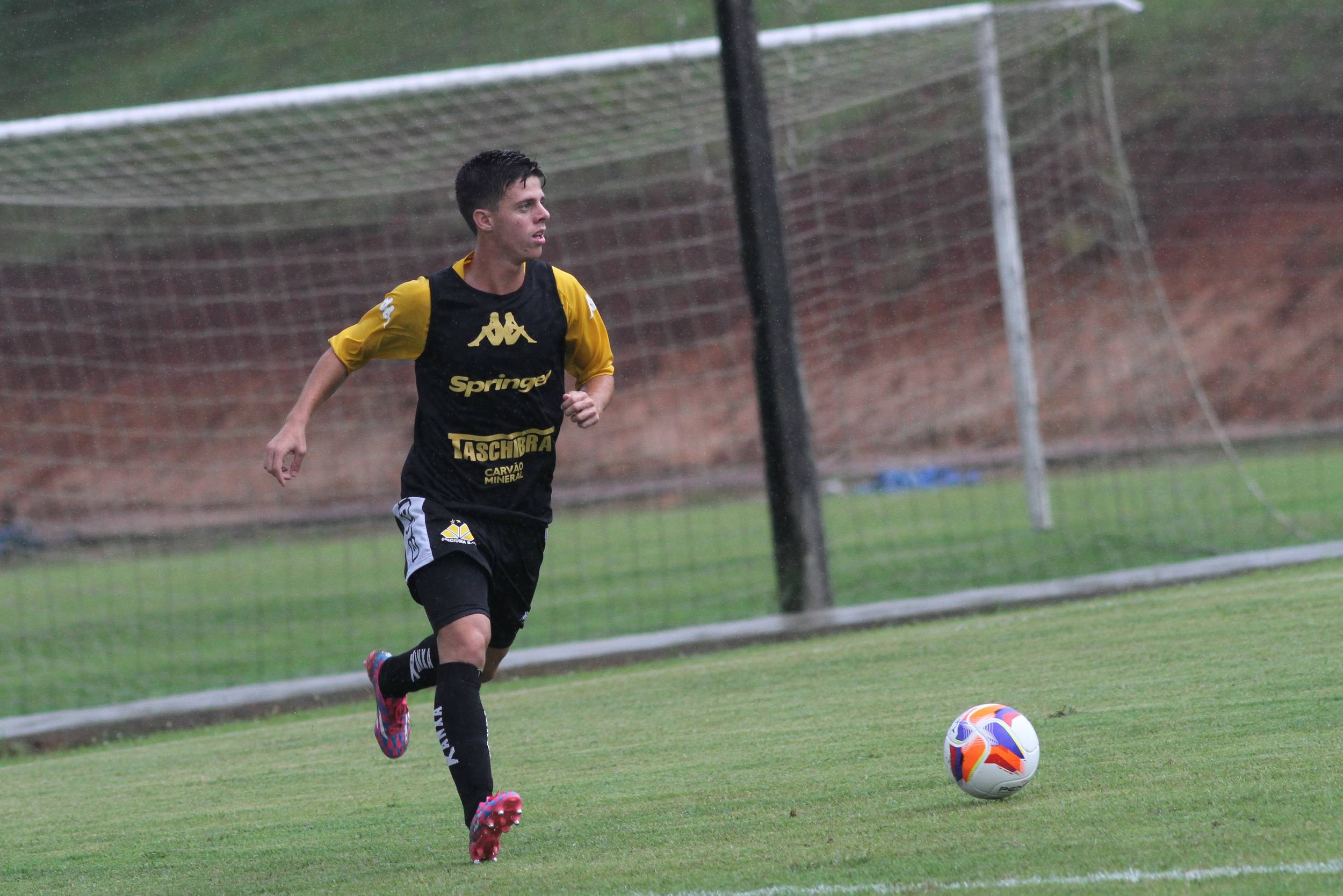 Legenda: Volante Ruan durante treino do Criciúma na tarde desta quinta-feira (16/04) no Centro de Treinamento, no bairro Cristo Redentor