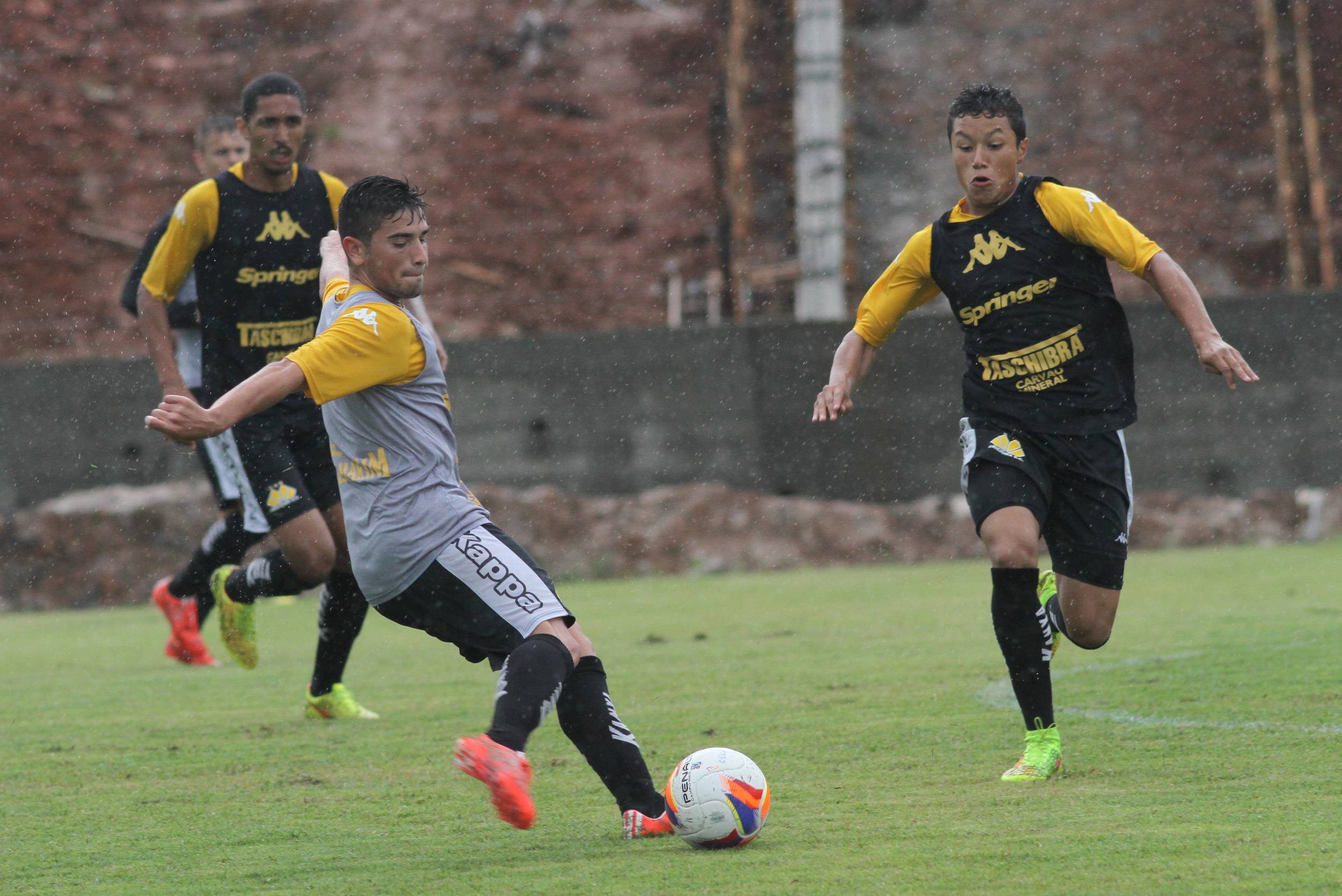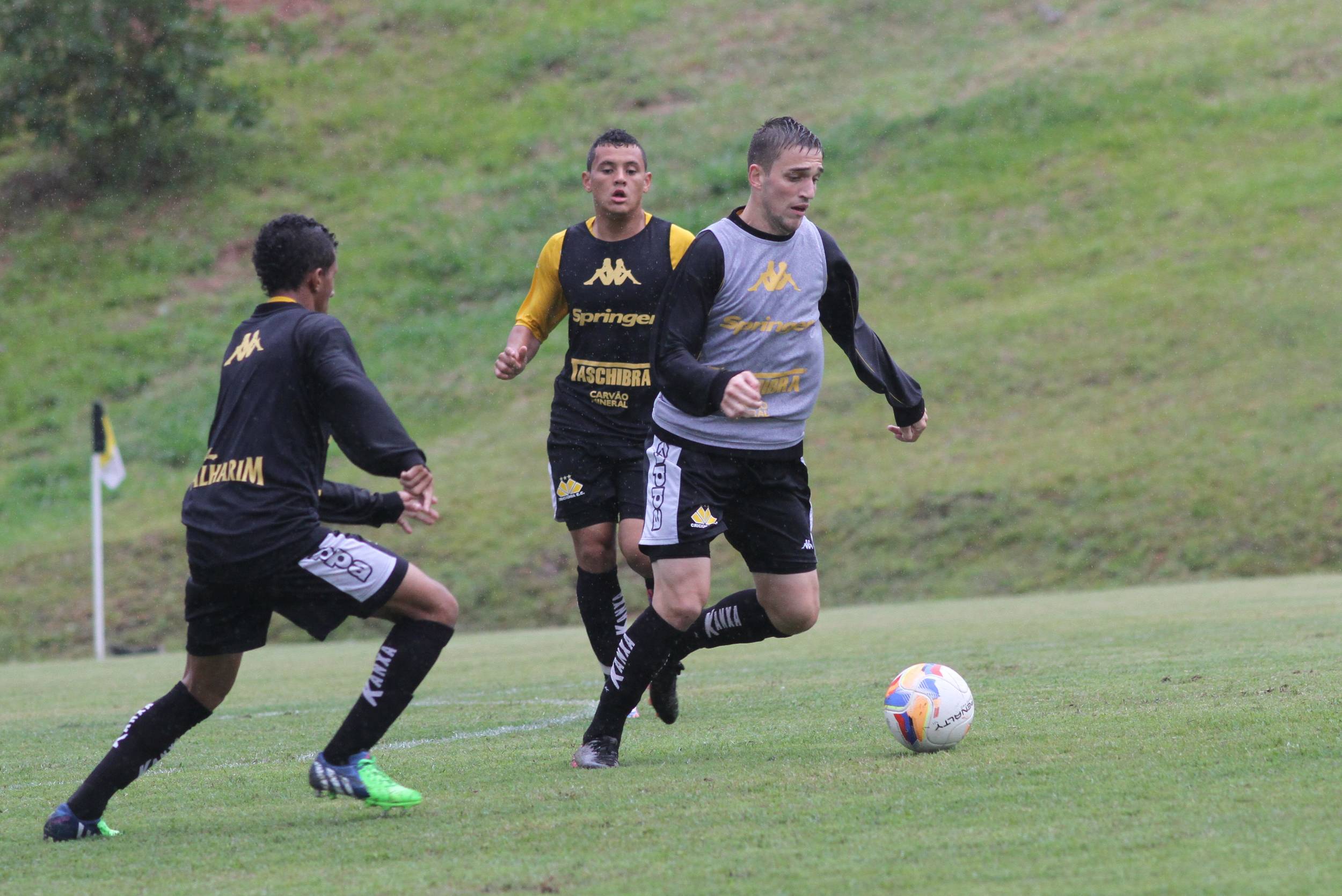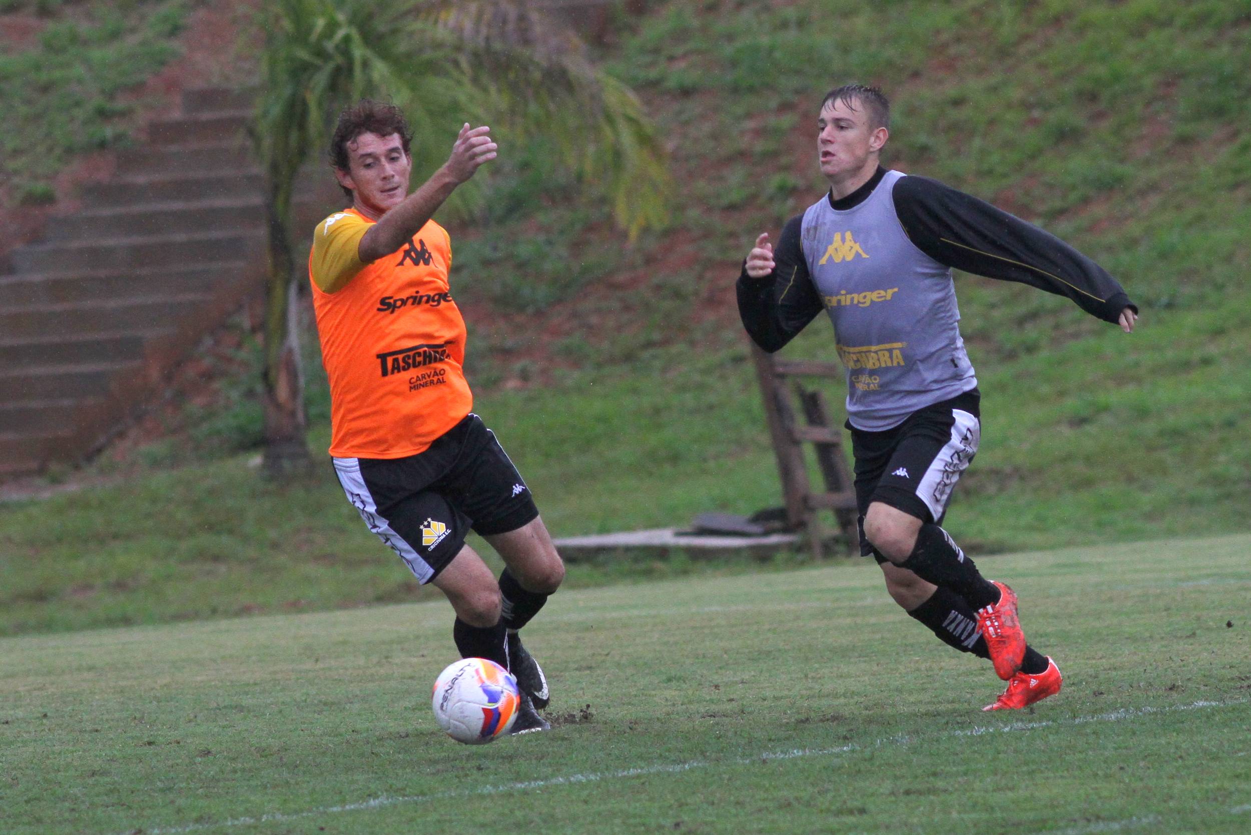 Legenda: Ianson e Róger Guedes durante treino do Criciúma na tarde desta quinta-feira (16/04) no Centro de Treinamento, no bairro Cristo Redentor