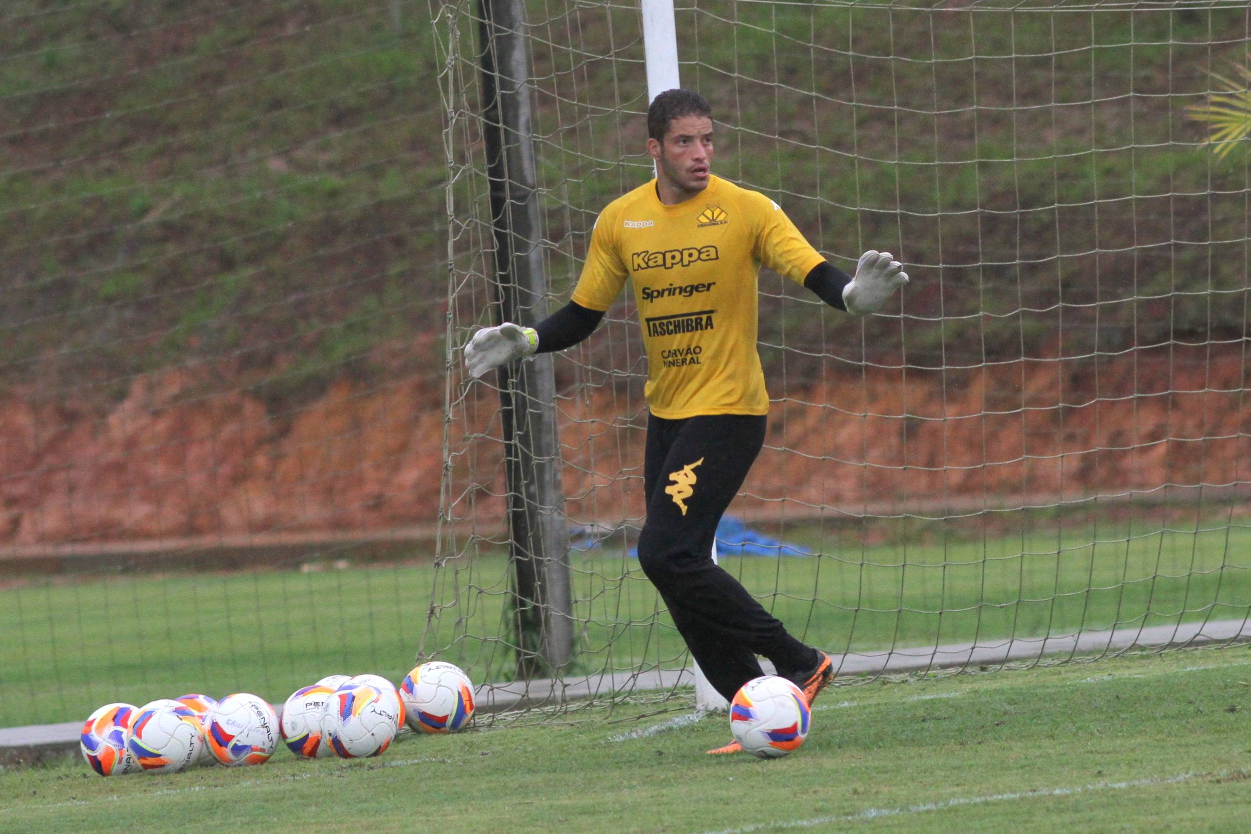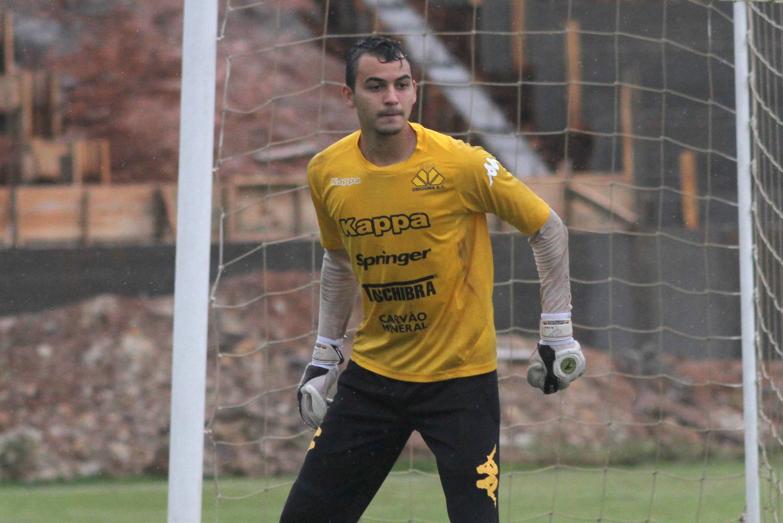 Legenda: Goleiro Edson durante treino do Criciúma na tarde desta quinta-feira (16/04) no Centro de Treinamento, no bairro Cristo Redentor