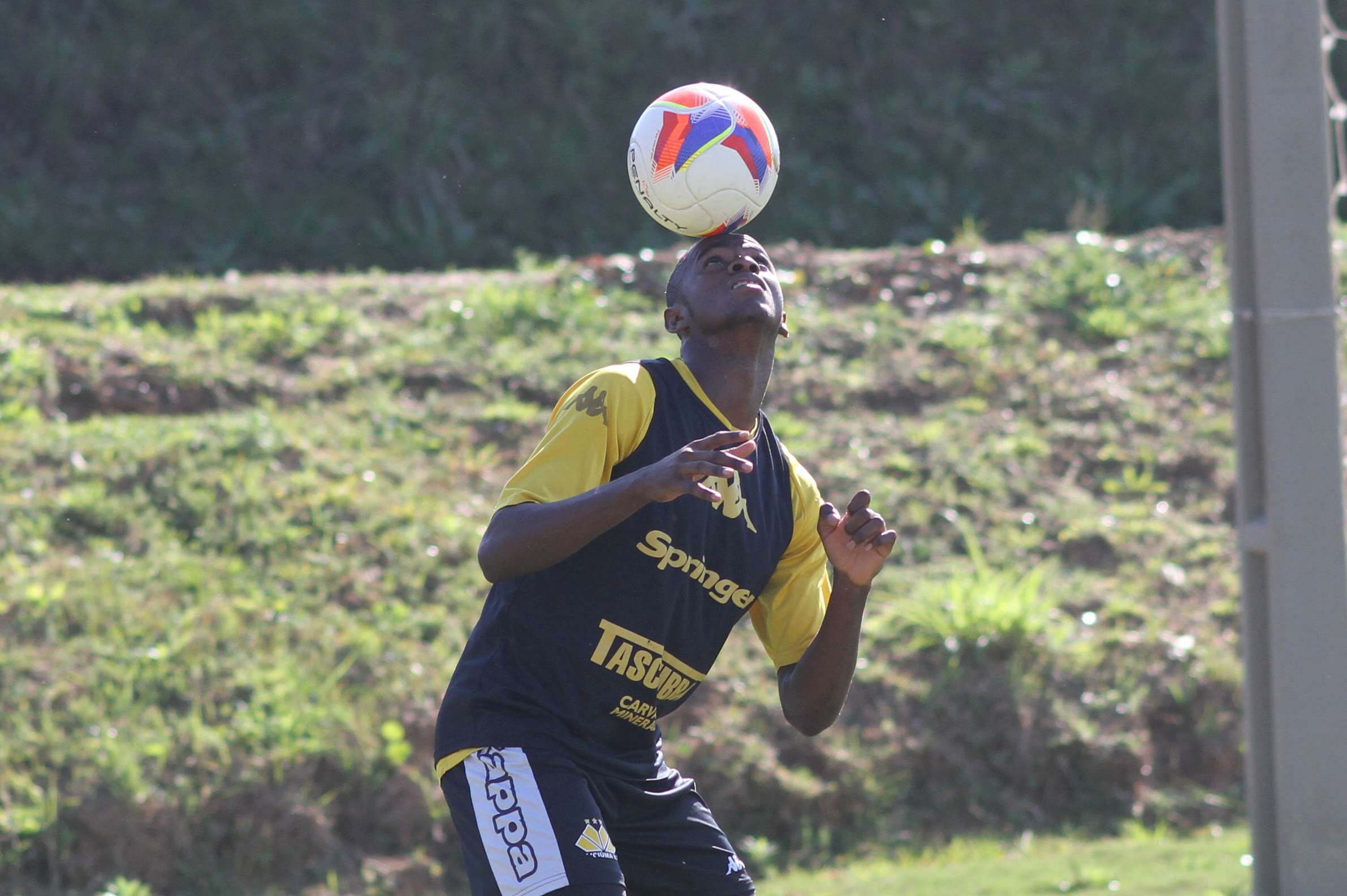 Legenda: Latera esquerdo Guilherme Santos durante treino do Criciúma na manhã deste domingo (09/08), no Centro de Treinamento, no bairro Cristo Redentor