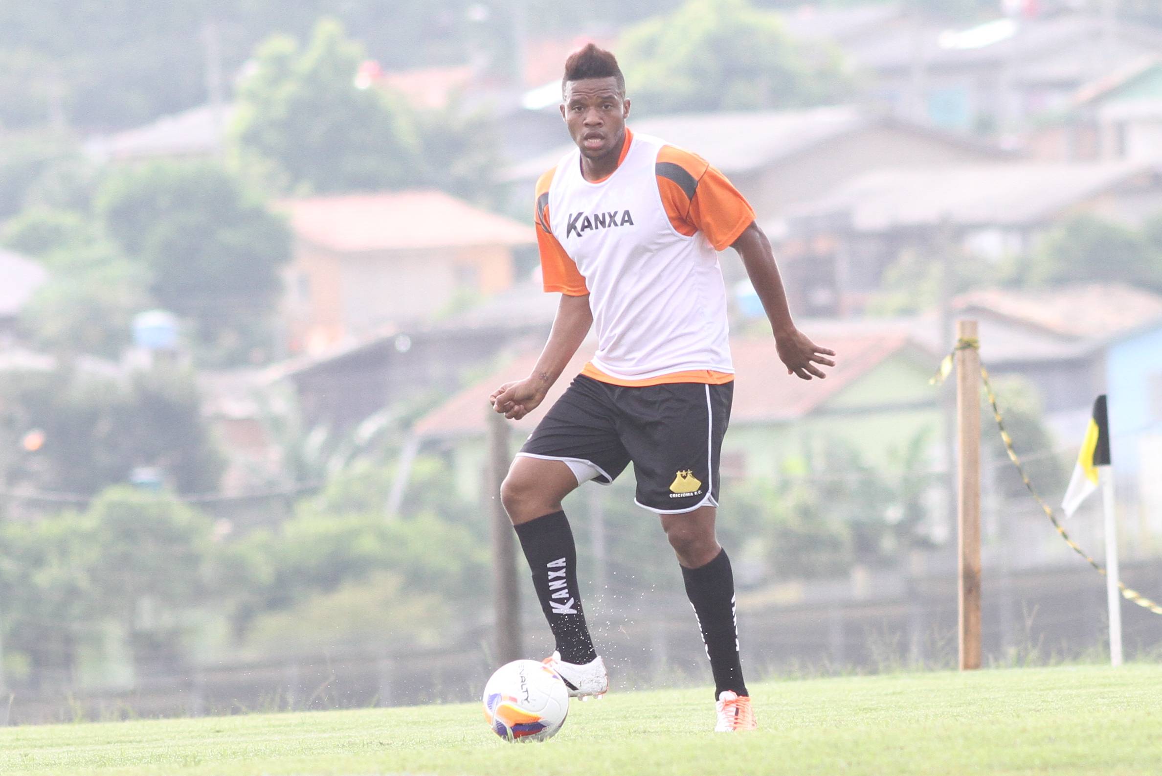 Legenda: Meia Cleber Santana durante treino do Criciúma na manhã desta quarta-feira (04/02) no Centro de Treinamento, no bairro Cristo Redentor