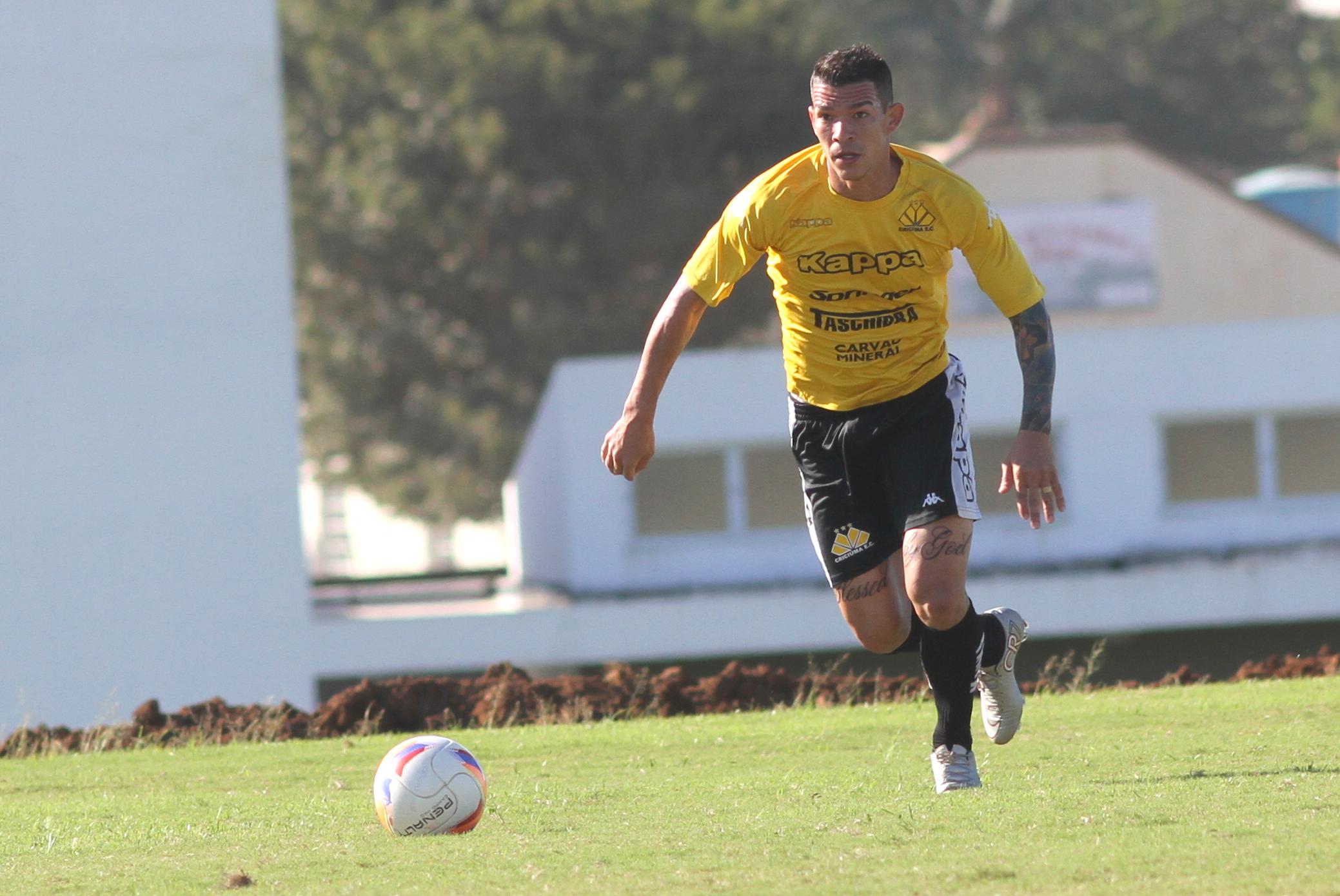 Legenda: Wanderson durante treino do Criciúma na manhã desta quarta-feira (10/06) no Centro de Treinamento, no bairro Cristo Redentor