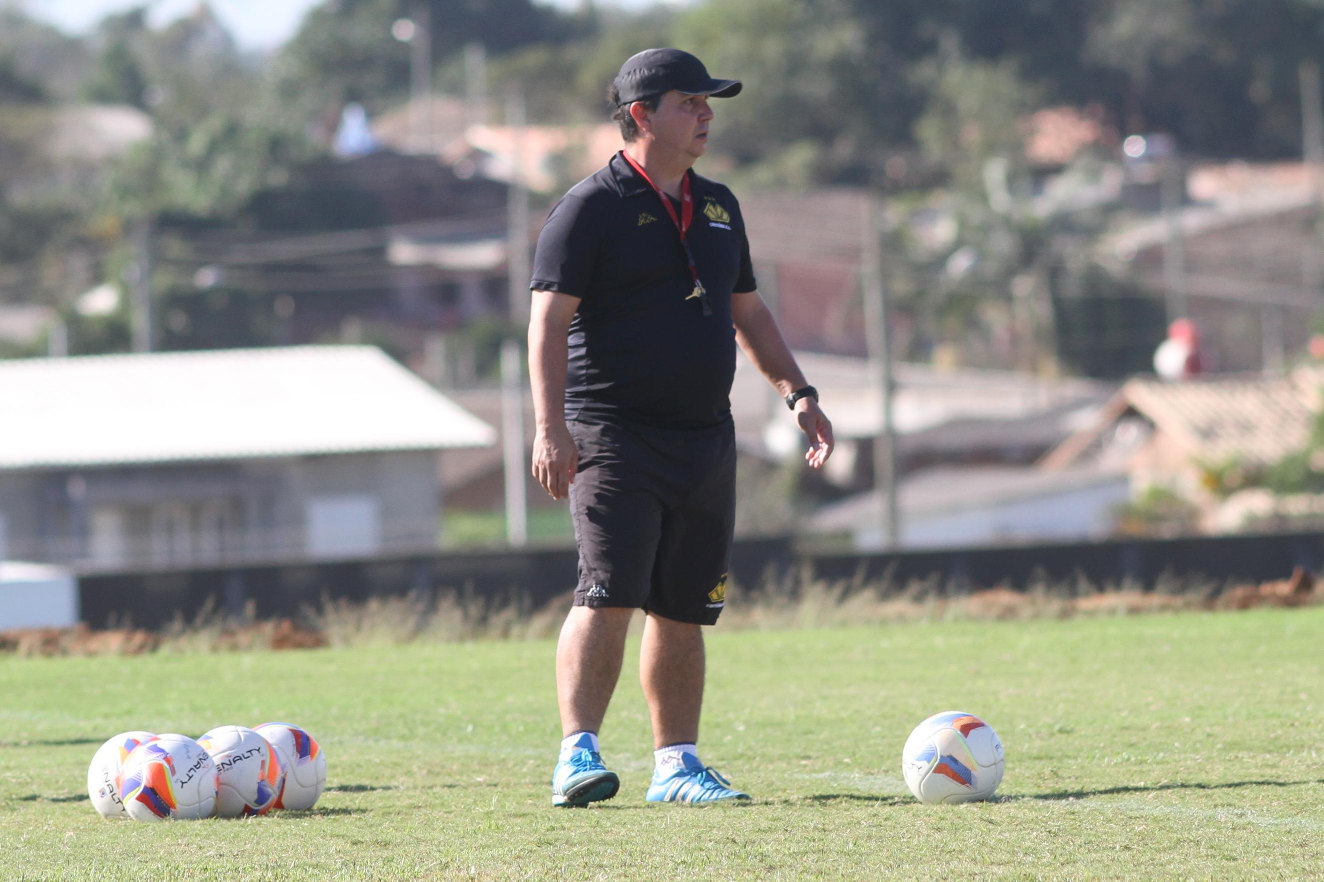 Legenda: Técnico interino Eduardo Duca durante treino do Criciúma na manhã desta quarta-feira (10/06) no Centro de Treinamento, no bairro Cristo Redentor