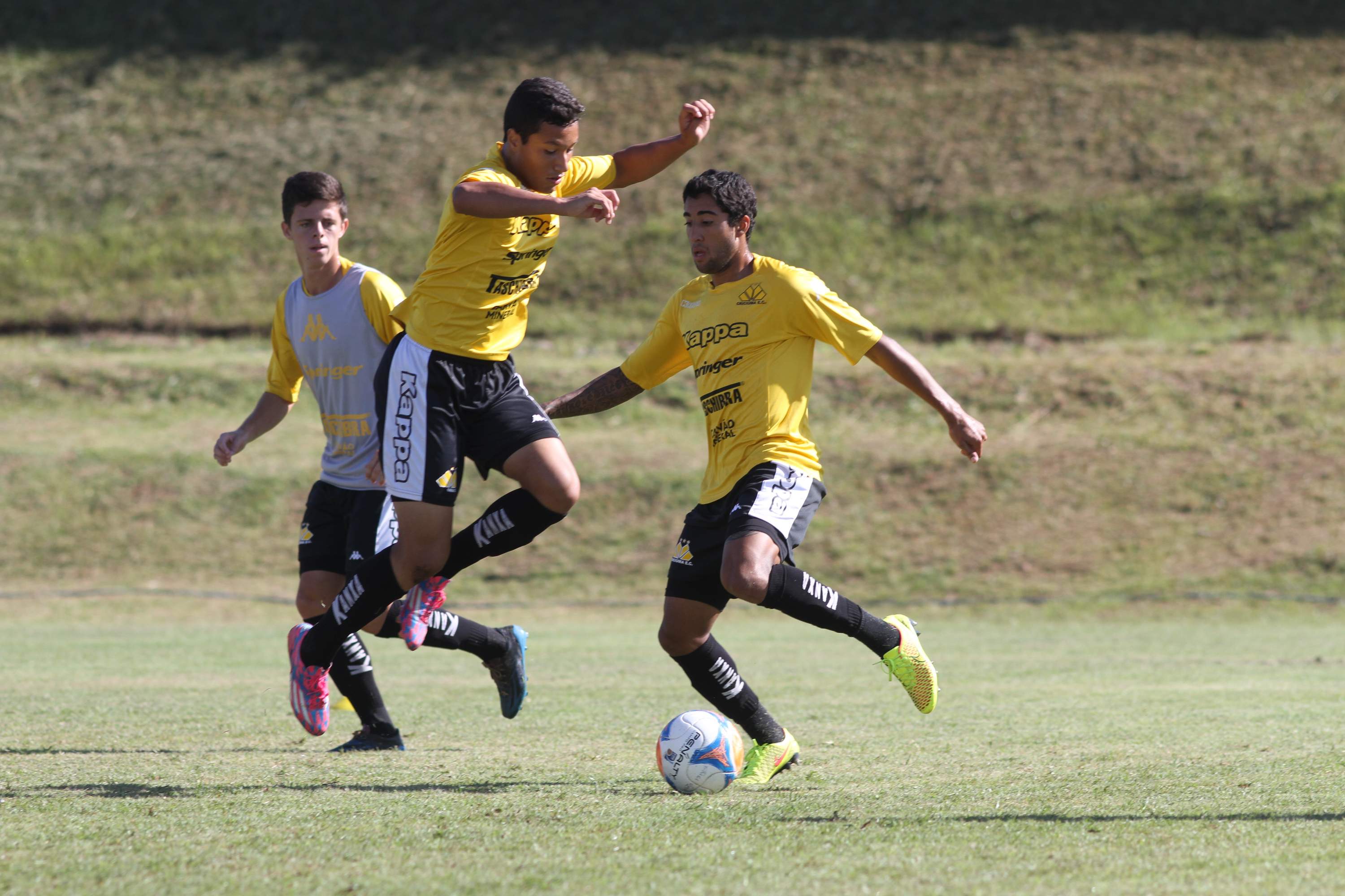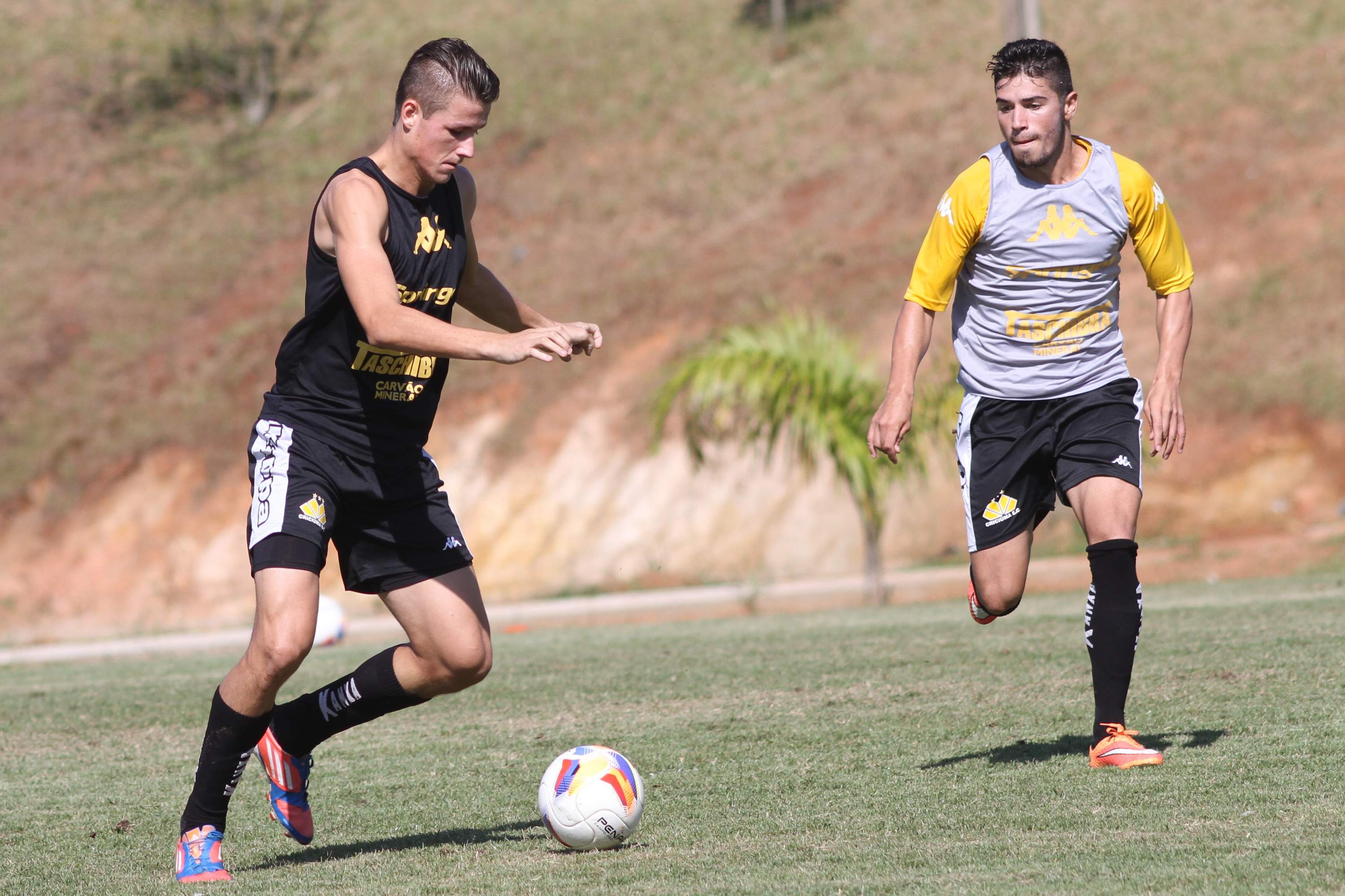 Legenda: Iago Maidana e Edy durante treino do Criciúma na manhã desta quinta-feira (02/04) no Centro de Treinamento no bairro Cristo Redentor