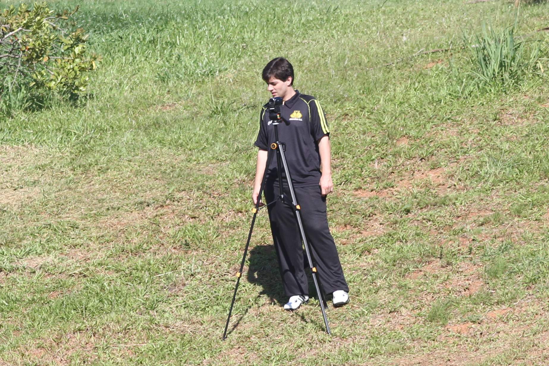 Legenda: Fisiologista Lucas Jorge durante treino do Criciúma na manhã desta quinta-feira (02/04) no Centro de Treinamento no bairro Cristo Redentor