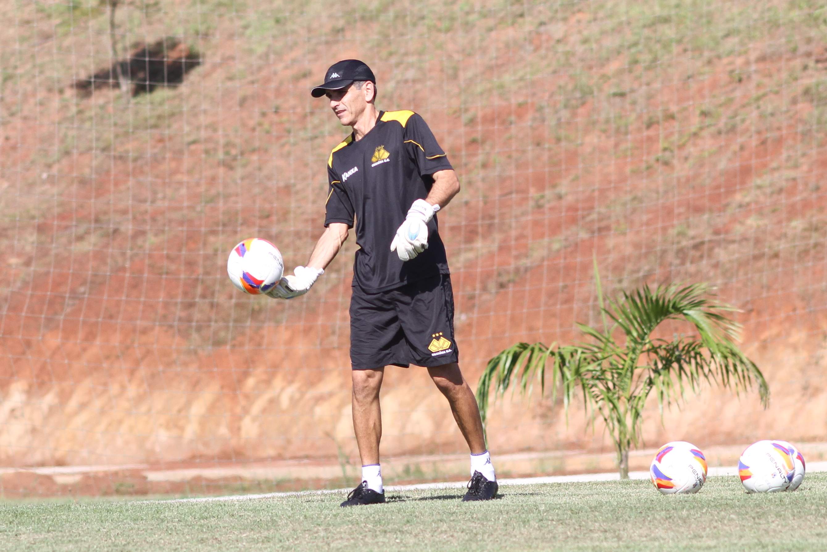 Legenda: Preparador de goleiros Mauricio Dacoregio durante treino do Criciúma na manhã desta quinta-feira (02/04) no Centro de Treinamento no bairro Cristo Redentor