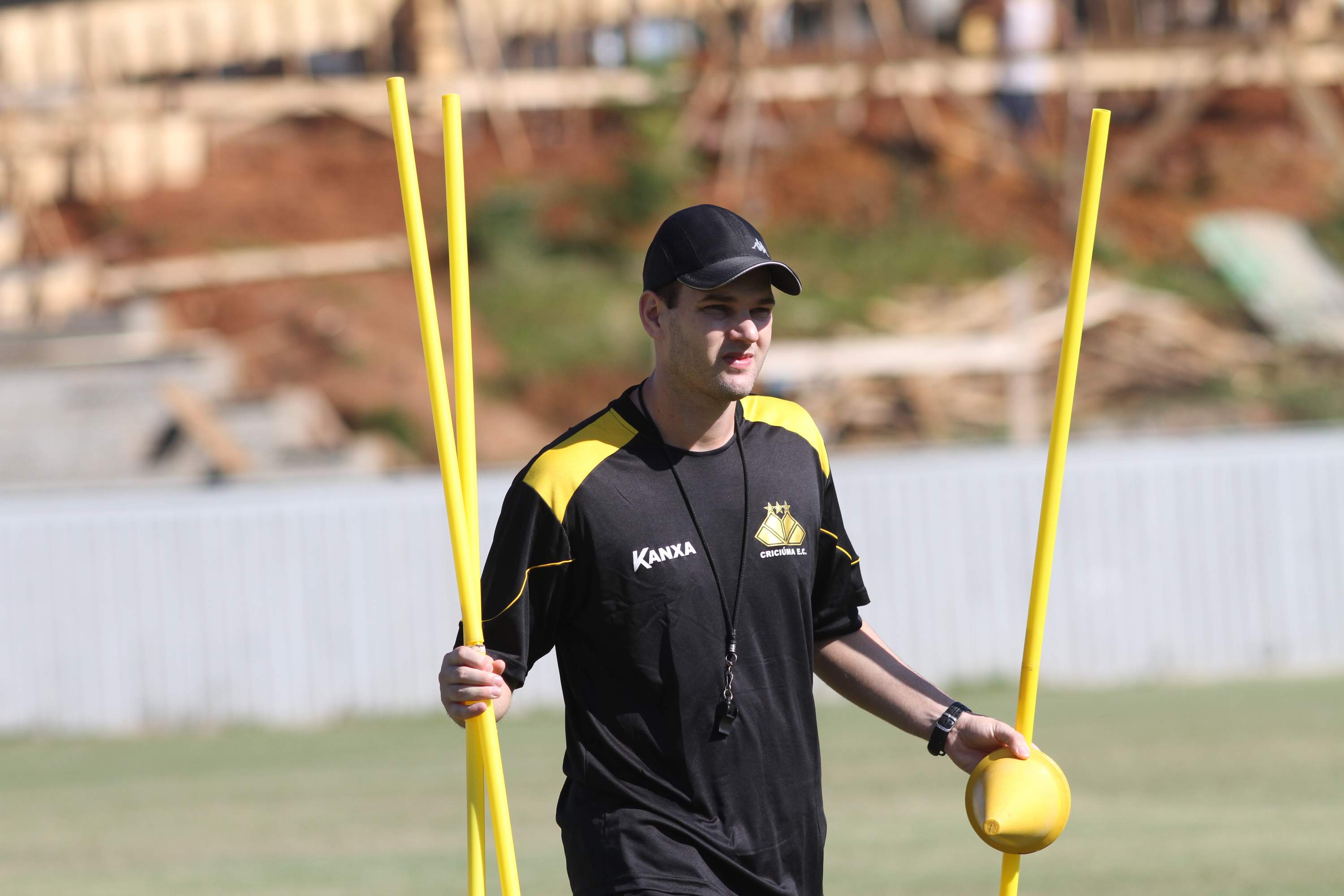 Legenda: Analista de desempenho Marcos Zambiasi durante treino do Criciúma na manhã desta quinta-feira (02/04) no Centro de Treinamento no bairro Cristo Redentor