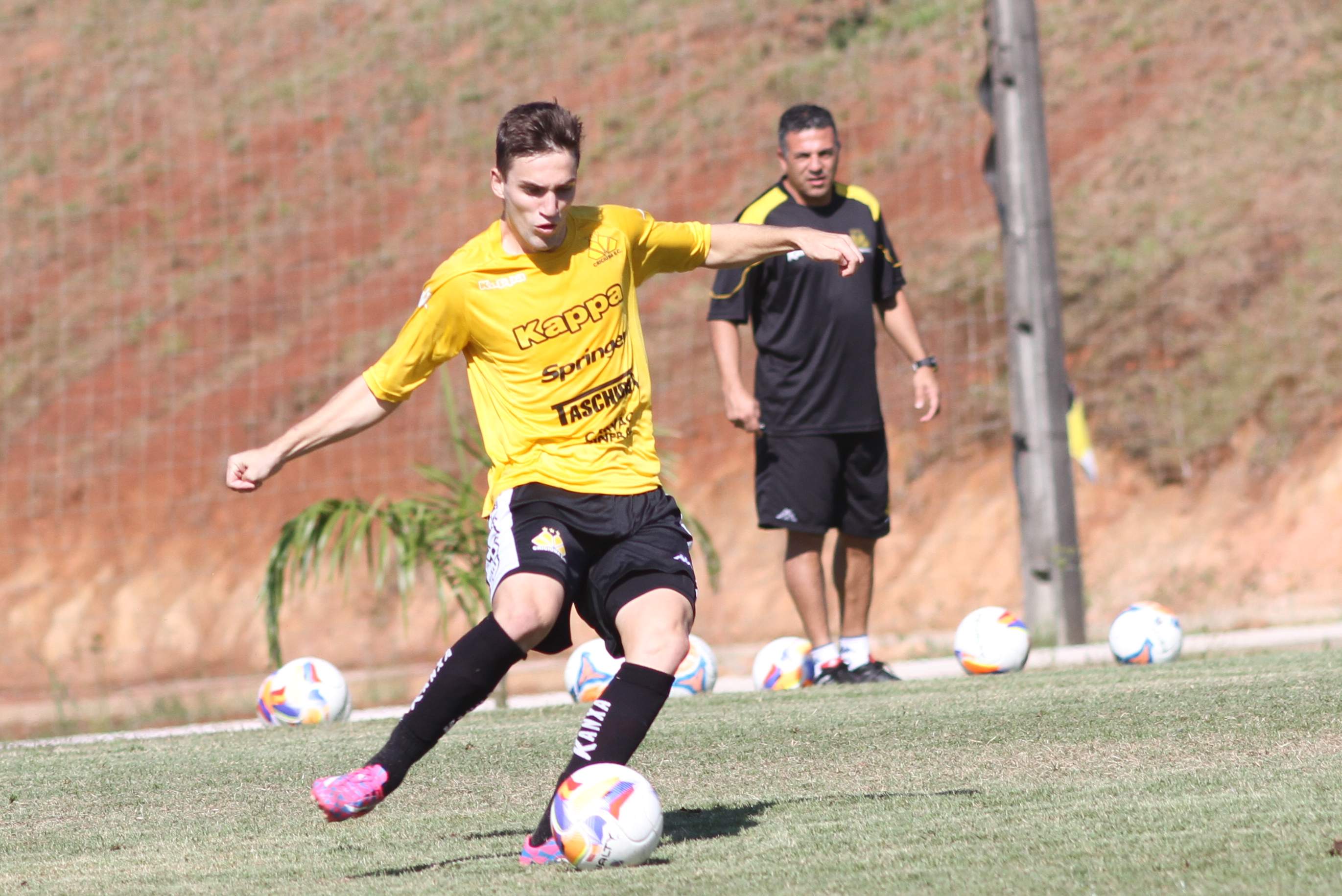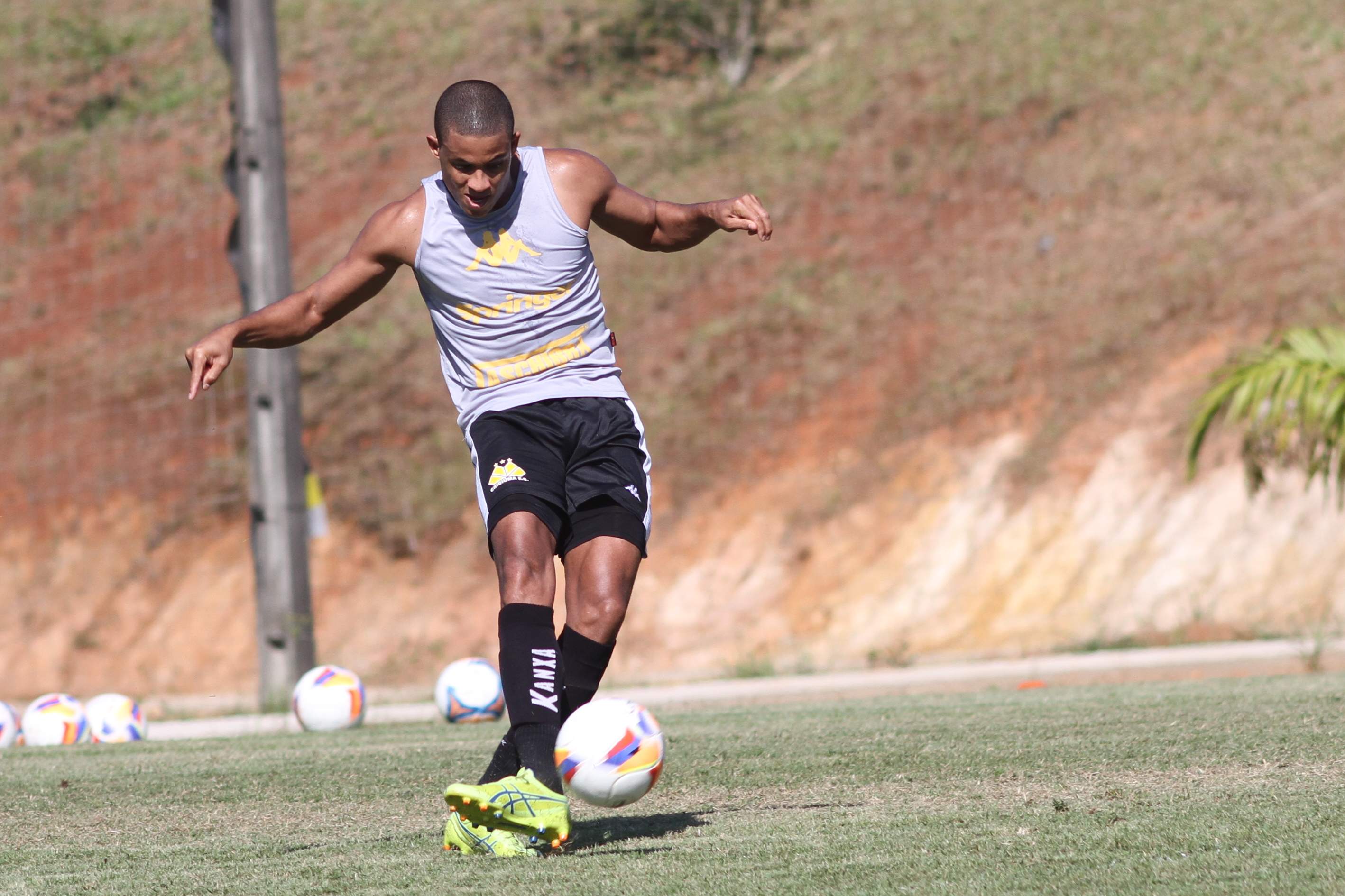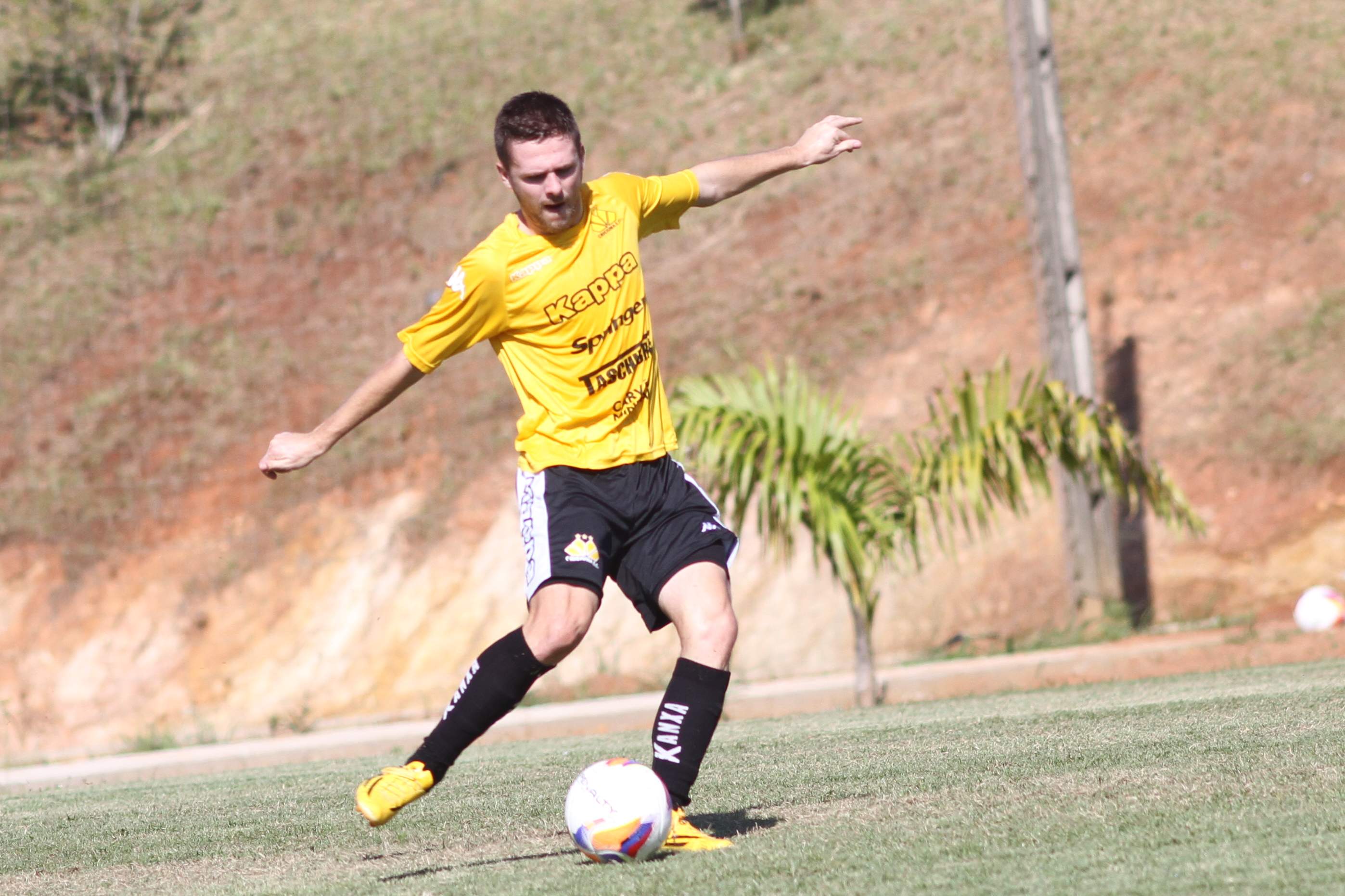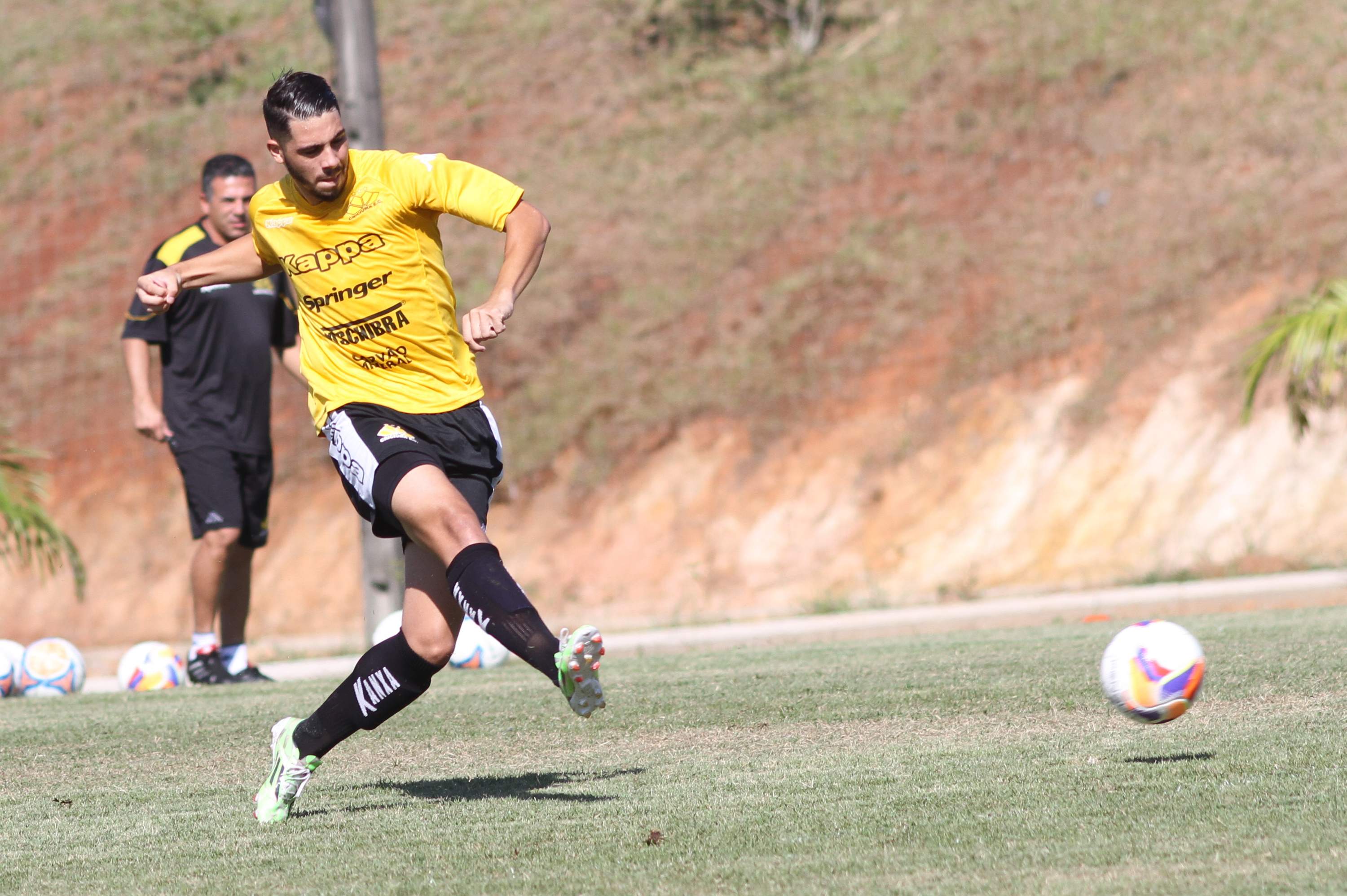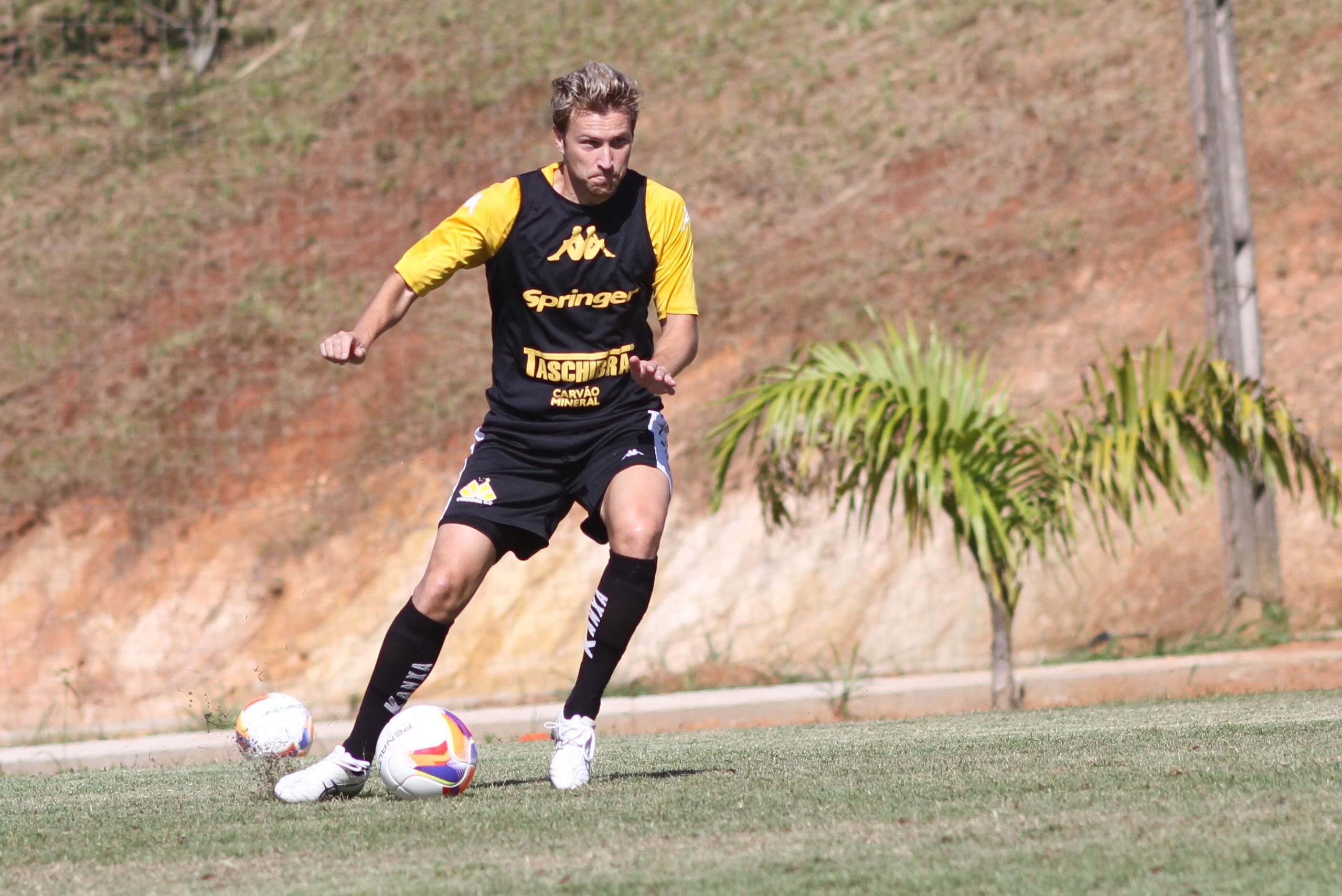 Legenda: Kalil durante treino do Criciúma na manhã desta quinta-feira (02/04) no Centro de Treinamento no bairro Cristo Redentor