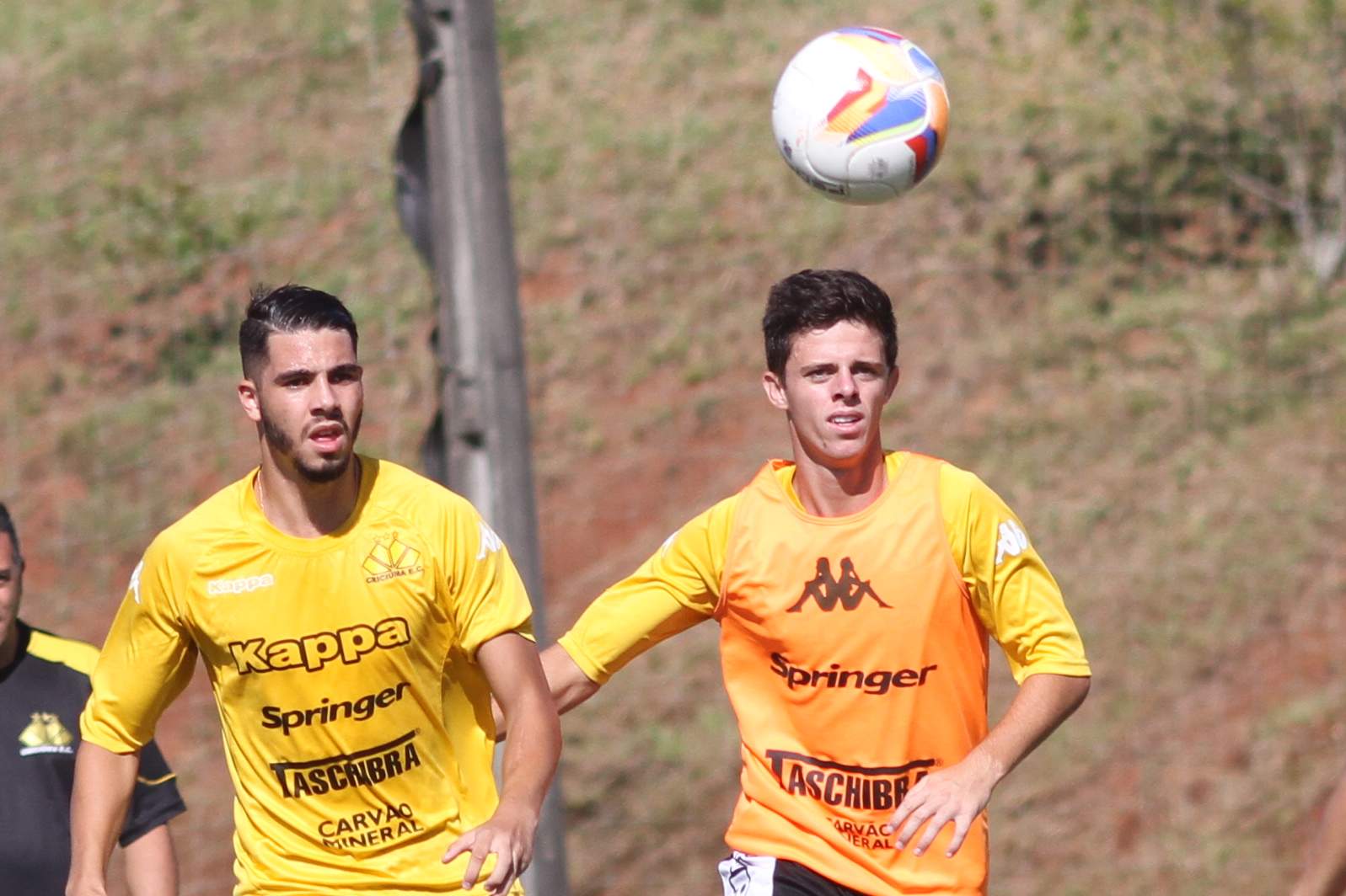 Legenda: Kalil e Eduardo durante treino do Criciúma na manhã desta quinta-feira (02/04) no Centro de Treinamento no bairro Cristo Redentor