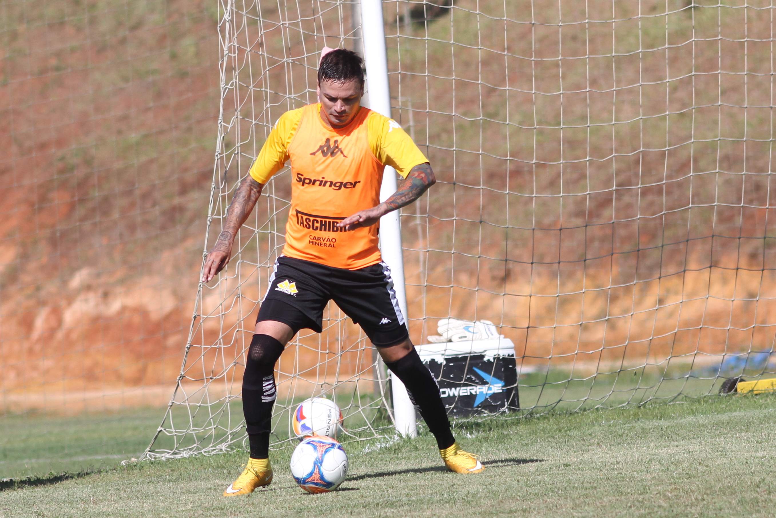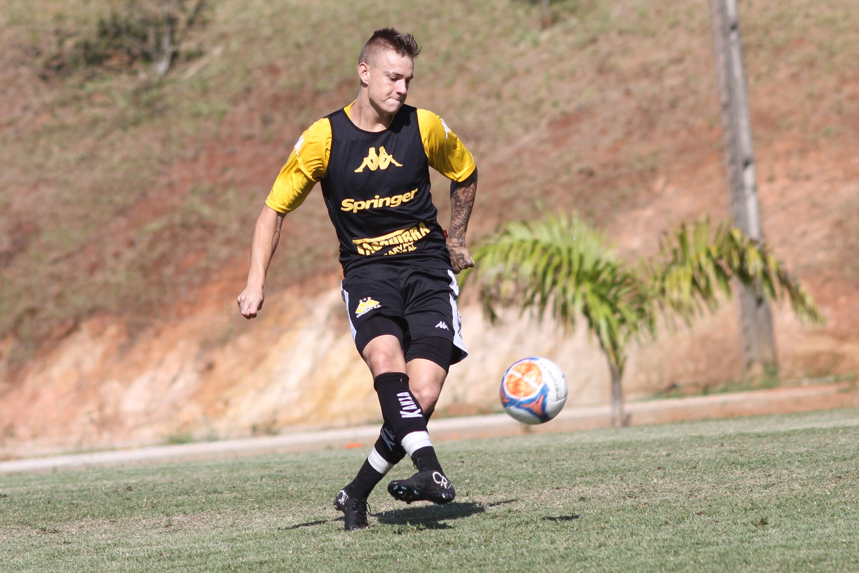 Legenda: Róger Guedes durante treino do Criciúma na manhã desta quinta-feira (02/04) no Centro de Treinamento no bairro Cristo Redentor