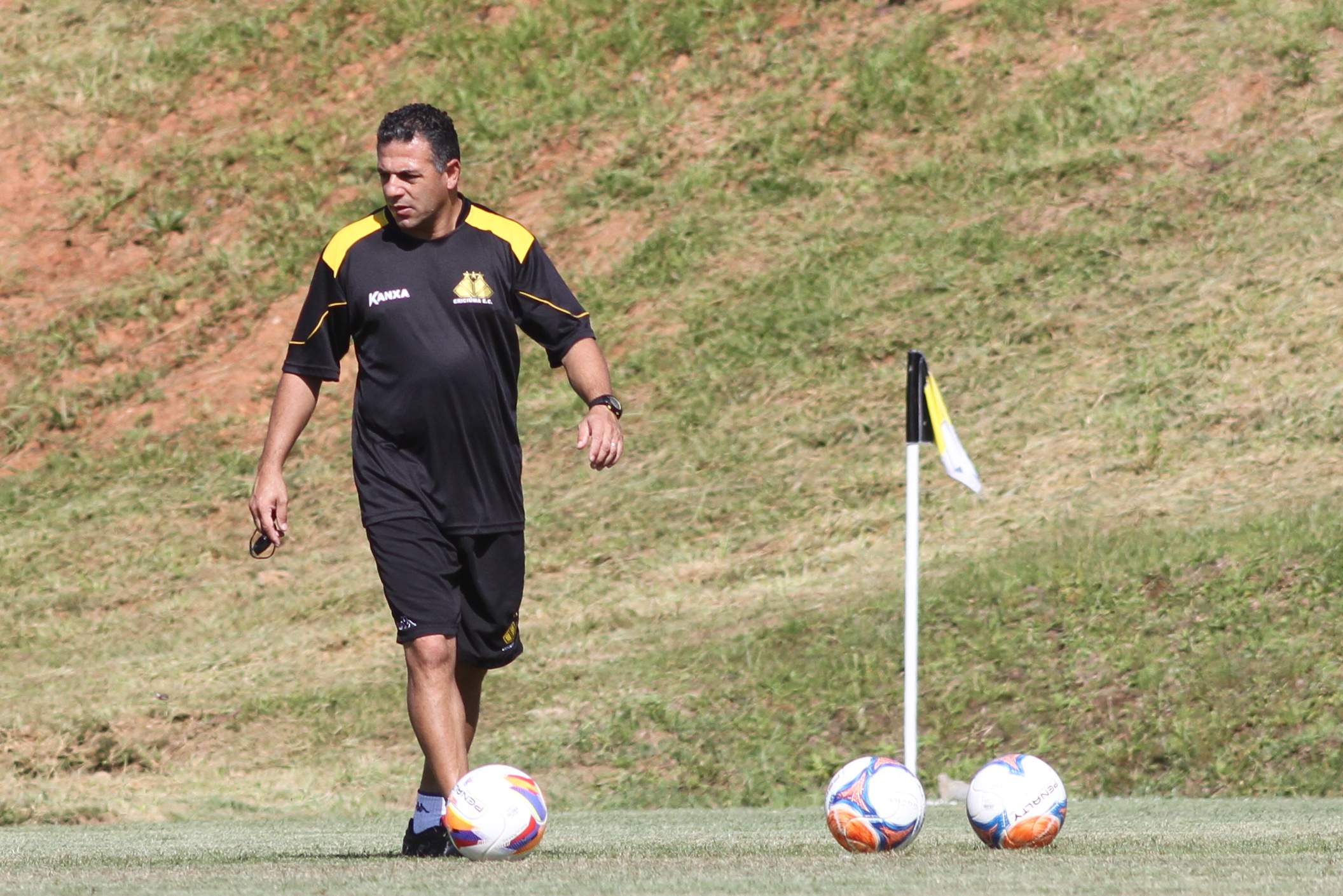 Legenda: Preparador físico André Milioli durante treino do Criciúma na manhã desta quinta-feira (02/04) no Centro de Treinamento no bairro Cristo Redentor