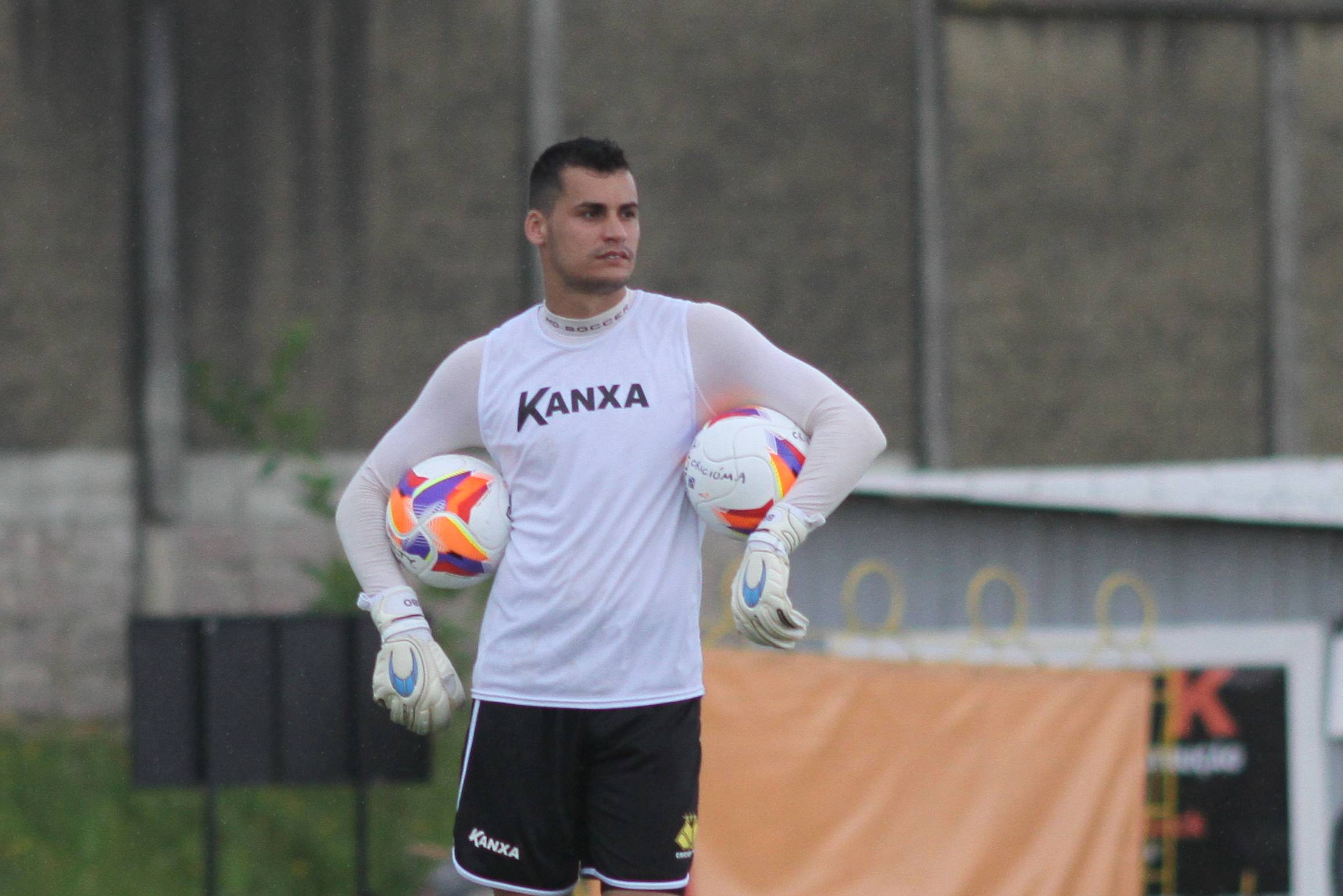 Legenda: Goleiro Bruno durante treino do Criciúma na tarde desta terça-feira (13/01) no Centro de Treinamento, no bairro Cristo Redentor