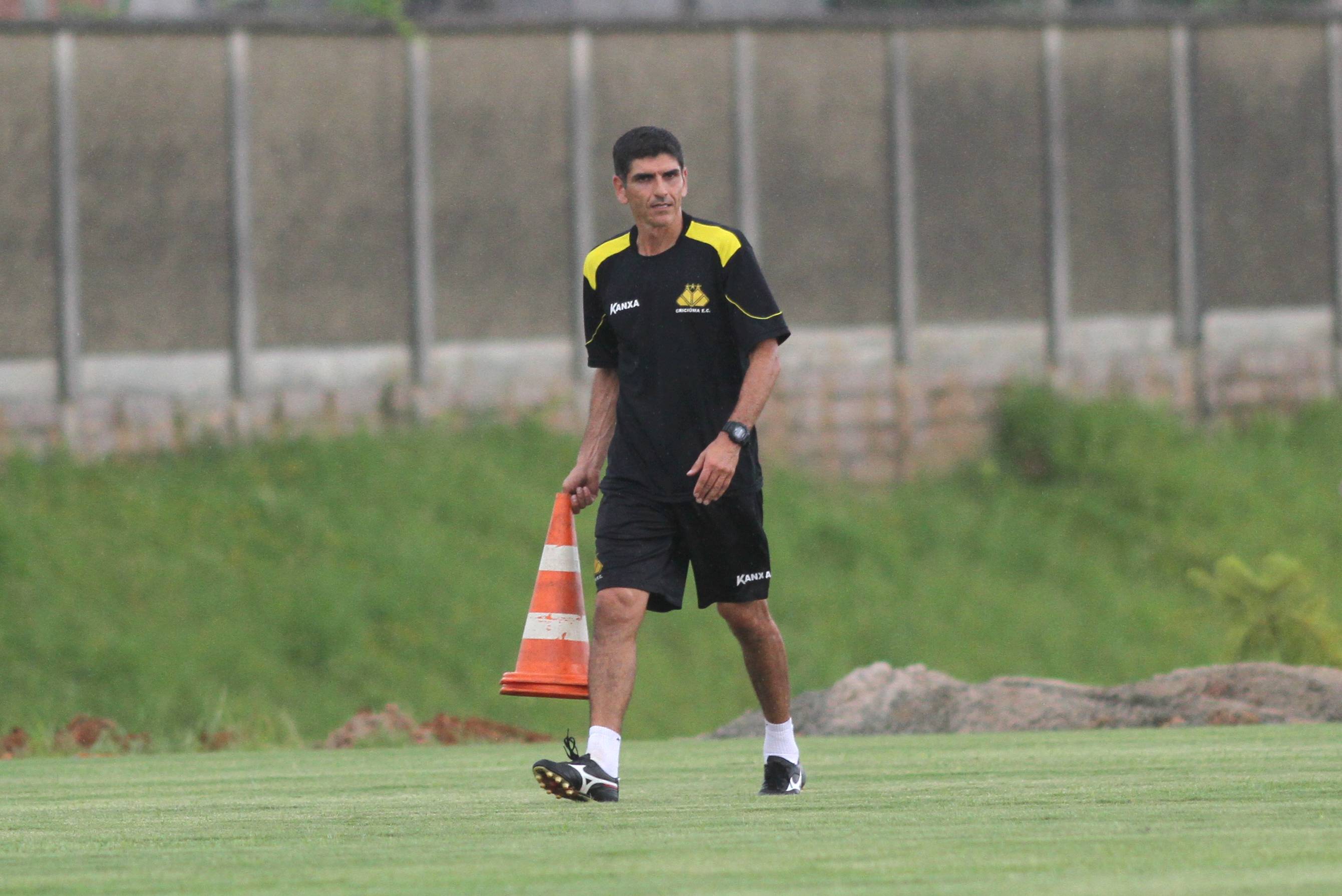 Legenda: Técnico Luizinho Vieira durante treino do Criciúma na tarde desta terça-feira (13/01) no Centro de Treinamento, no bairro Cristo Redentor