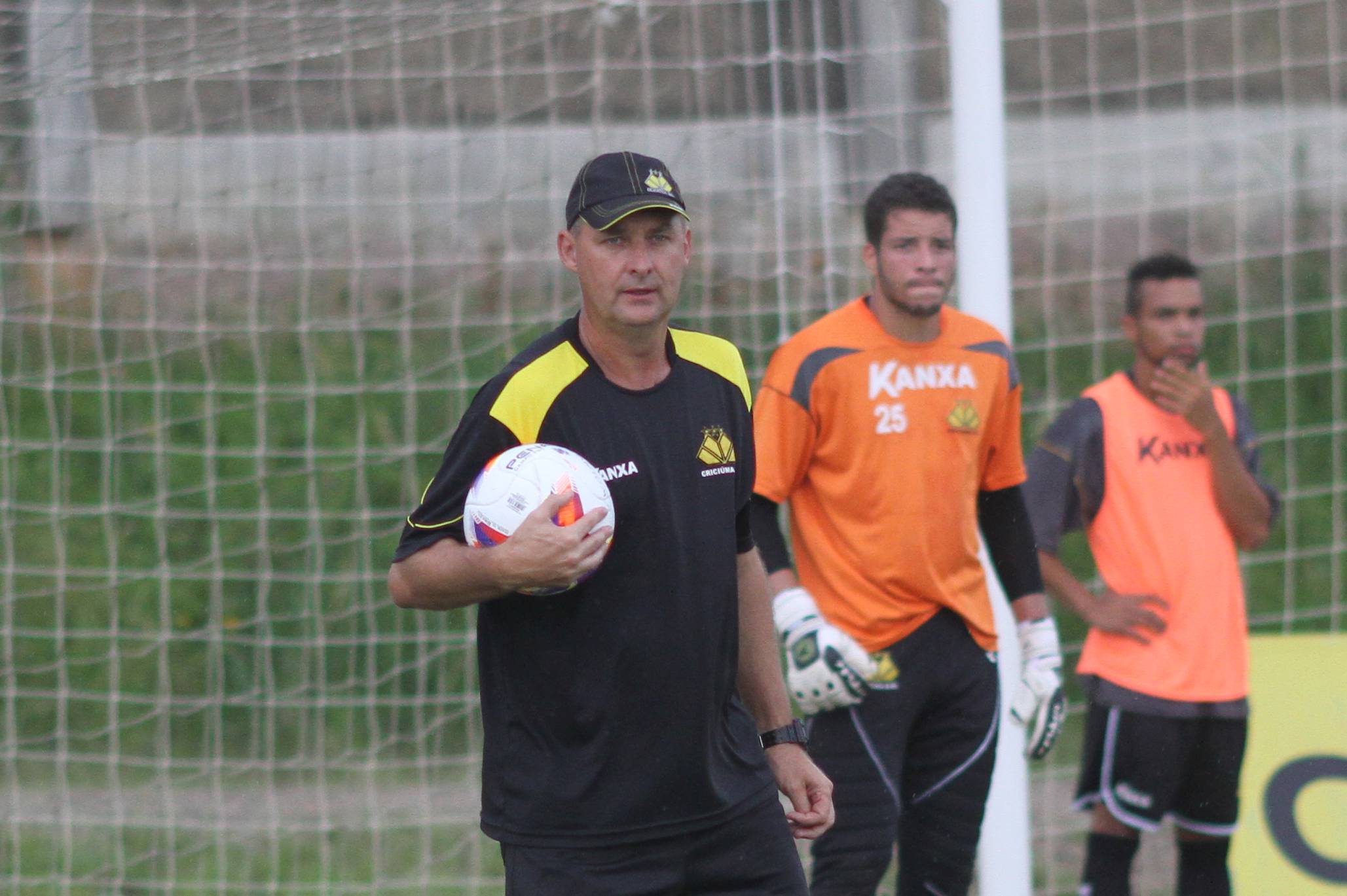 Legenda: Preparador de goleiros Mauricio Dacoregio durante treino do Criciúma na tarde desta terça-feira (13/01) no Centro de Treinamento, no bairro Cristo Redentor