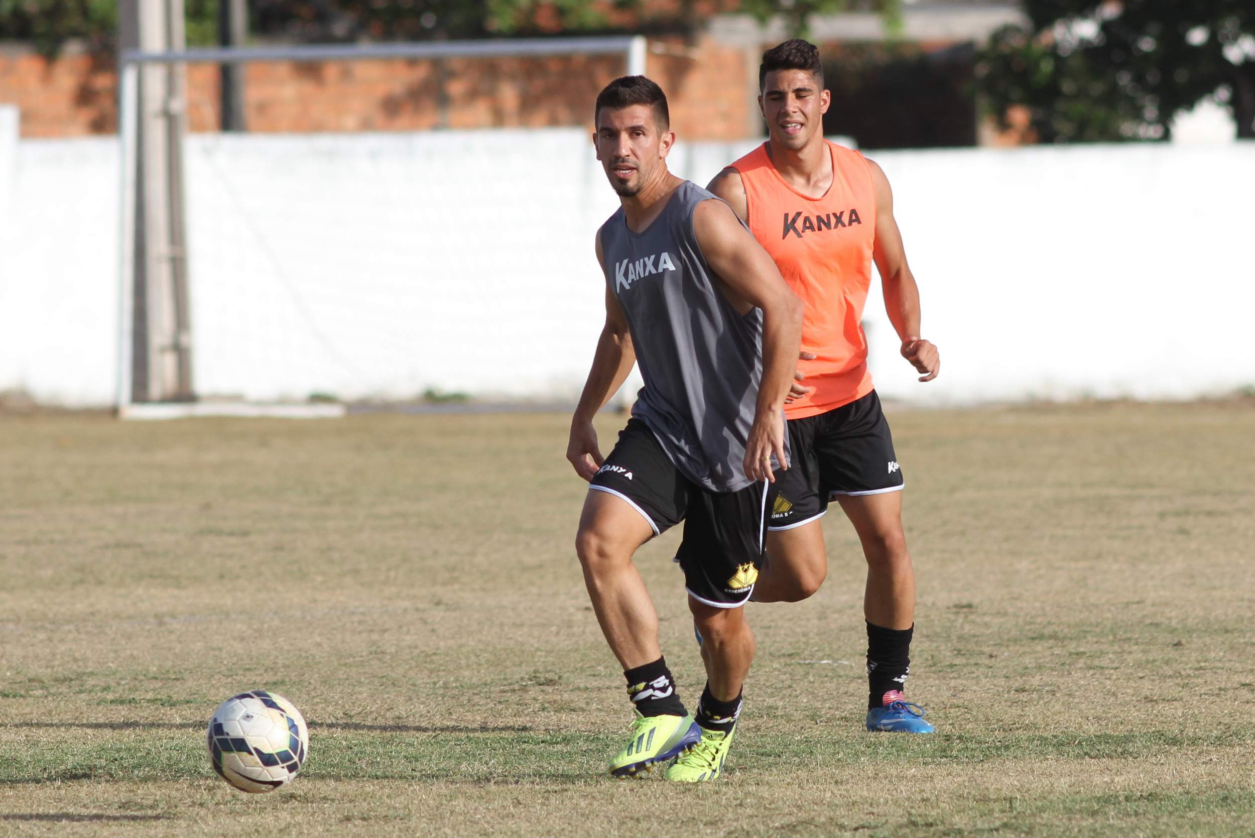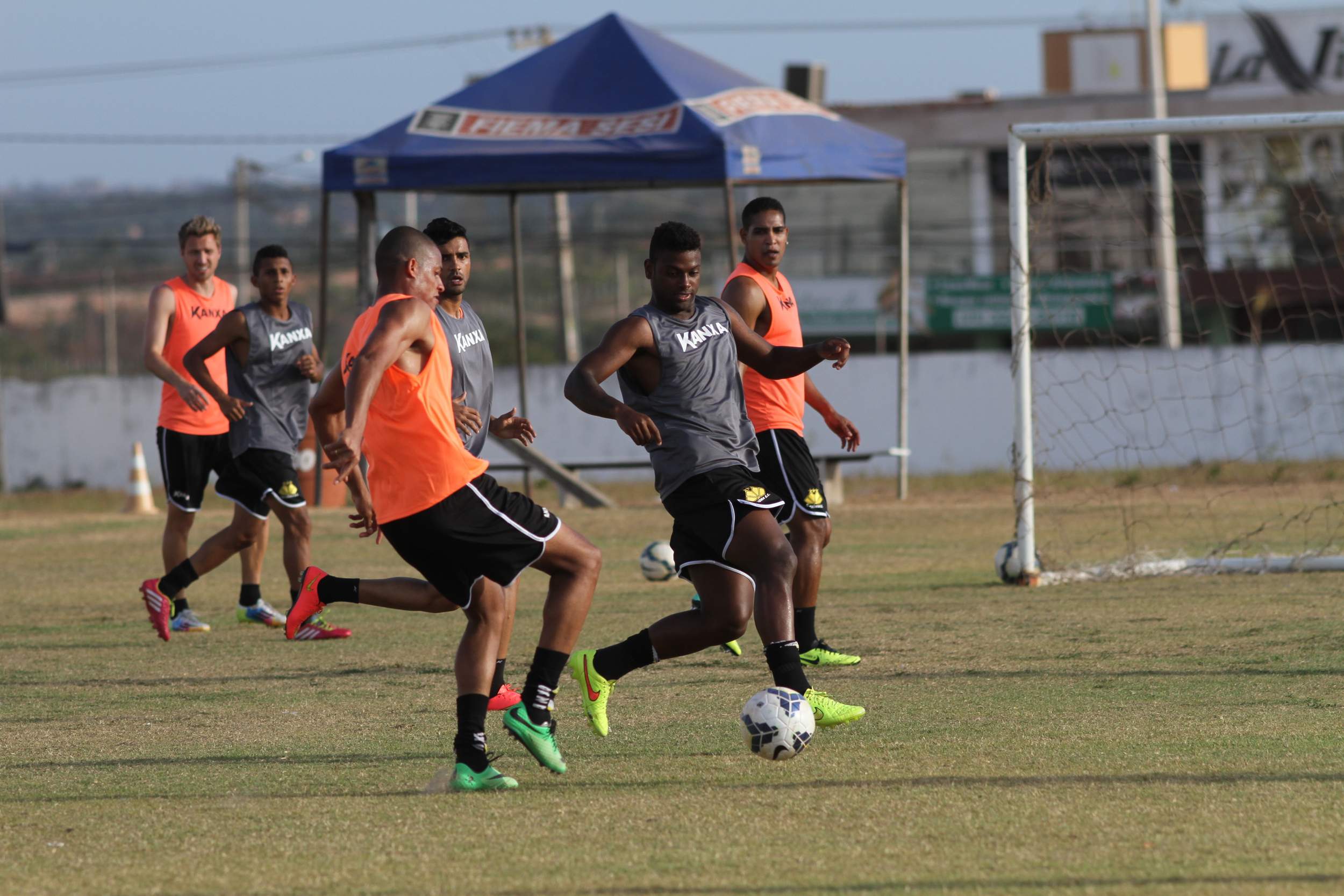 Legenda: Atletas do Criciúma durante treino no campo do Sesi em São Luís do Maranhão, na tarde deste sábado (22/11)