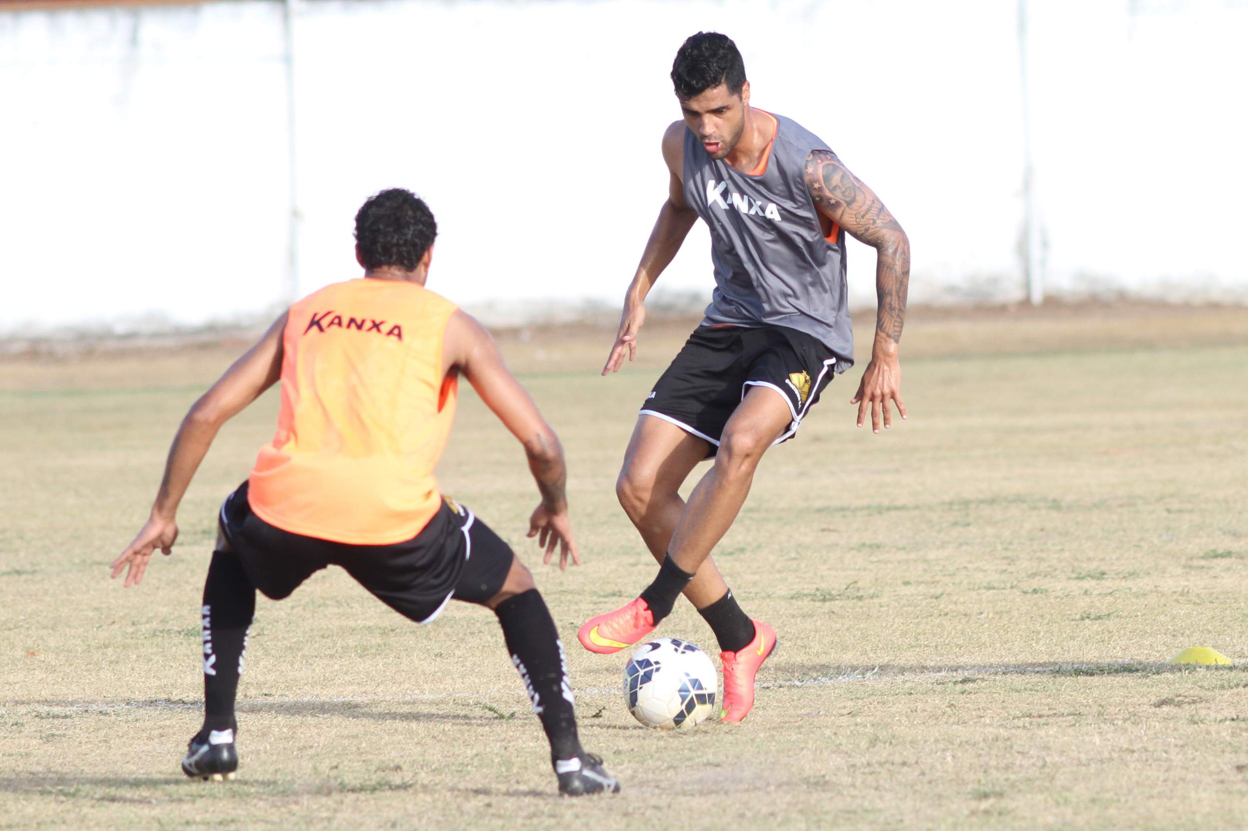 Legenda: Atacante Roger durante treino do Criciúma no campo do Sesi em São Luís do Maranhão, na tarde deste sábado (22/11)