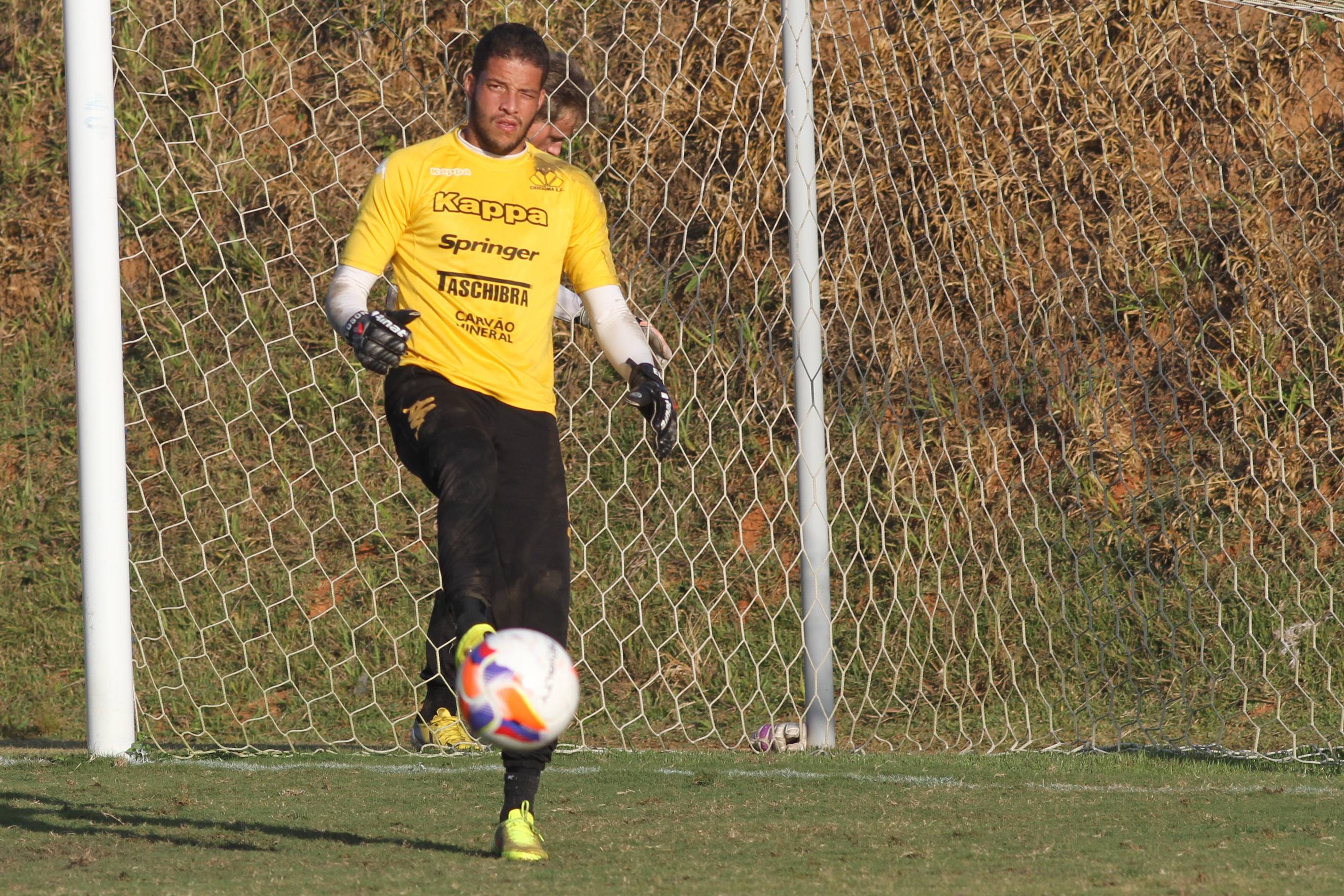 Legenda: Goleiro Edson durante treino do Criciúma na tarde desta quarta-feira (06/05) no Centro de Treinamento do Atlético Sorocaba (SP)