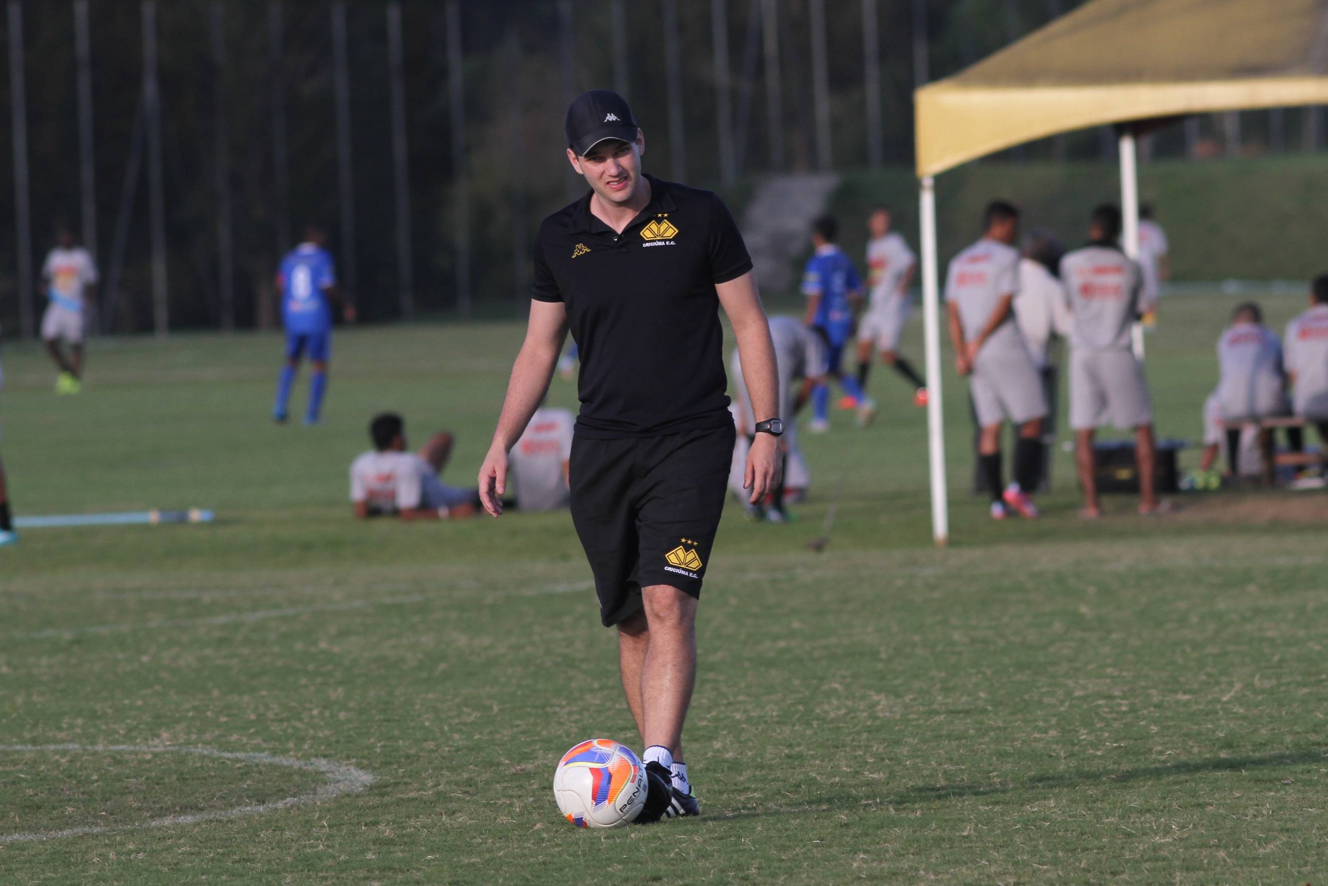 Legenda: Técnico Moacir Júnior durante treino do Criciúma na tarde desta quarta-feira (06/05) no Centro de Treinamento do Atlético Sorocaba (SP)