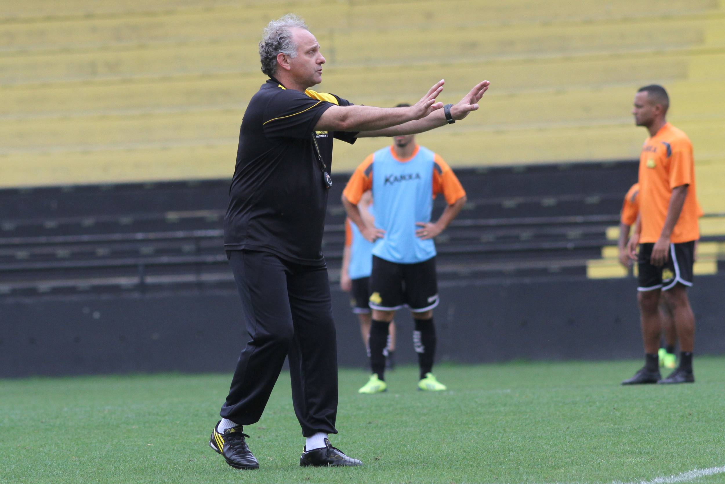 Legenda: Técnico Toninho Cecílio durante treino do Criciúma no estádio Heriberto Hülse na tarde desta quinta-feira (13/11)