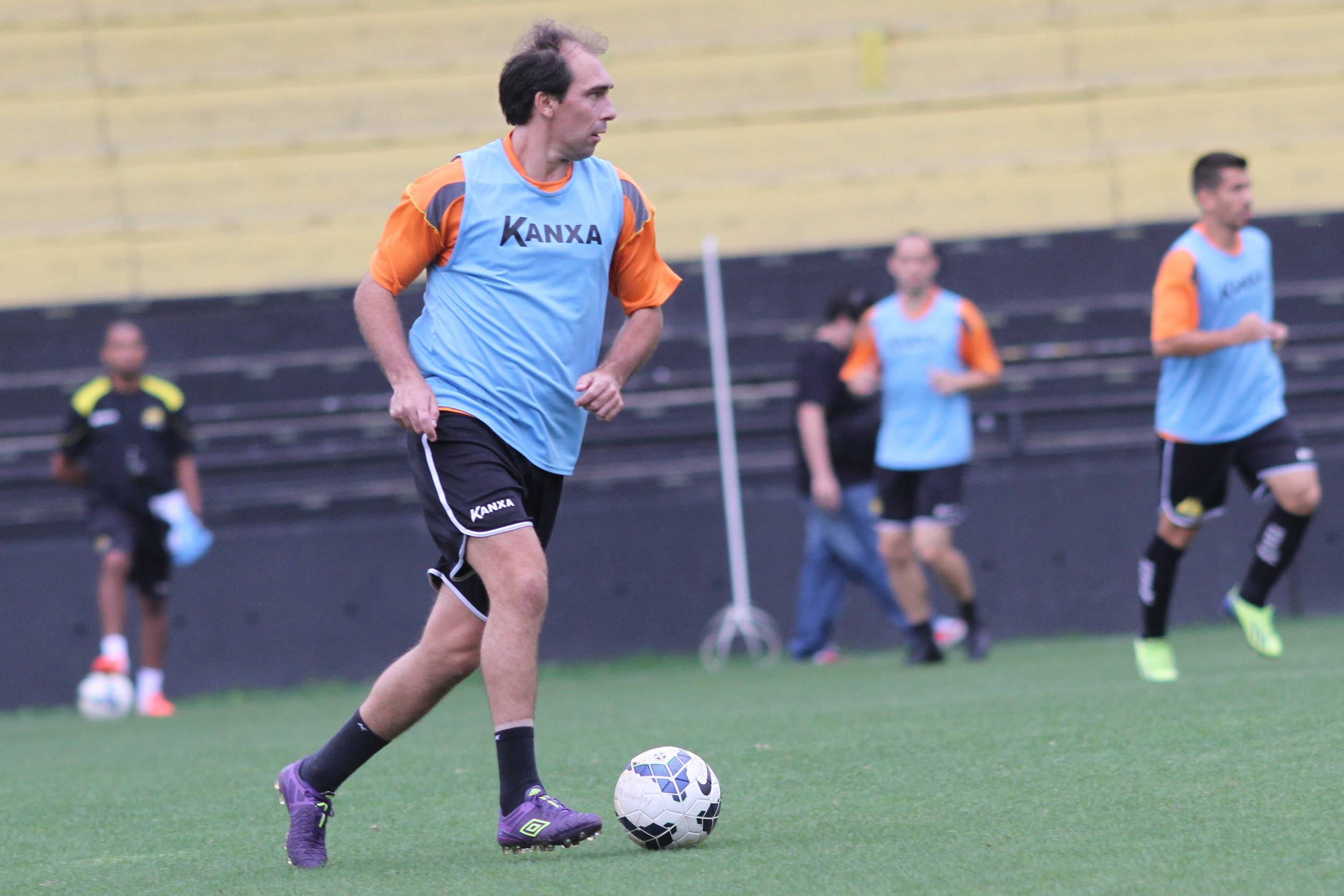 Legenda: Meia Paulo Baier durante treino do Criciúma no estádio Heriberto Hülse na tarde desta quinta-feira (13/11)
