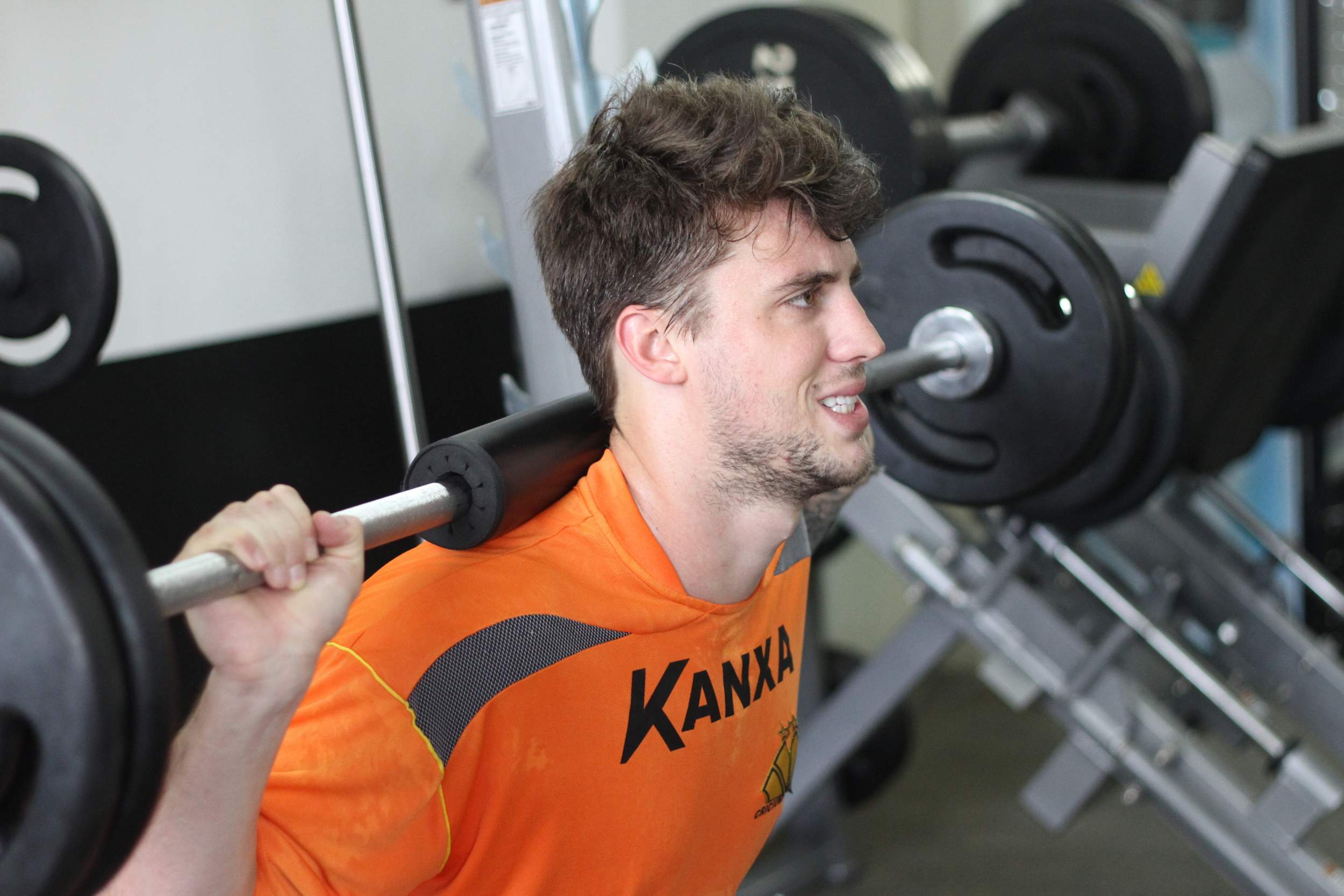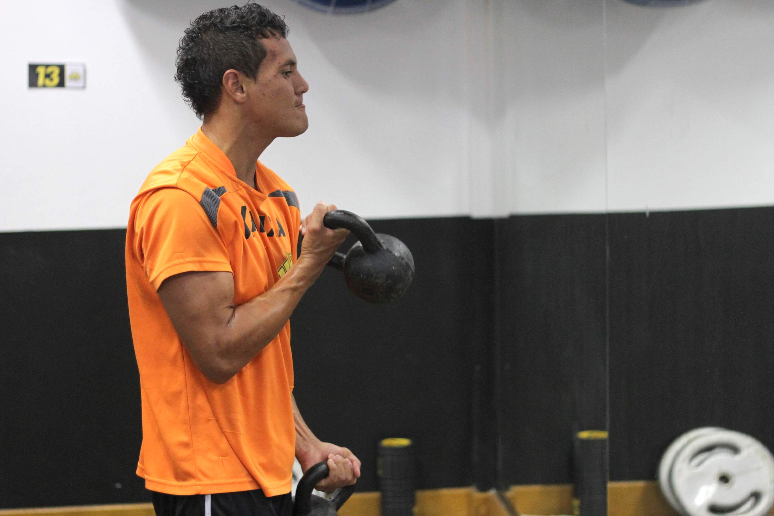 Legenda: Zagueiro Heitor durante treino do Criciúma na tarde desta segunda-feira (01/12) na academia do estádio Heriberto Hülse