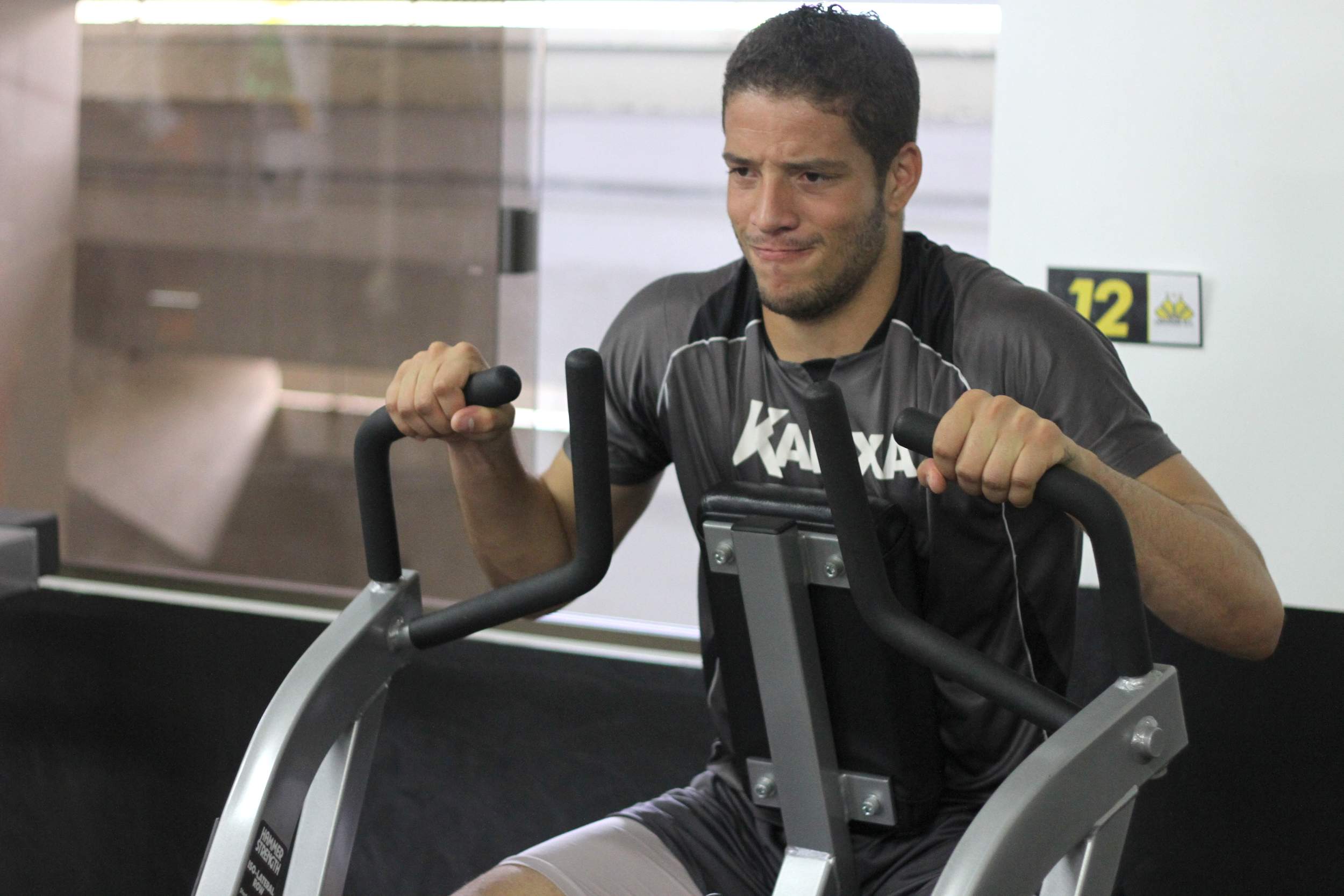 Legenda: Meia Gabriel Ceará durante treino do Criciúma na tarde desta segunda-feira (01/12) na academia do estádio Heriberto Hülse