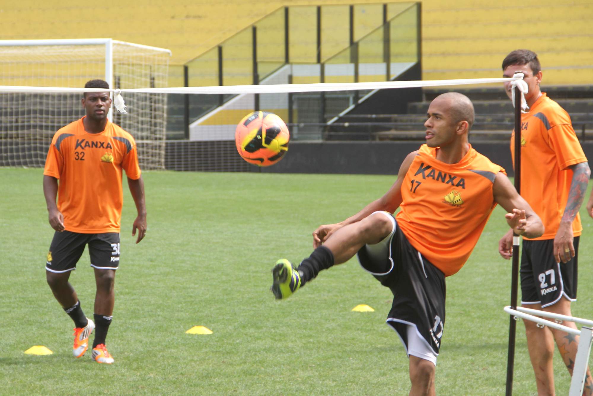 Legenda: Volante Ruan durante trabalho de recuperação no estádio Heriberto Hülse na tarde desta terça-feira (26/11)