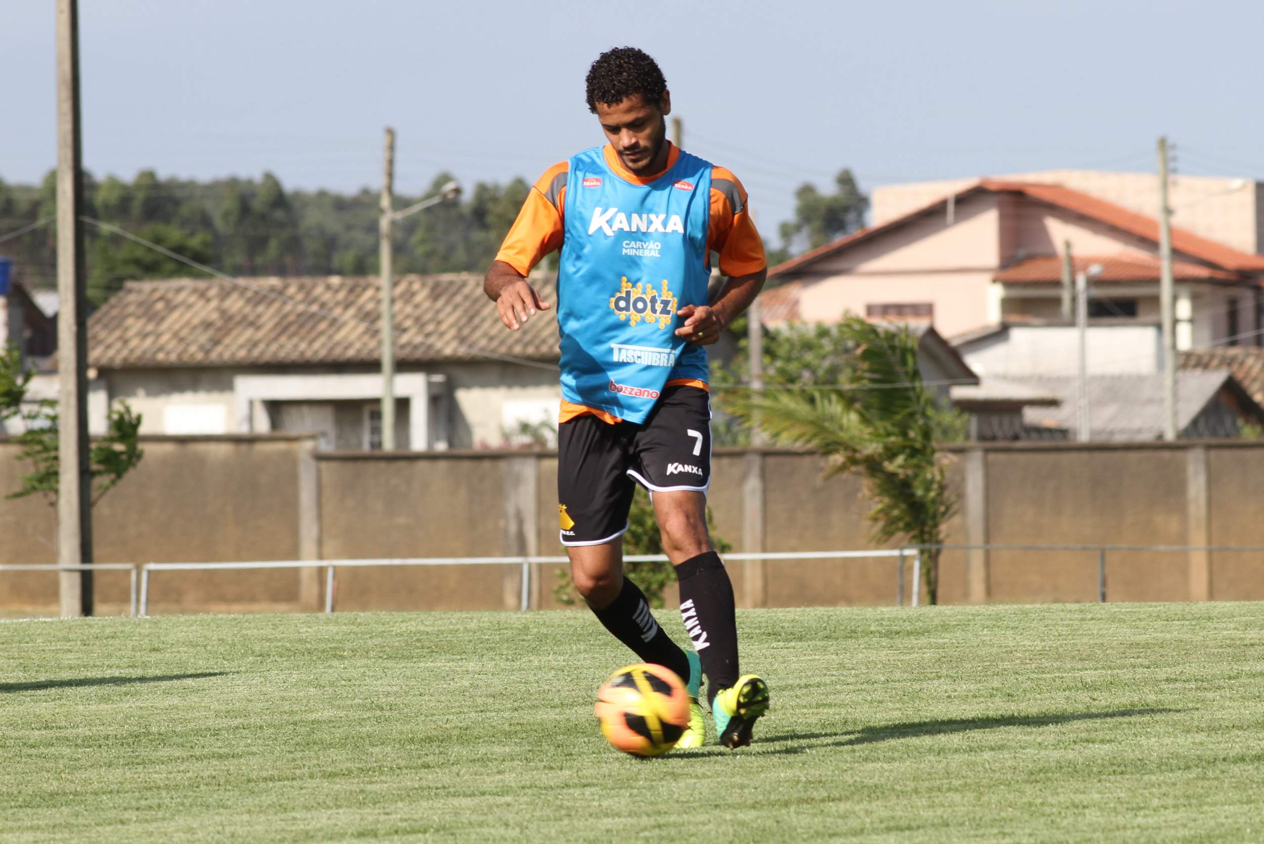 Legenda: Volante Elton durante treino do Criciúma na tarde desta quarta-feira (30/10) no Centro de Treinamento, no bairro Cristo Redentor